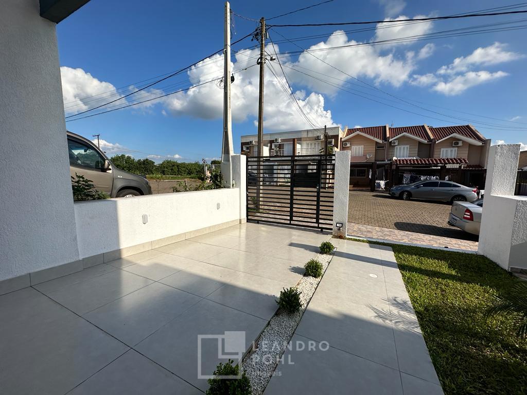 Excelente casa geminada, com 3 dormitórios sendo 1 suíte, pátio nos fundos, 2 vagas de garagem descobertas, iluminação embutida, rebaixe em gesso, portas internas em madeira, churrasqueira, lareira, NOVA e PRONTA PARA MORAR...
