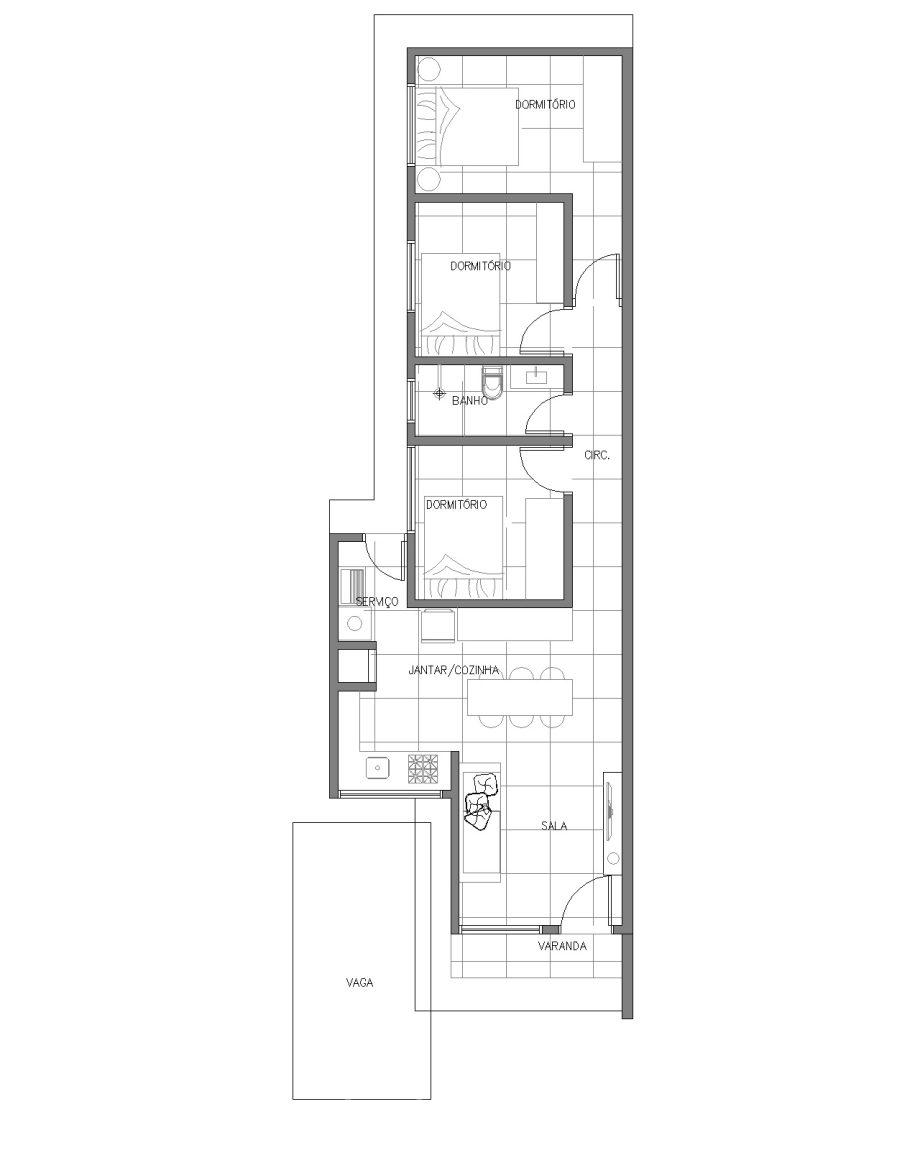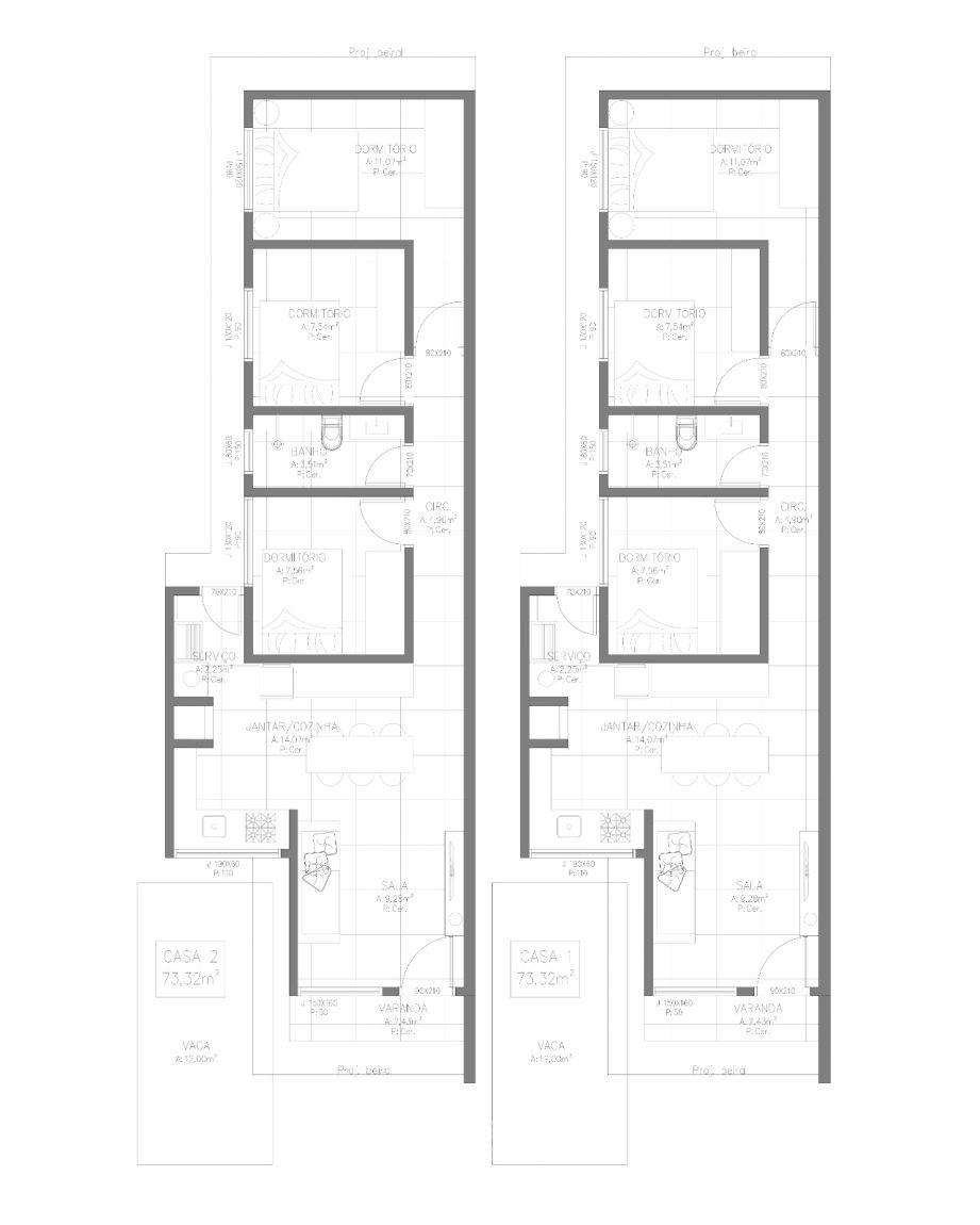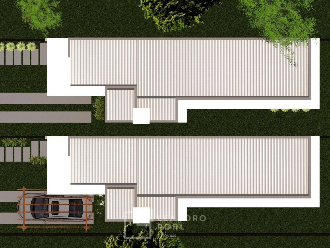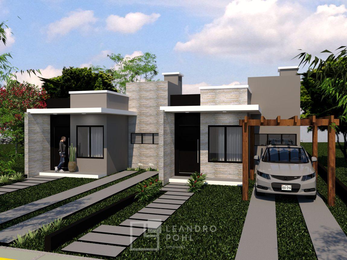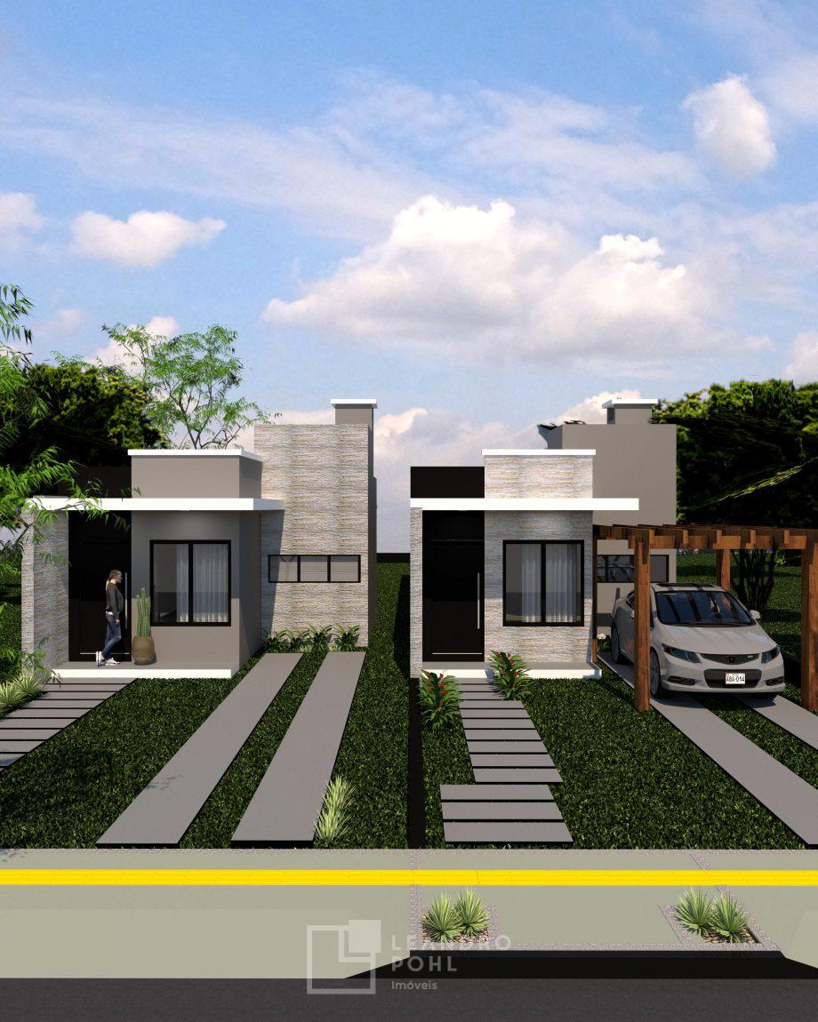 Casa 3 dormitórios, 73,32m2, banheiro social, churrasqueira (dentro), sala de estar, jantar e cozinha integrados, área de serviço (dentro), 01 vaga de garagem (possibilidade de 02 veículos um atrás do outro), aproximadamente 80 cm distância entre as unidades, revestimento externo em cerâmica, revestimento em porcelanato e azulejos em tons neutros, esquadrias externas em