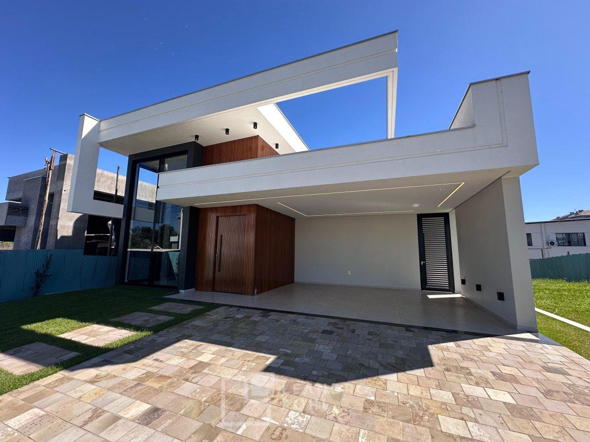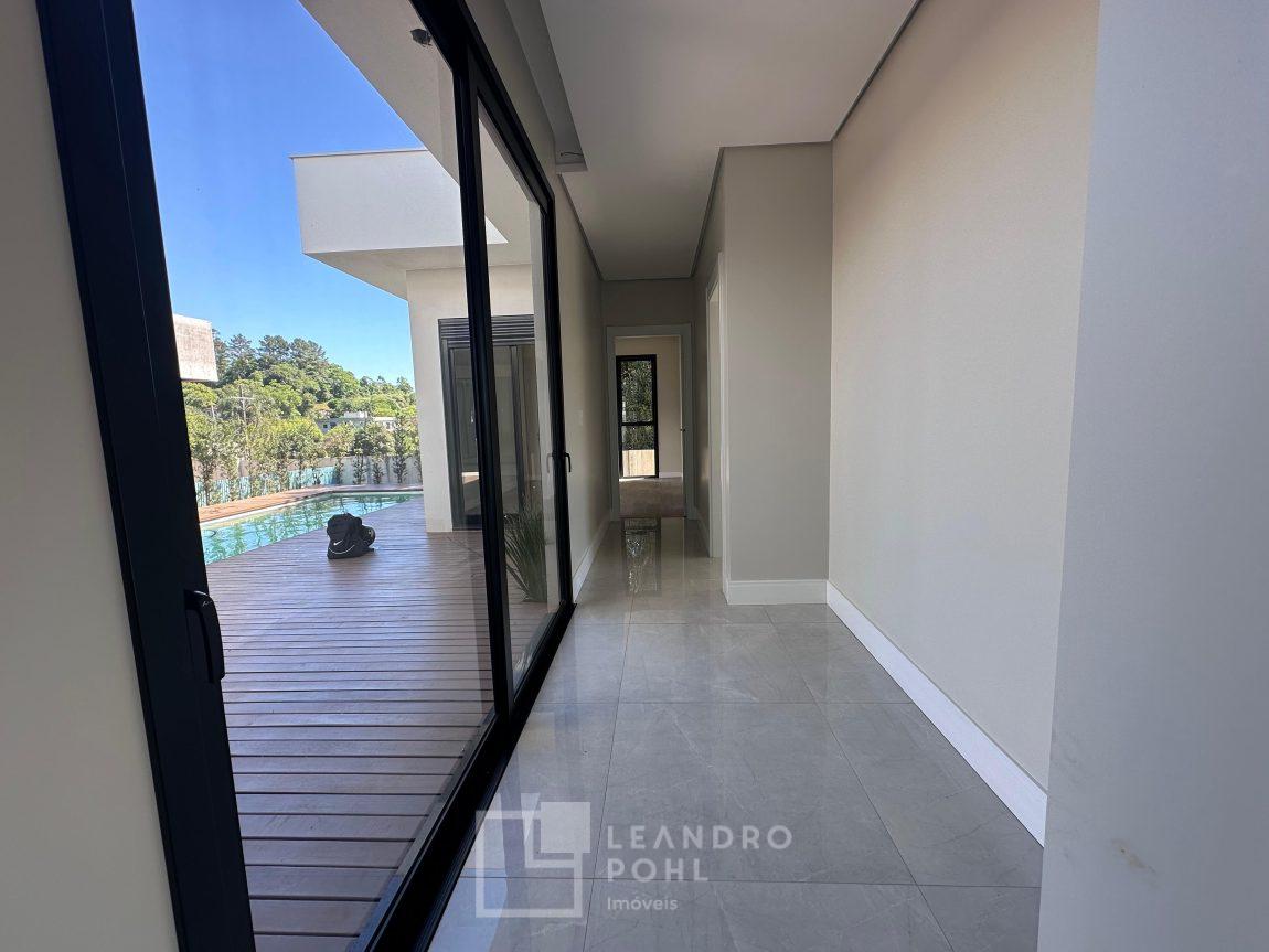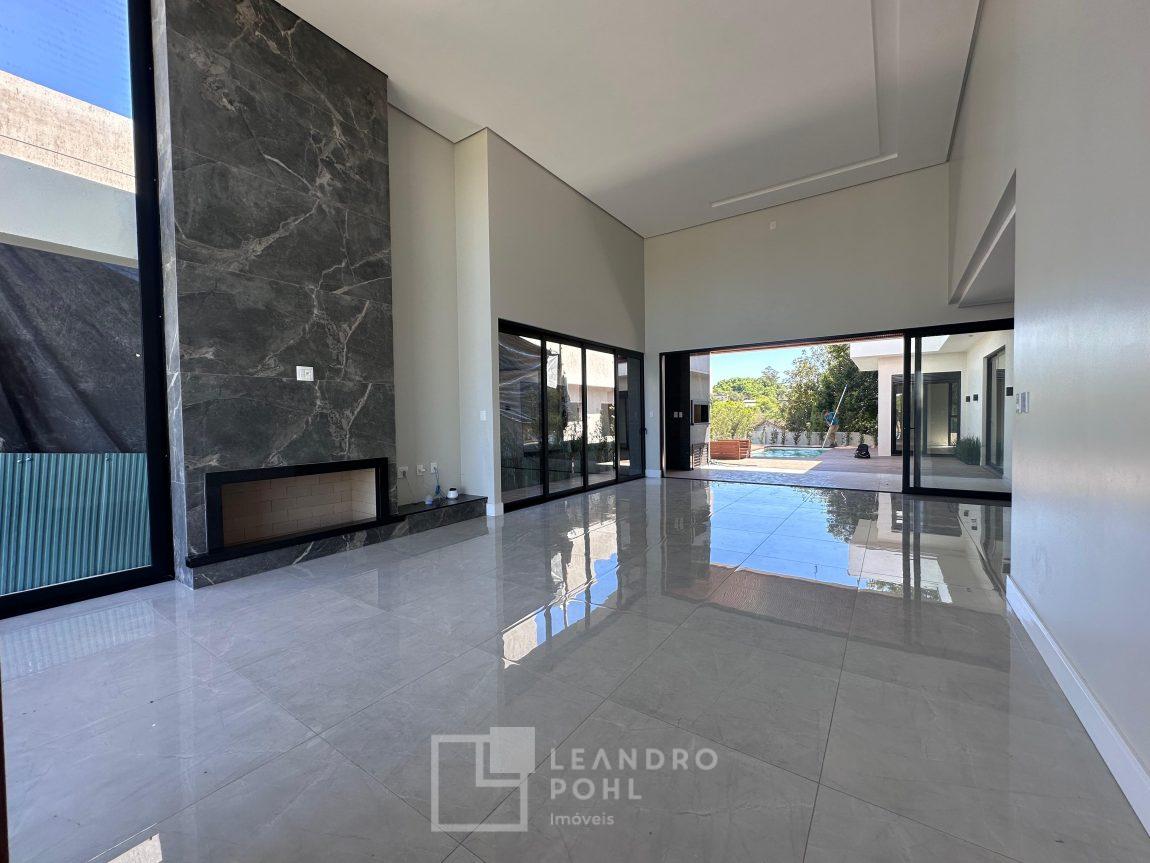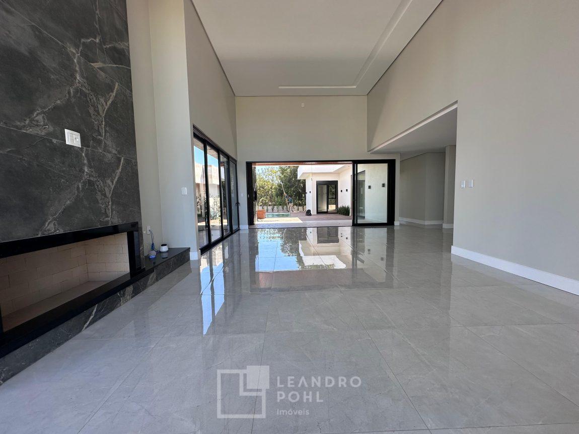 Localizada no Condomínio Land Haus, com 3 suítes +lavabo, plana, uma das súites com closet, lareira, nova, pé direito alto na área social, gesso, area de serviço separada, moderna proporcionando bem estar e conforto para família, com 2 vagas de garagem, automatizada , fechadura eletrônica , Alexa , Wifi , automação elétrica, piscina com deck!
