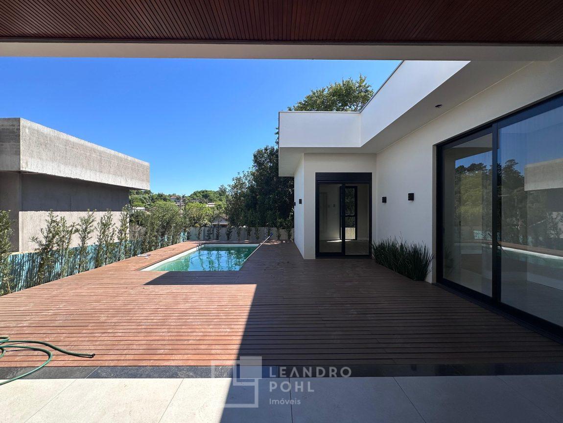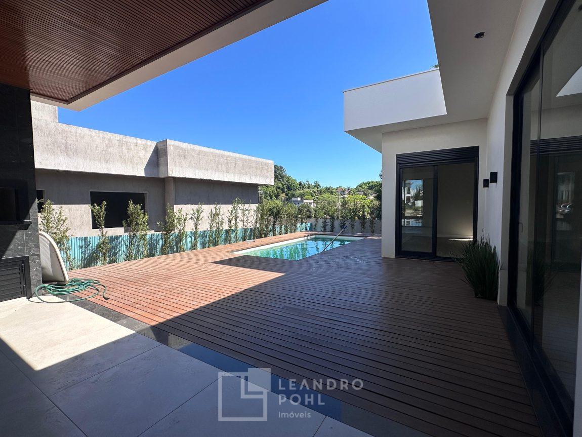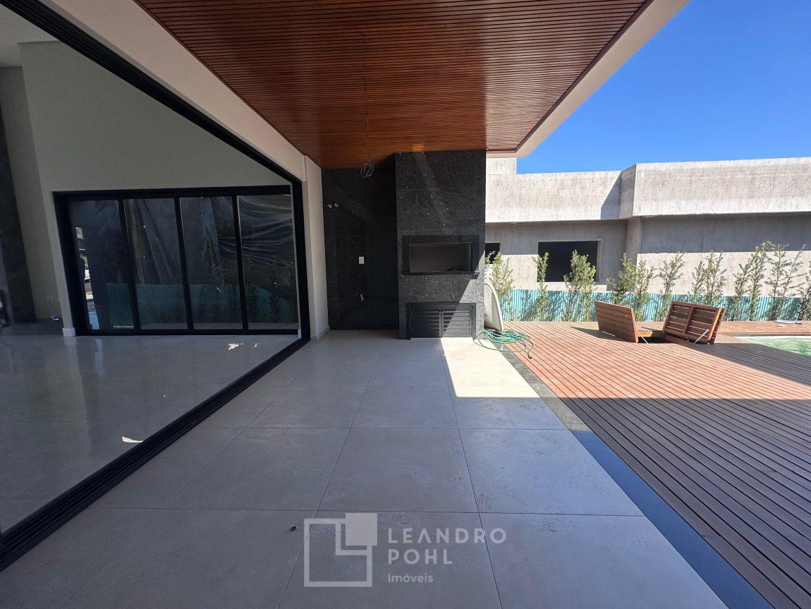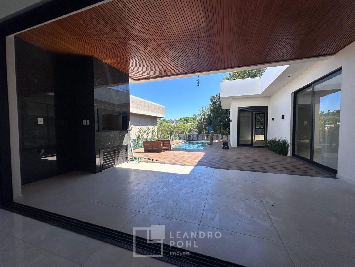 Localizada no Condomínio Land Haus, com 3 suítes +lavabo, plana, uma das súites com closet, lareira, nova, pé direito alto na área social, gesso, area de serviço separada, moderna proporcionando bem estar e conforto para família, com 2 vagas de garagem, automatizada , fechadura eletrônica , Alexa , Wifi , automação elétrica, piscina com deck!