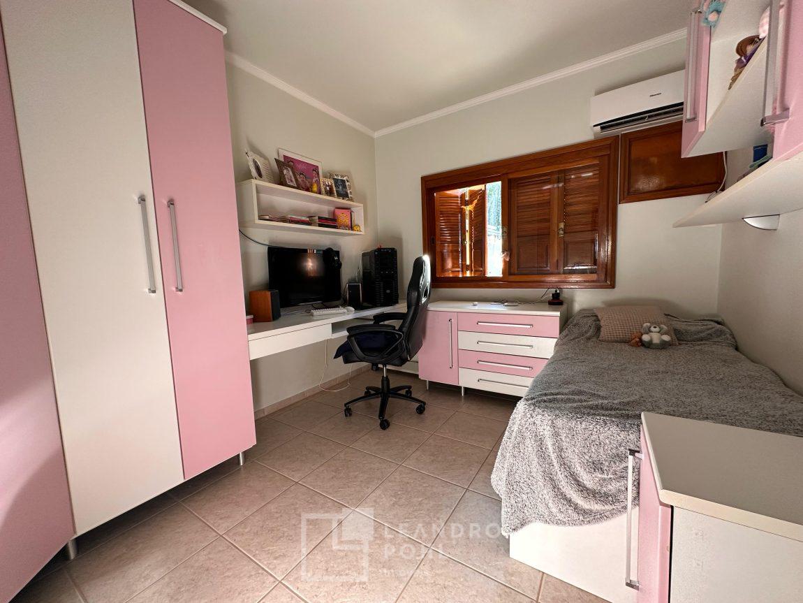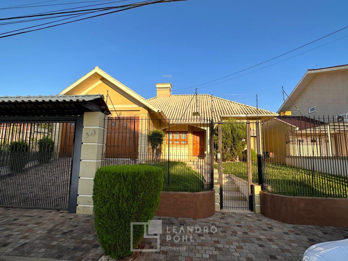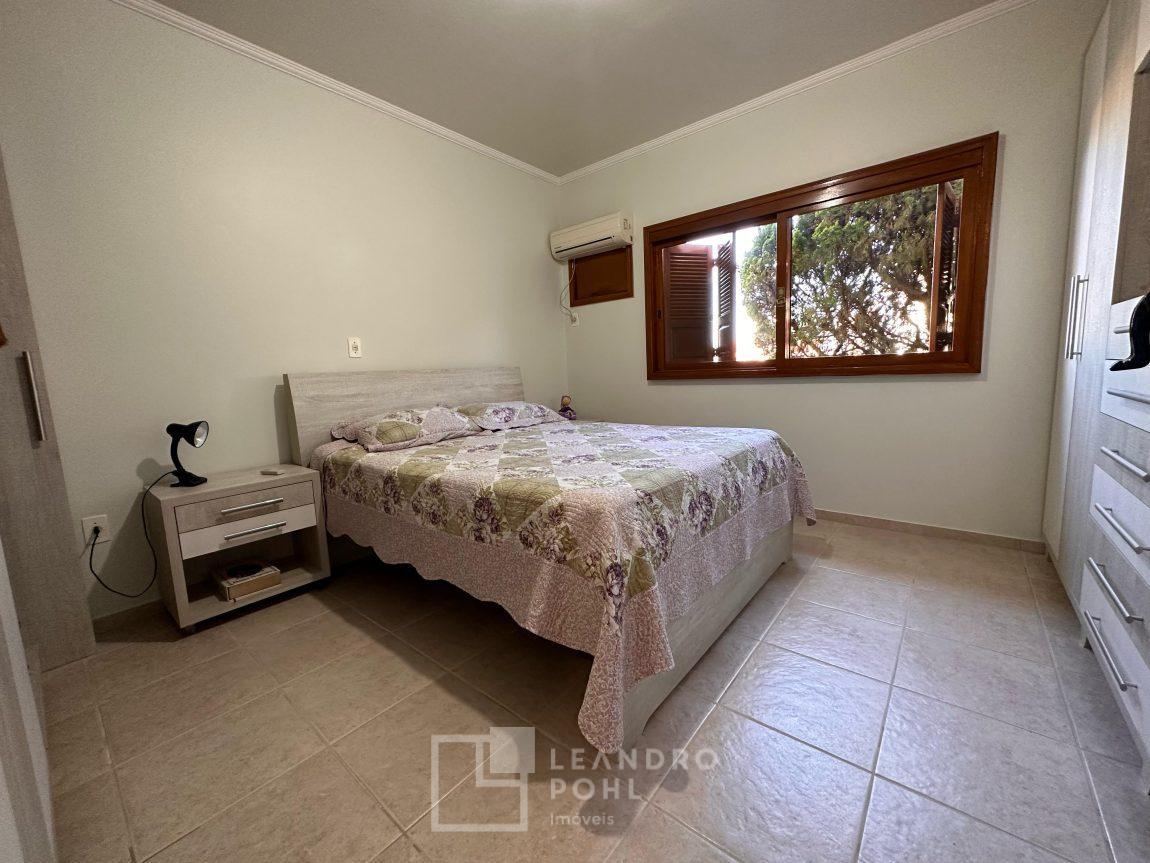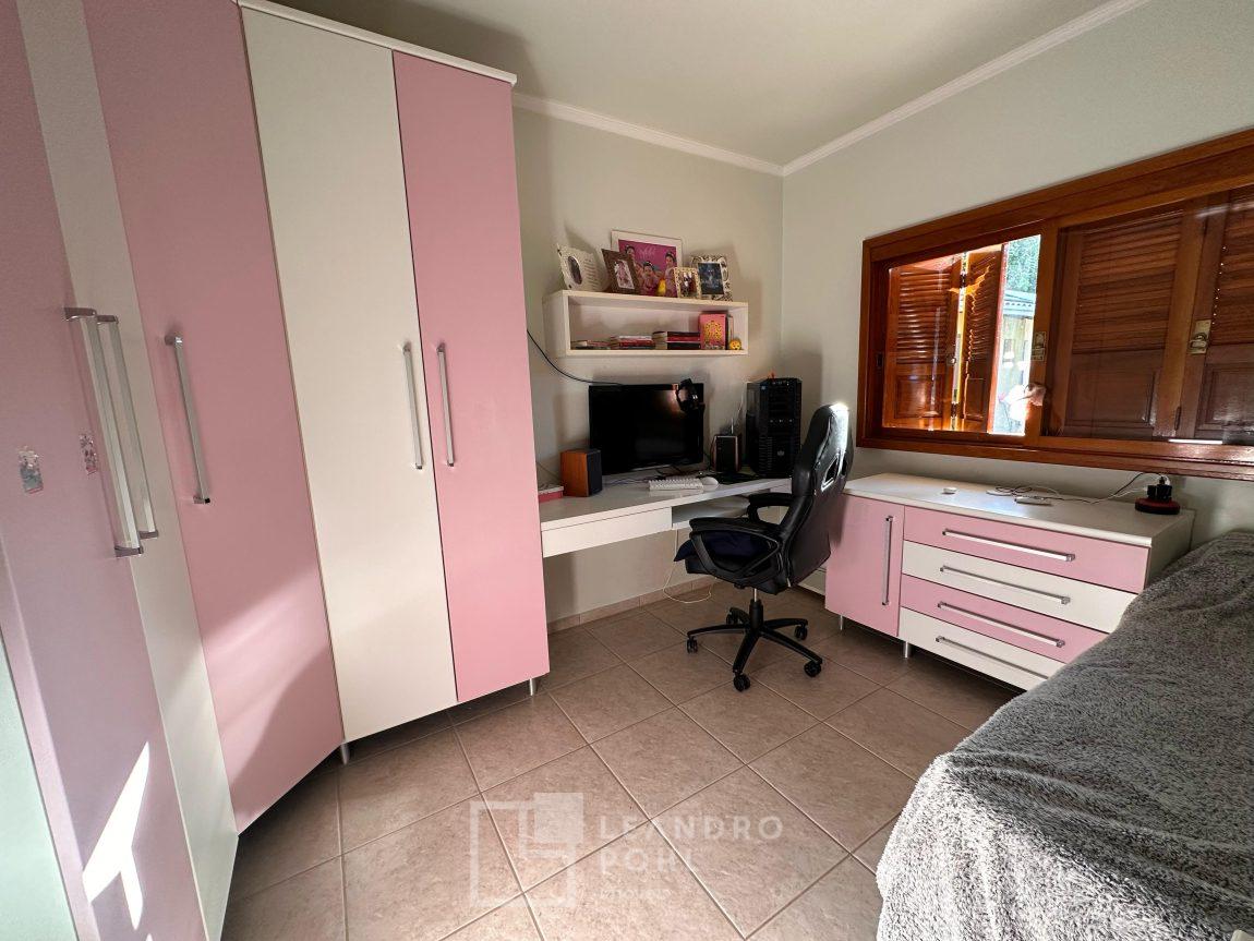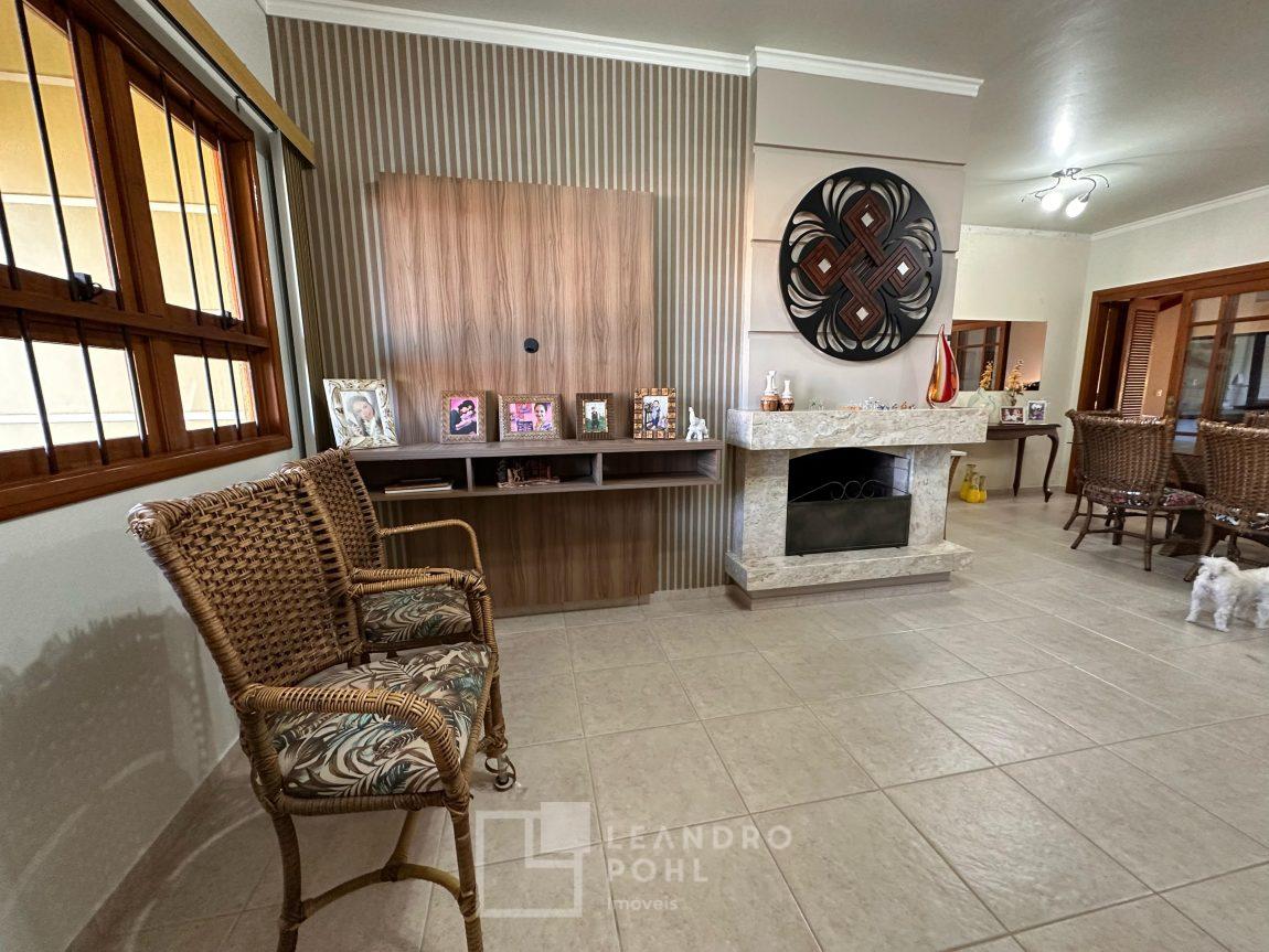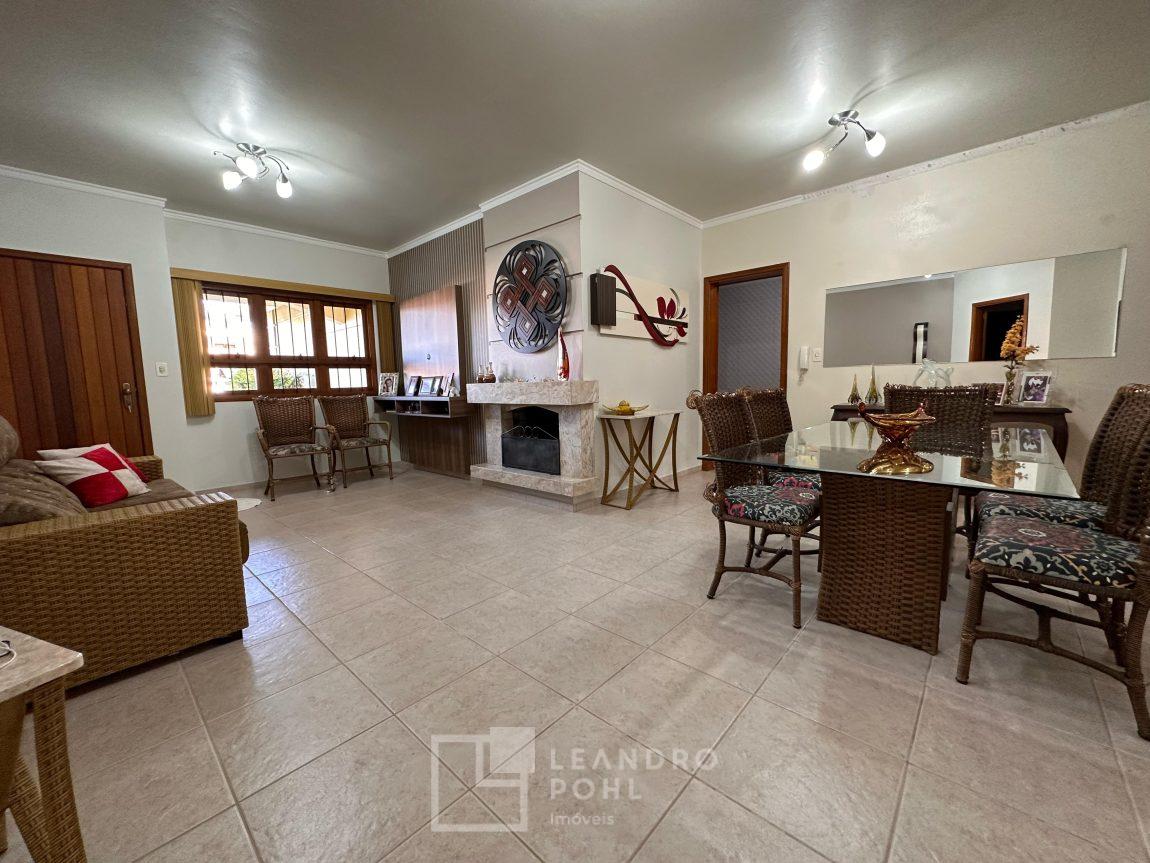 Casa plana no loteamento Verdes Vales, 3 dormitórios, sendo uma suíte e dois banheiros, cozinha com móveis projetados, sala de estar e jantar, sala com lareira, piso cerâmico, espaço gourmet e quiosque, piscina com aquecimento, duas churrasqueiras, duas lareiras, casa murada e cercada, possui aquecimento a gás e portão eletrônico, cisterna.