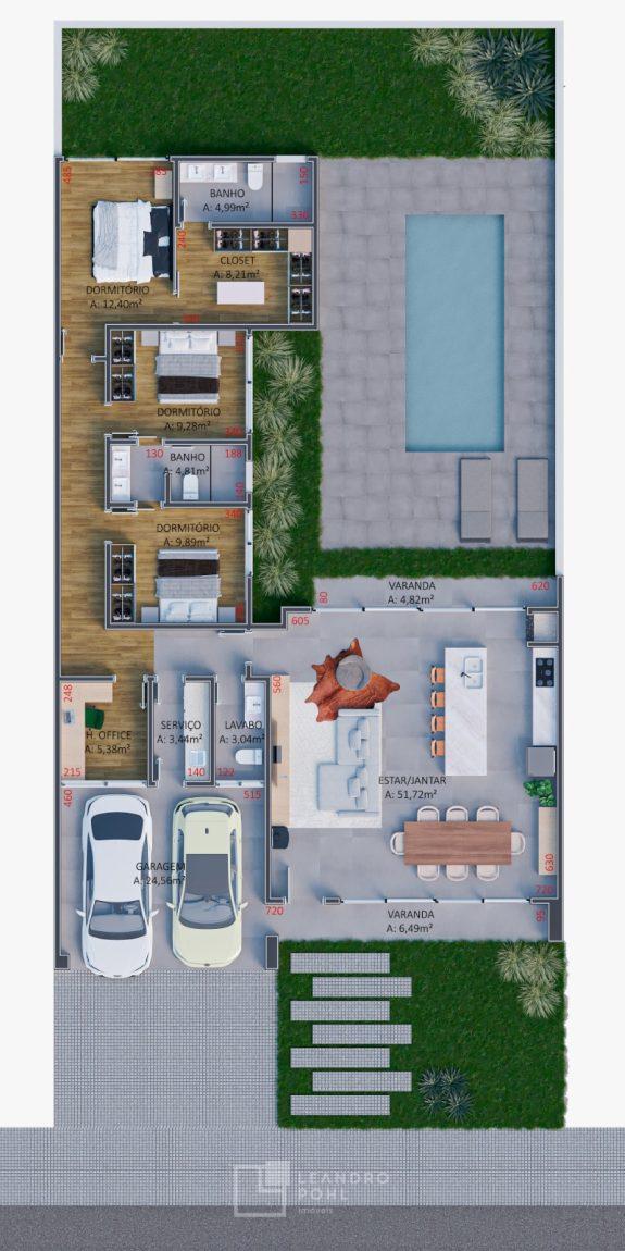 Casa 3 Suítes - 183,37m²;