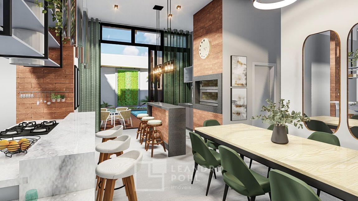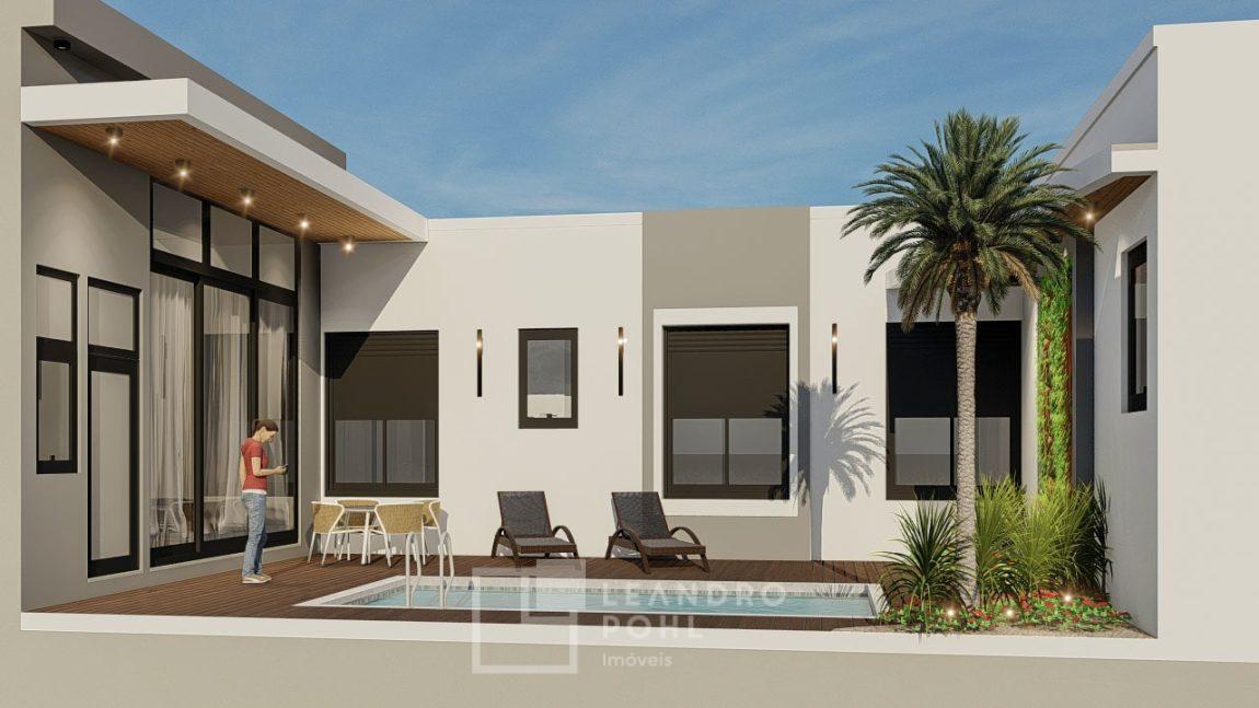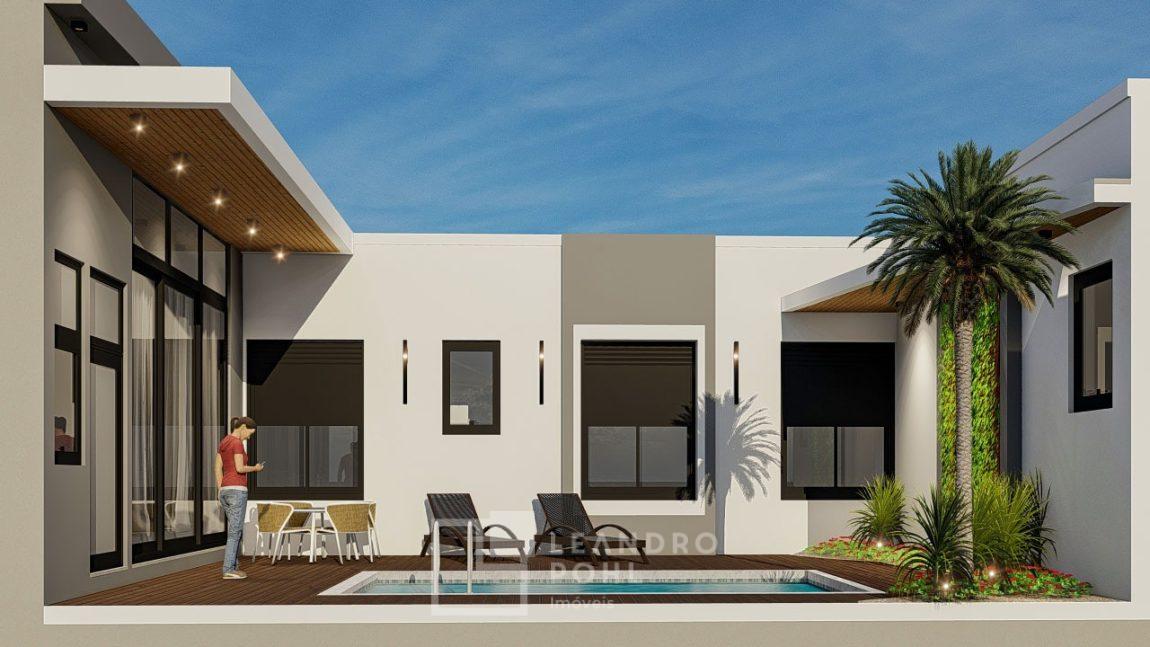 Casa plana, com 3 suítes, persianas automatizadas, entrega da obra prevista para outubro de 2024.