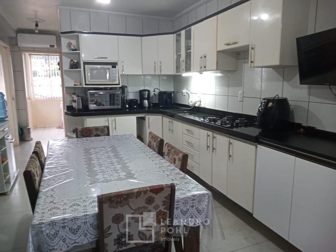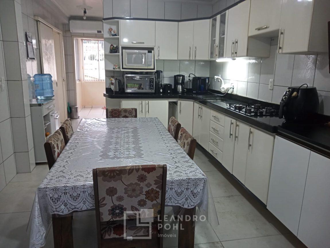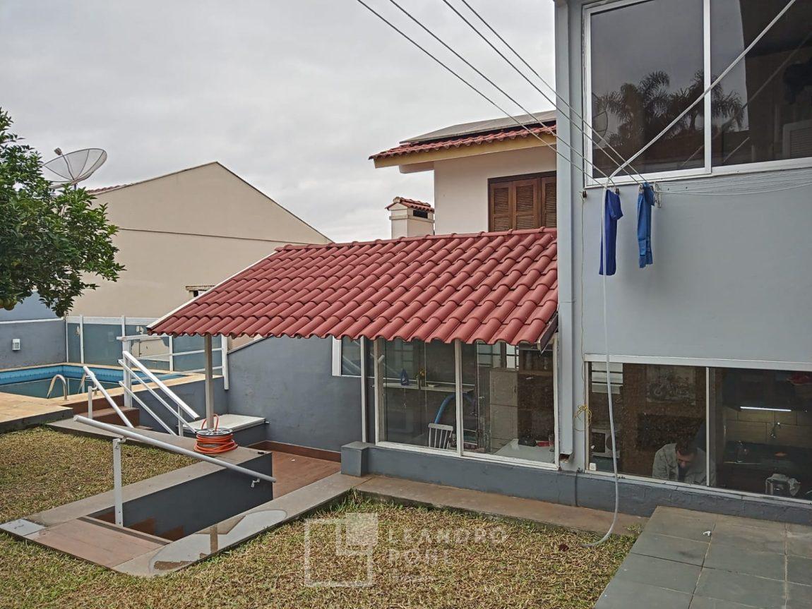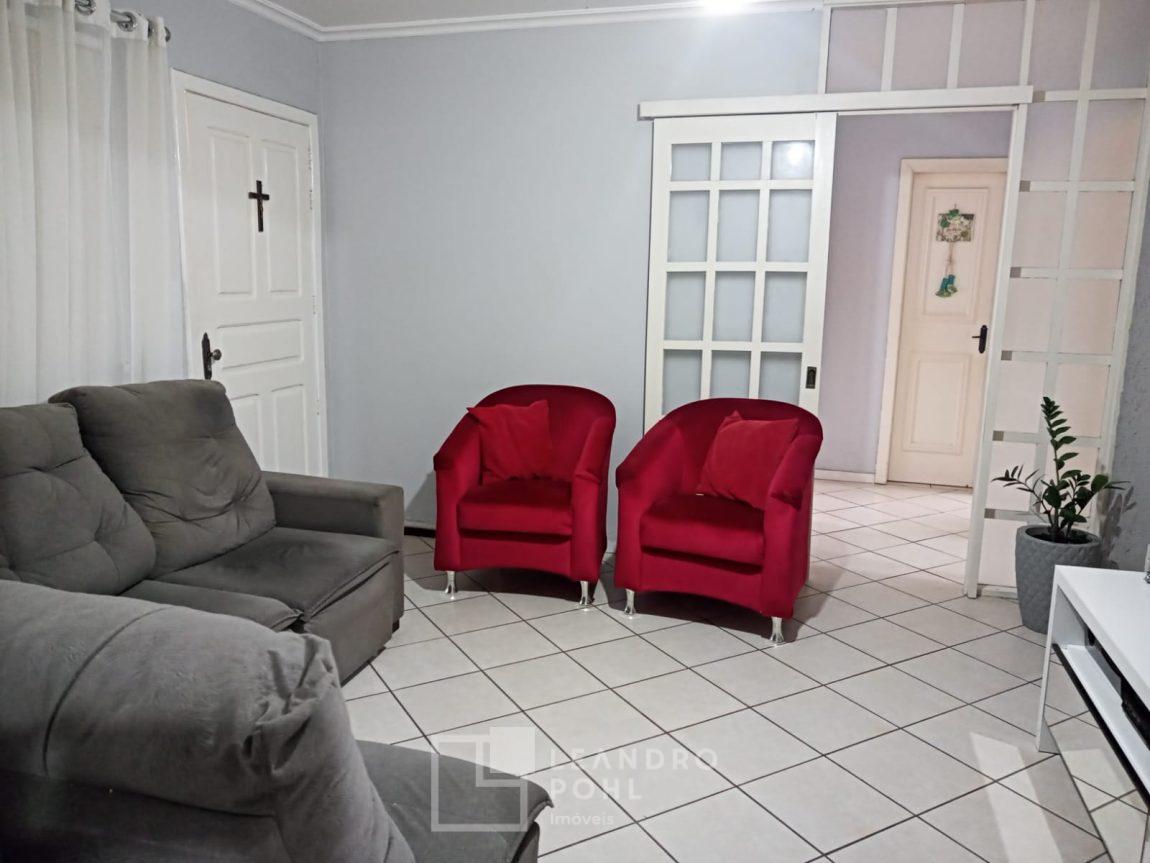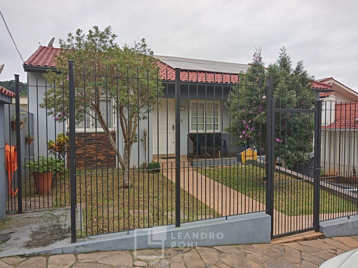Casa funcional, 3 dormitórios, 150,28 m² de construção, piscina aquecida de 12,14m², 2 banheiros, sala de estar, cozinha separada, lavanderia, espaço com churrasqueira, quiosque, garagem para um veículo, murada e cercada, pátio frente e fundos, casa possui energia fotovoltaica.