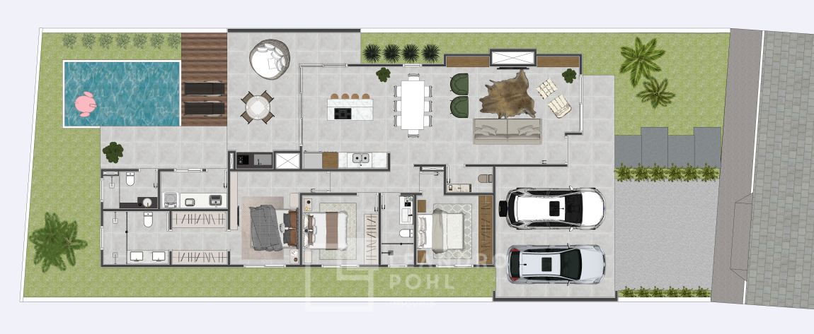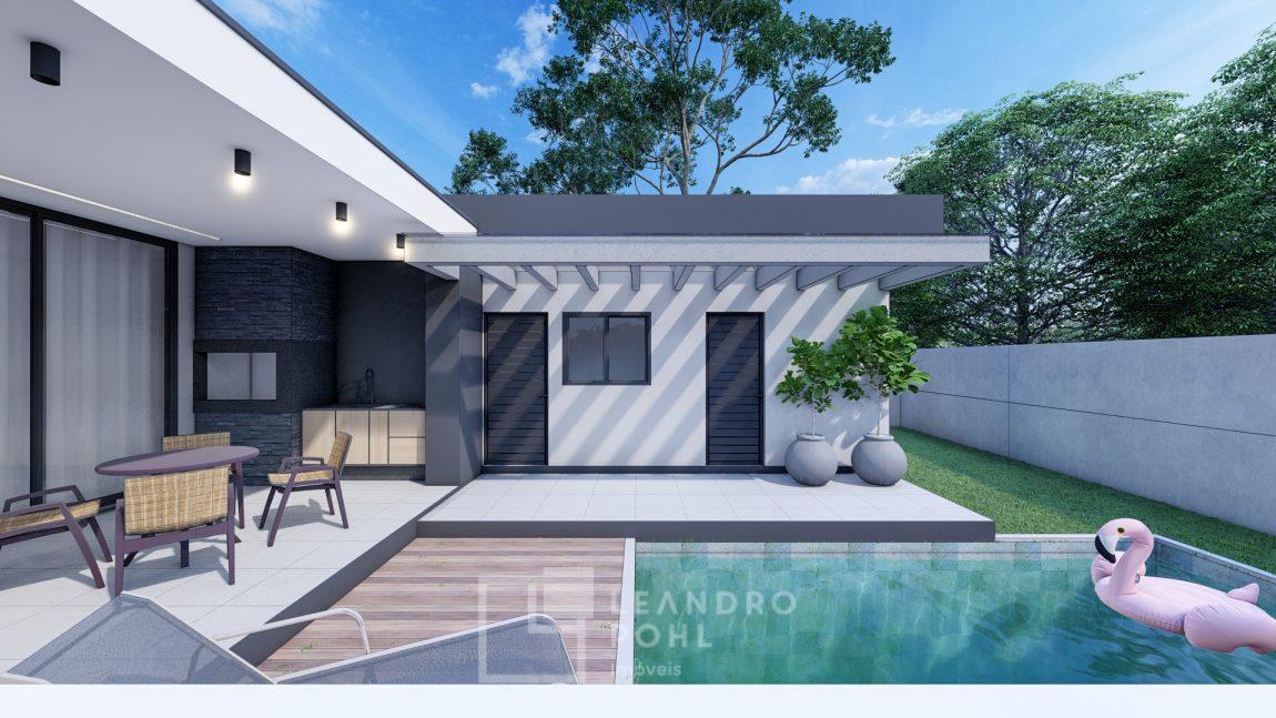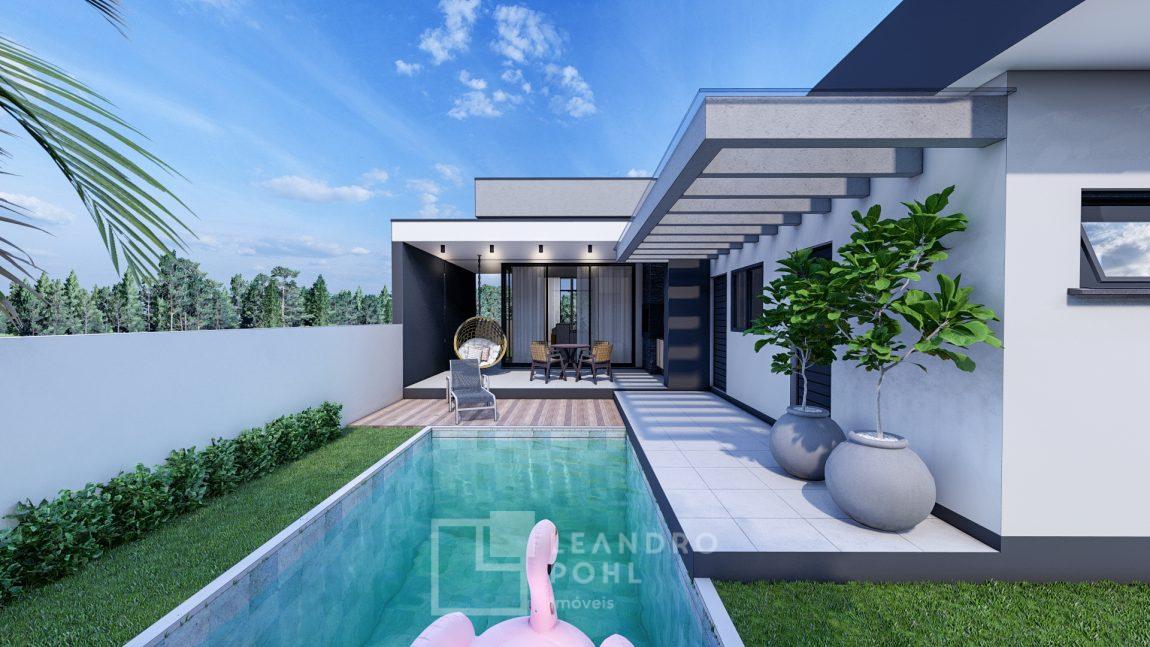 Piscina não esta inclusa no valor global da construção. Pode ser um adicional no projeto, sendo que o cliente poderá colocar a piscina de seu desejo.