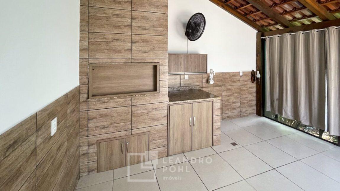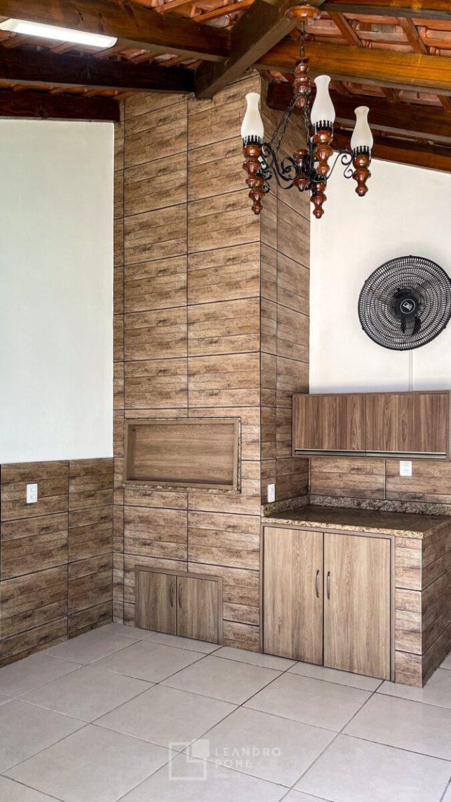 Casa 3 dormitórios, SEMIMOBILIADA, aberturas externas e internas em madeira, ar condicionado, área de serviço, banheiro social, cercado, churrasqueira, de frente para área verde, garagem fechada, lavabo, móveis sob medida, piso cerâmico, quiosque
