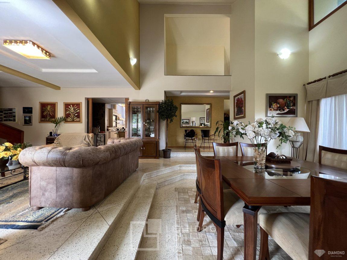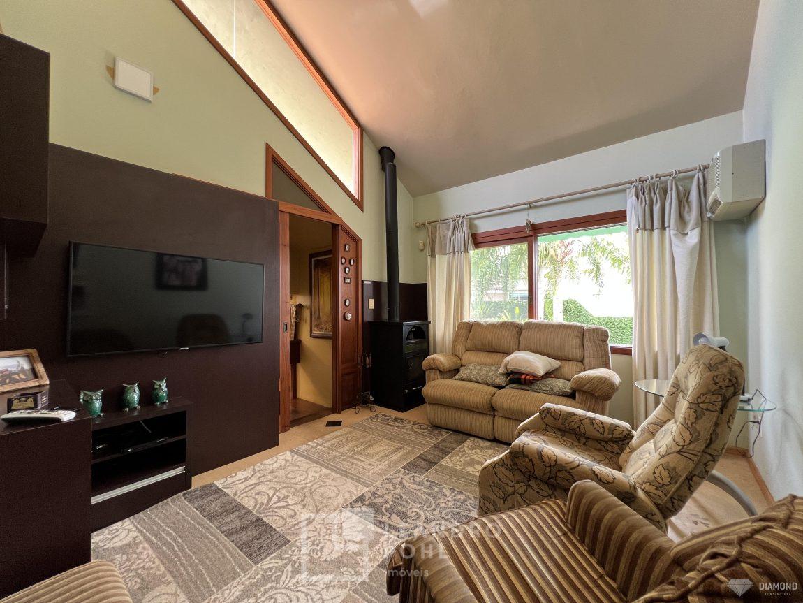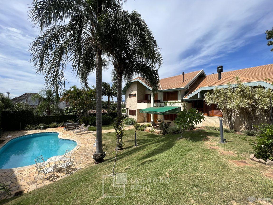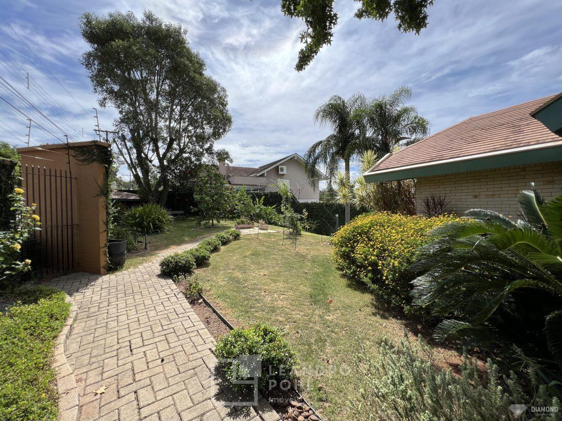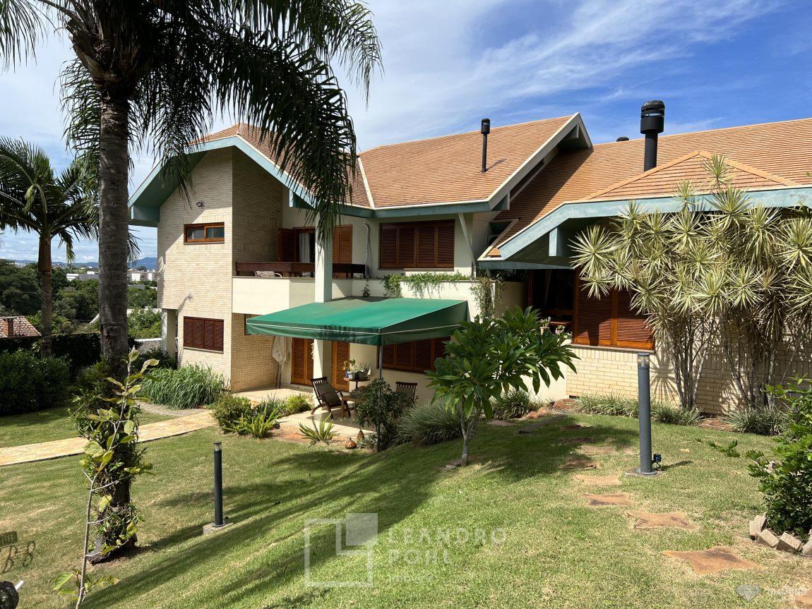 Casa de alvenaria com dois pavimentos, 3 dormitórios, sendo 3 suítes, 4 vagas de garagem, piso inferior de 112,57m² e piso superior com 285,19m², edificada sob um terreno de 1.080,00m², posição solar Sul, churrasqueira, adega, lareira, aquecimento solar, piscina, terreno com 1.000m² árvores frutíferas.