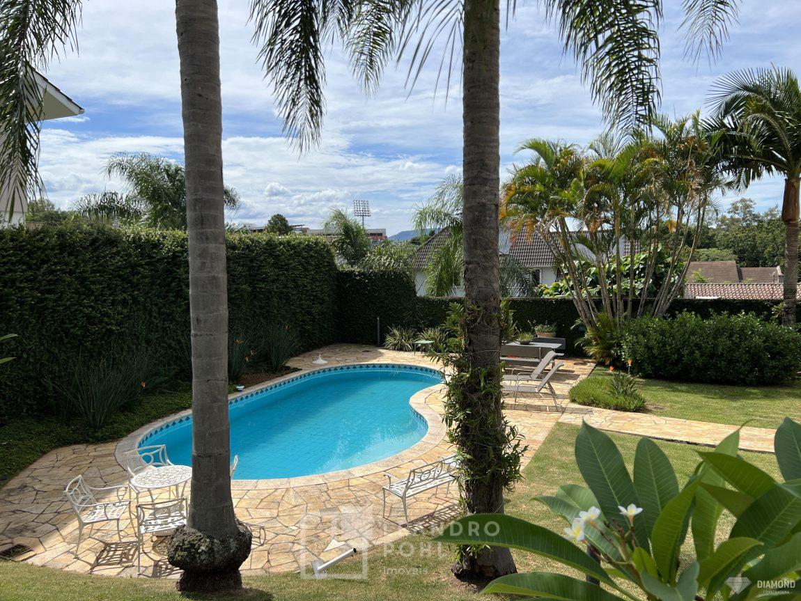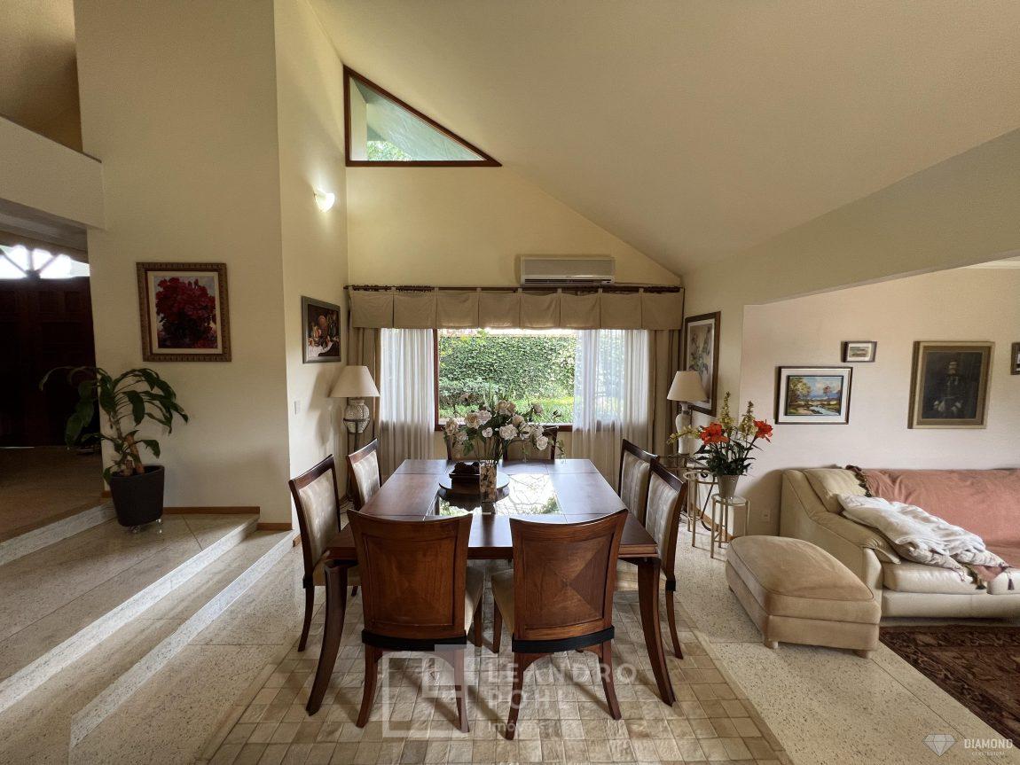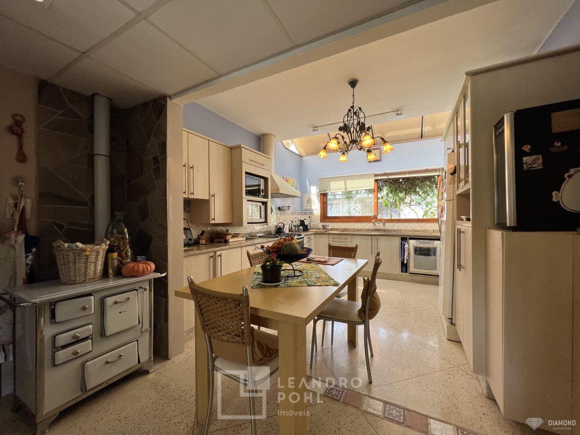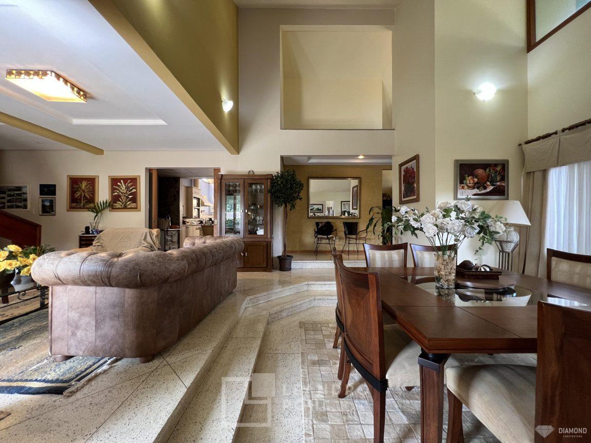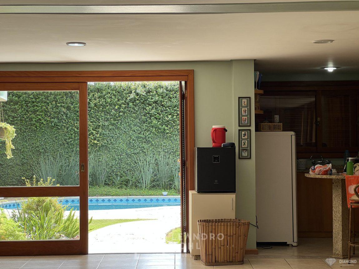 Casa de alvenaria com dois pavimentos, 3 dormitórios, sendo 3 suítes, 4 vagas de garagem, piso inferior de 112,57m² e piso superior com 285,19m², edificada sob um terreno de 1.080,00m², posição solar Sul, churrasqueira, adega, lareira, aquecimento solar, piscina, terreno com 1.000m² árvores frutíferas.