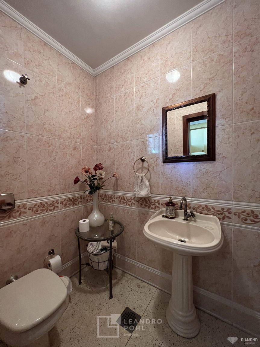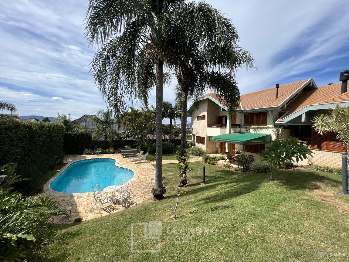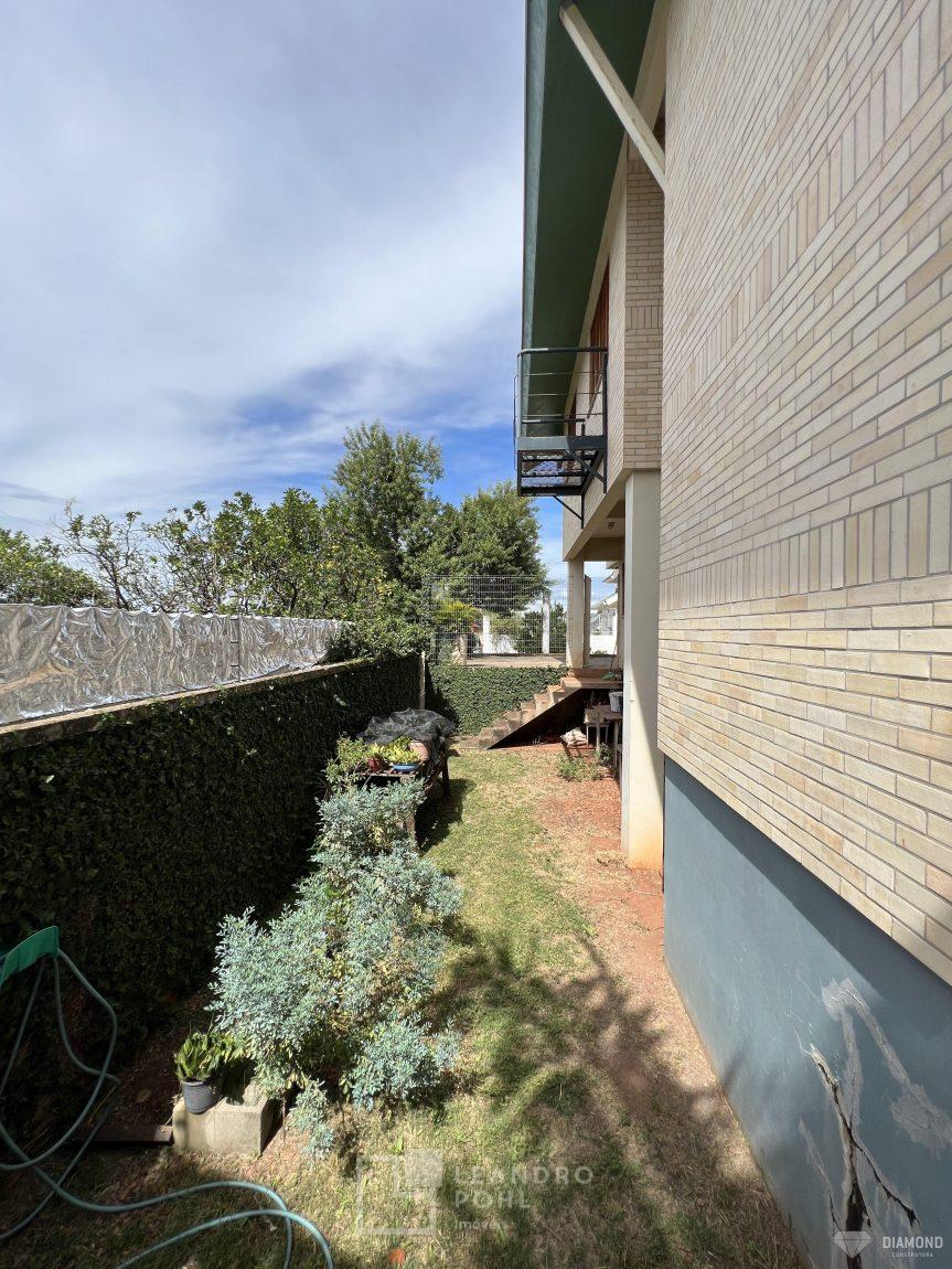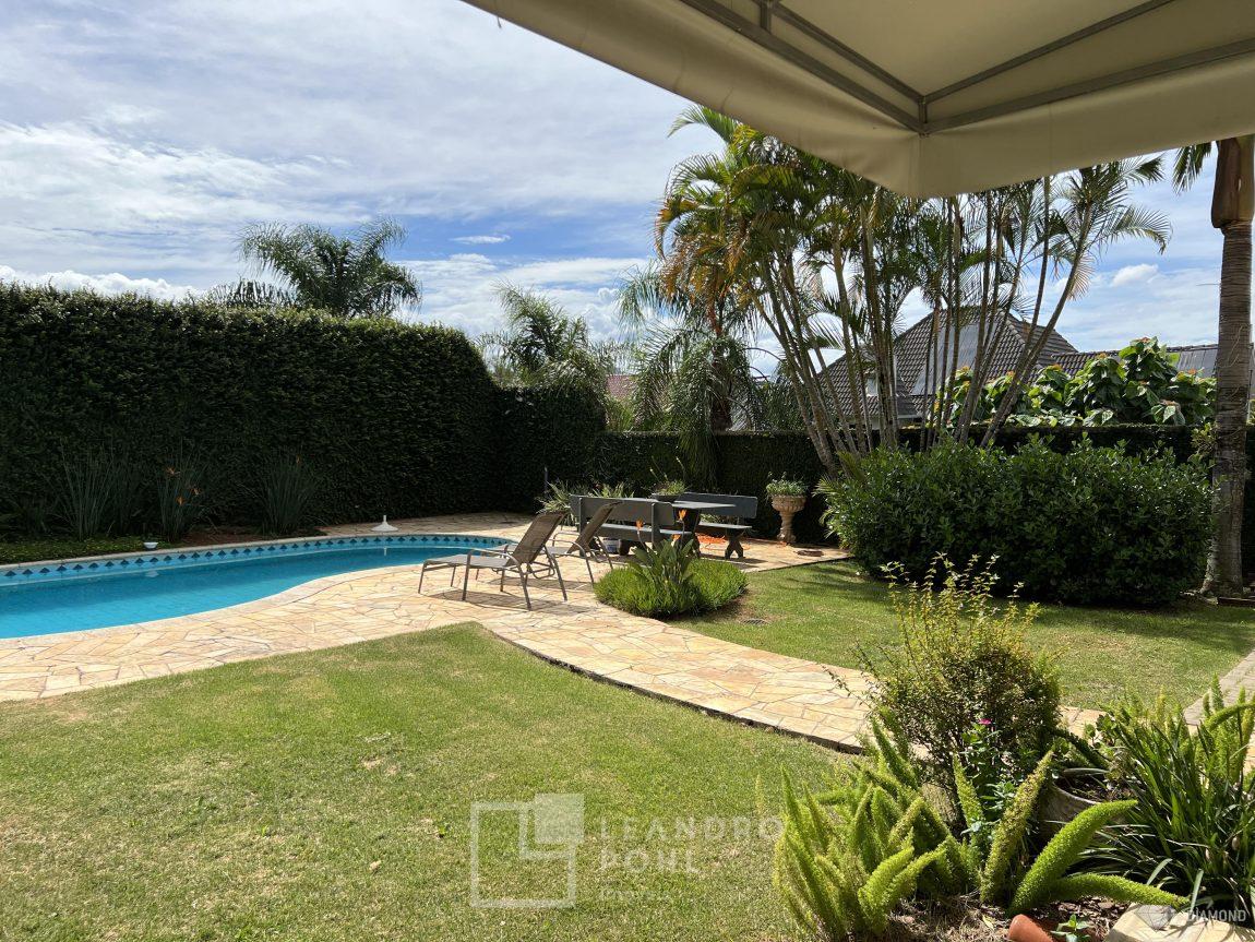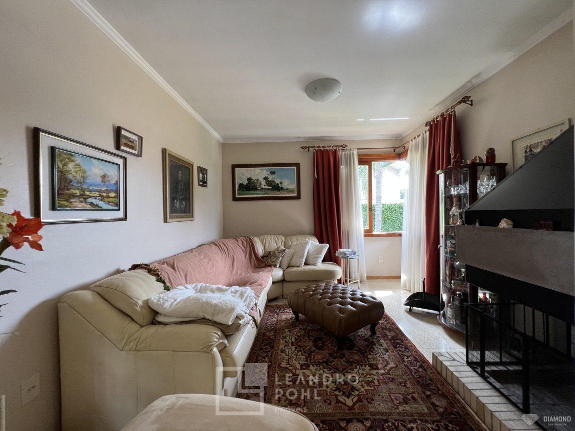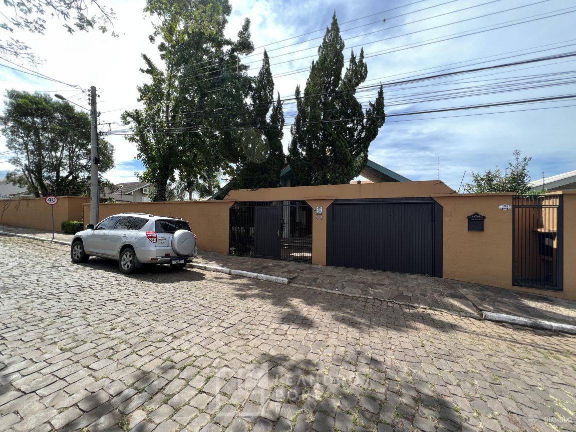 Casa de alvenaria com dois pavimentos, 3 dormitórios, sendo 3 suítes, 4 vagas de garagem, piso inferior de 112,57m² e piso superior com 285,19m², edificada sob um terreno de 1.080,00m², posição solar Sul, churrasqueira, adega, lareira, aquecimento solar, piscina, terreno com 1.000m² árvores frutíferas.