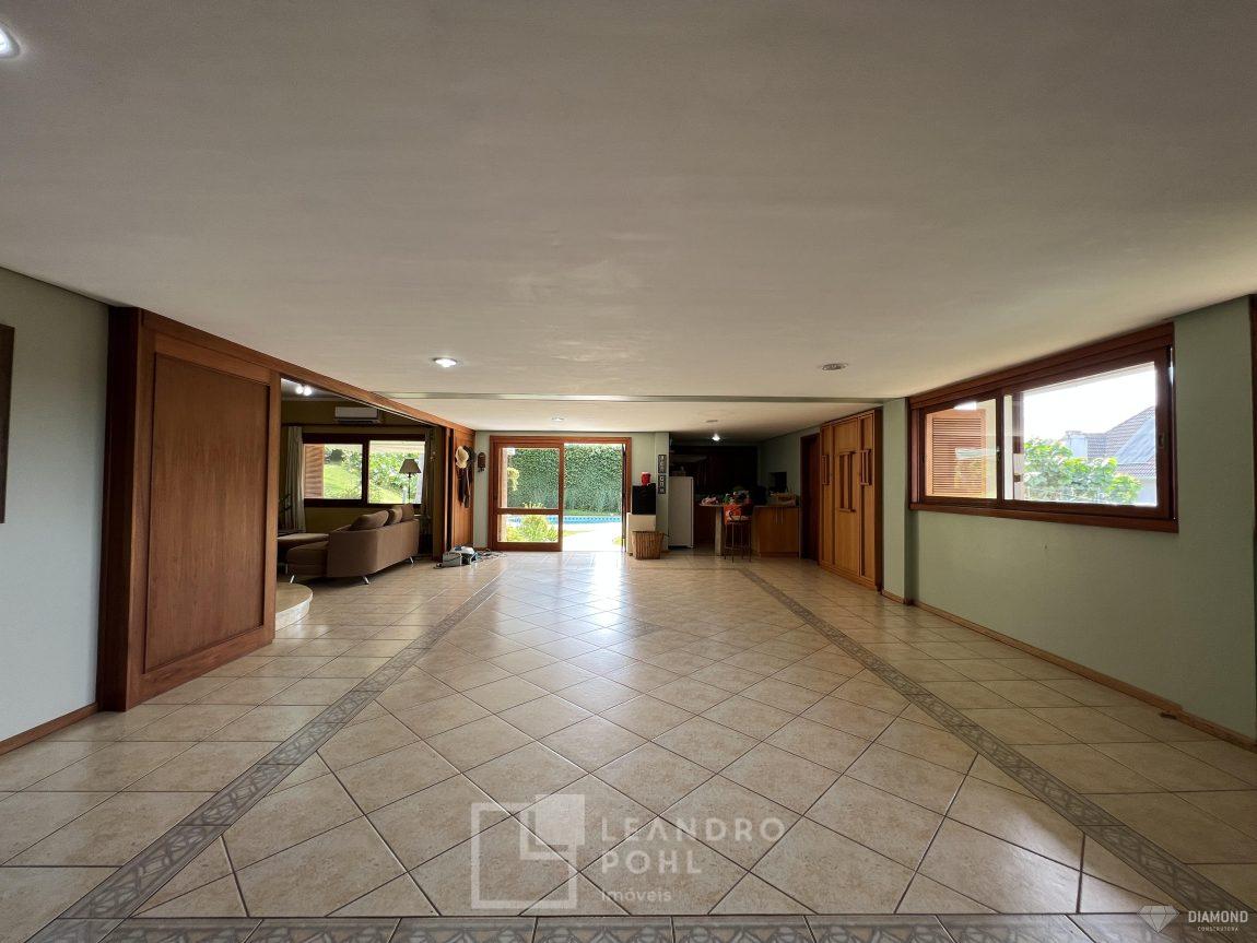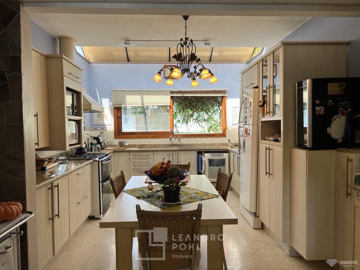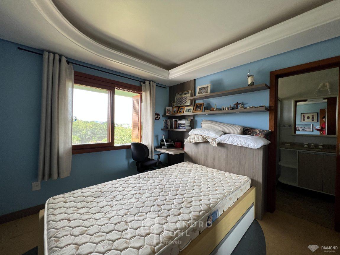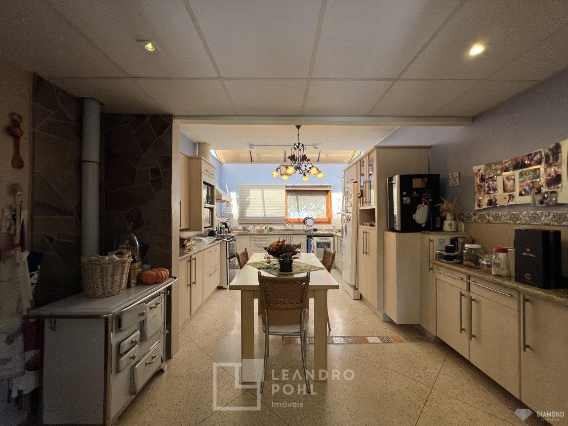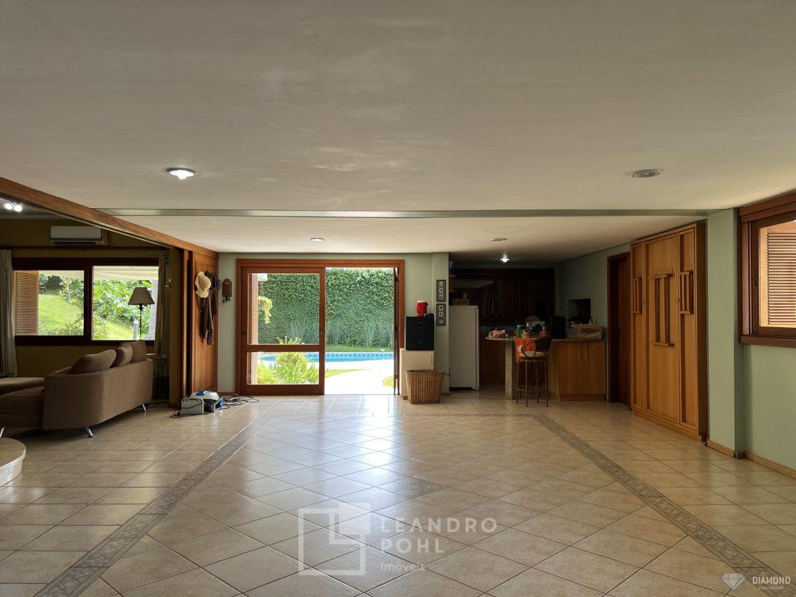 Casa de alvenaria com dois pavimentos, 3 dormitórios, sendo 3 suítes, 4 vagas de garagem, piso inferior de 112,57m² e piso superior com 285,19m², edificada sob um terreno de 1.080,00m², posição solar Sul, churrasqueira, adega, lareira, aquecimento solar, piscina, terreno com 1.000m² árvores frutíferas.