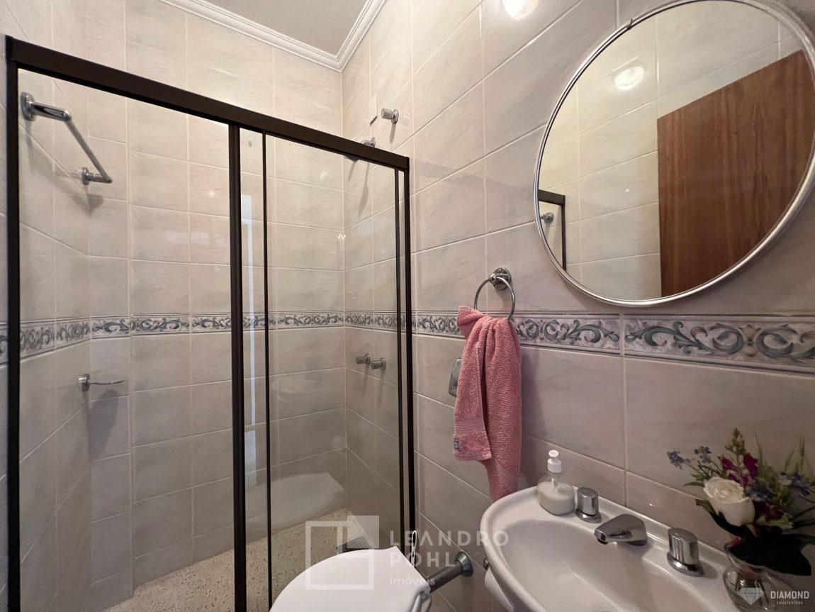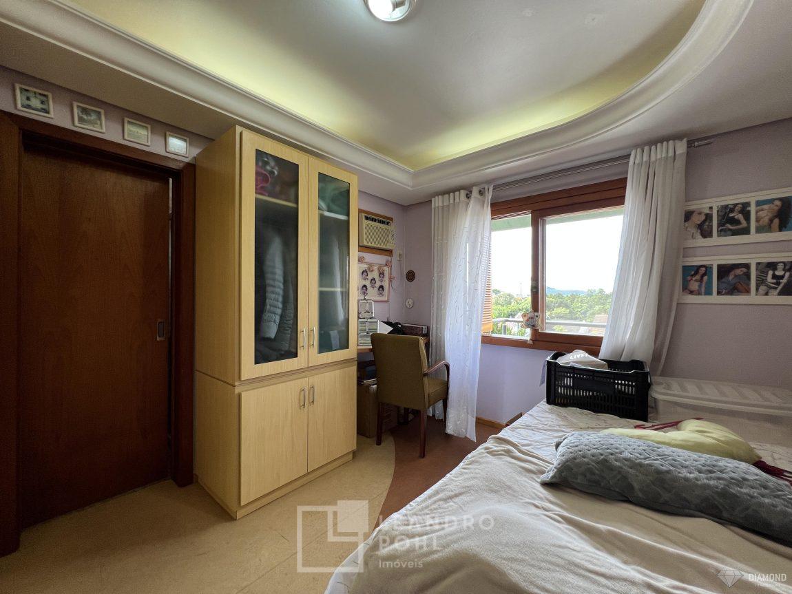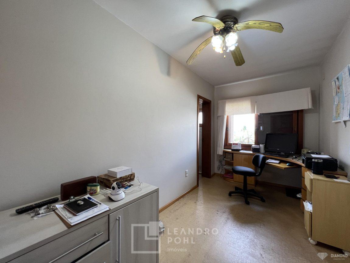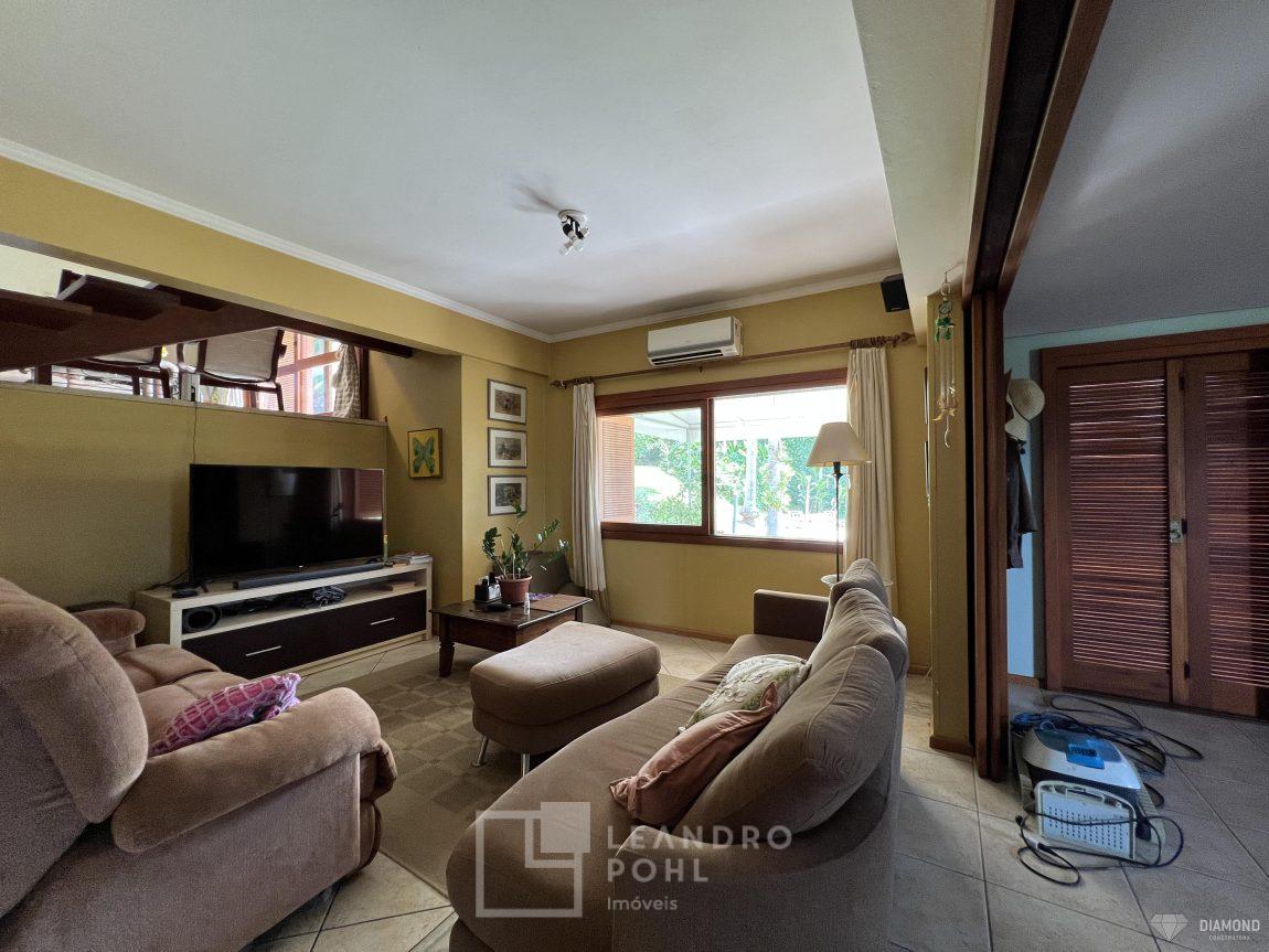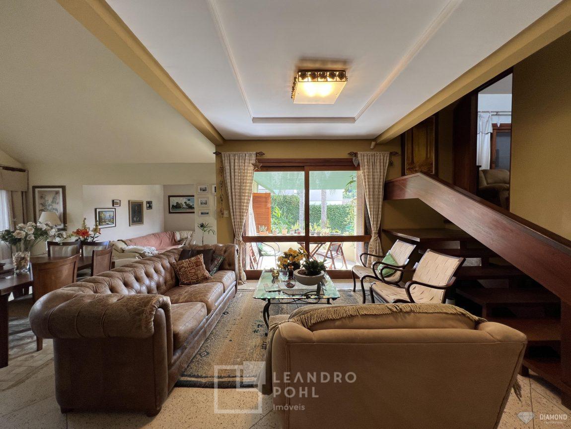 Casa de alvenaria com dois pavimentos, 3 dormitórios, sendo 3 suítes, 4 vagas de garagem, piso inferior de 112,57m² e piso superior com 285,19m², edificada sob um terreno de 1.080,00m², posição solar Sul, churrasqueira, adega, lareira, aquecimento solar, piscina, terreno com 1.000m² árvores frutíferas.