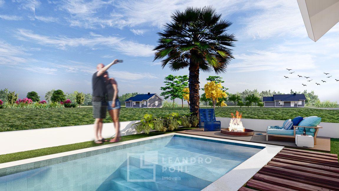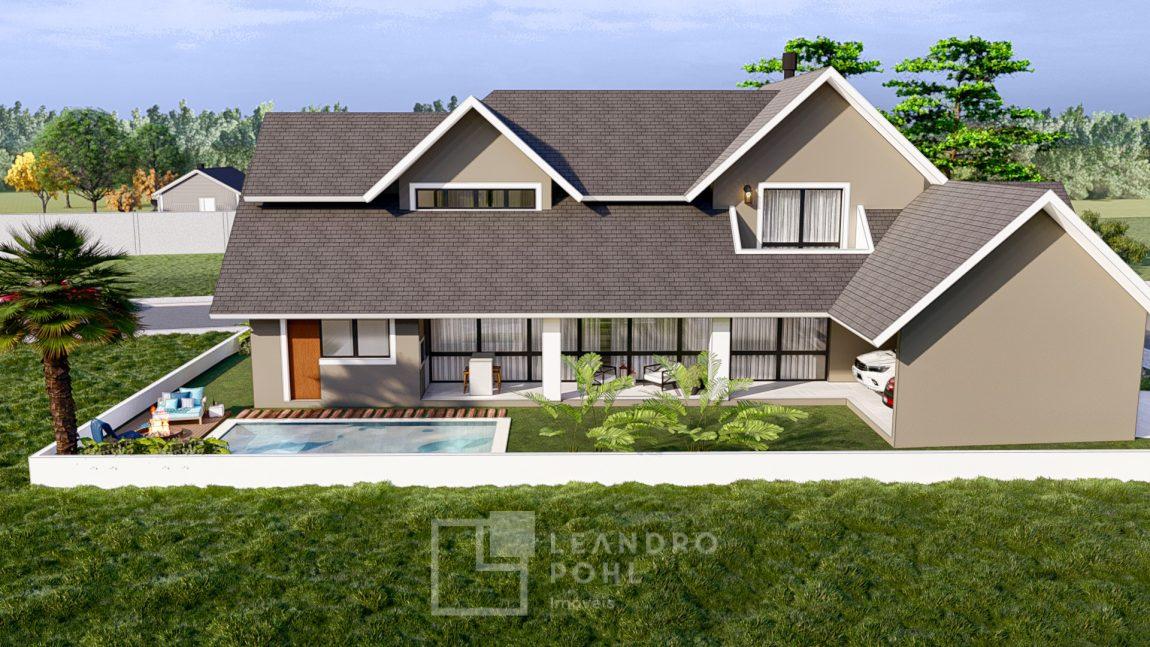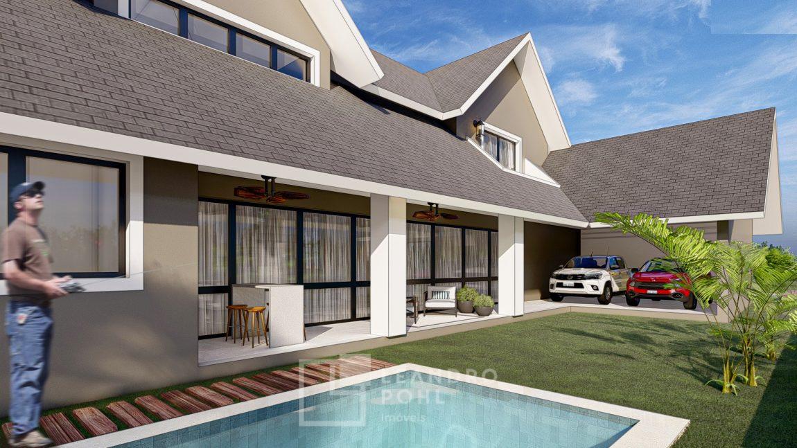 Casa de esquina com 349,29 m² + piscina com 21,00 m², totalizando 370,29 m². Terreno com localização privilegiada, próximo de área verde e infraestrutura do condomínio, com 672,10 m² privativos.