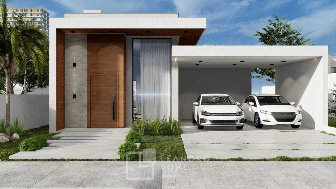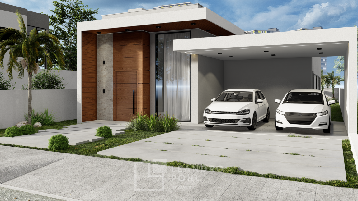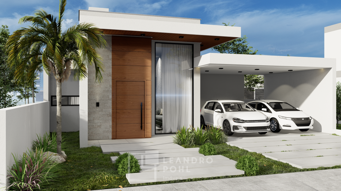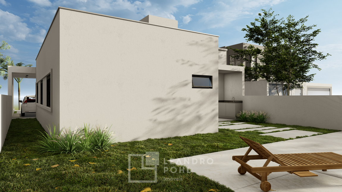 Casa plana, com 3 dormitórios sendo 1 suíte, pátio, garagem para 2 veículos, esperas para: Aquecimento solar, água quente, ar condicionado e automação, esquadrias de alumínio preto com persianas automatizadas.