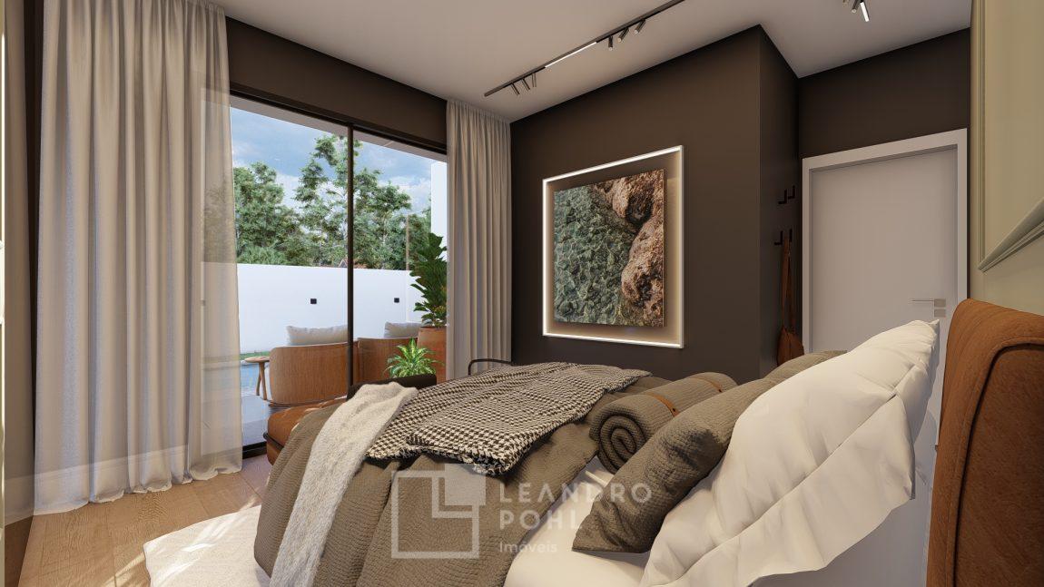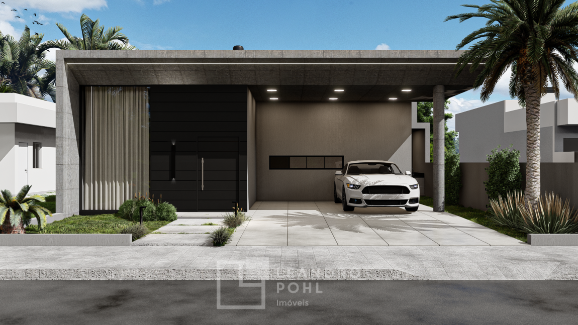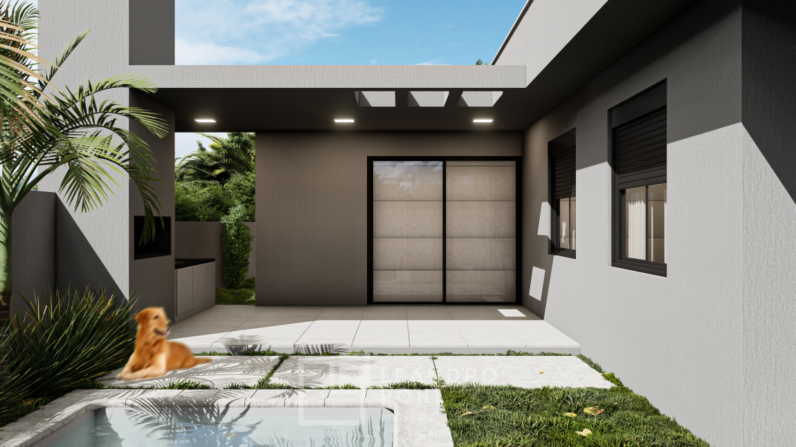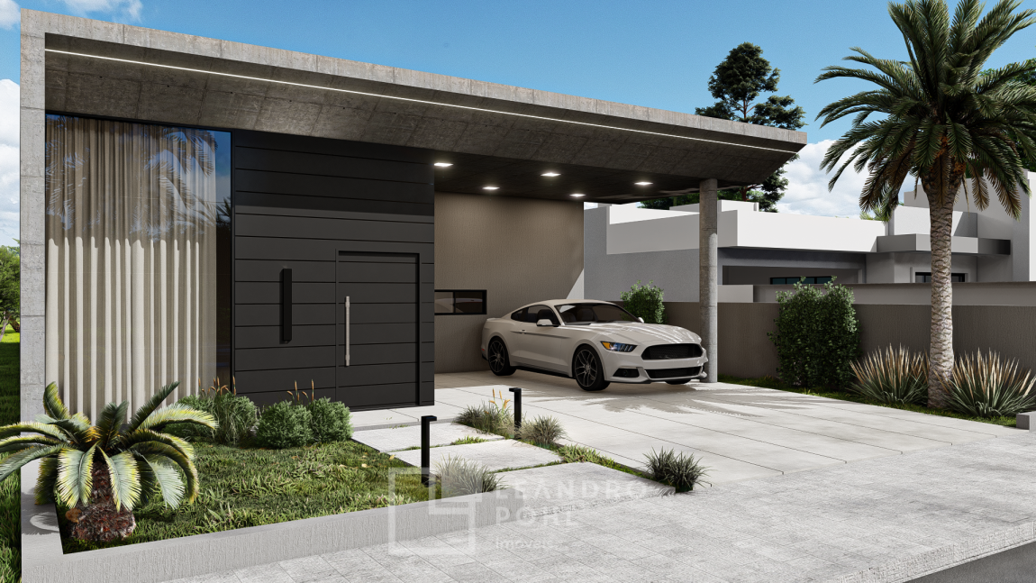 Casa plana, com 3 dormitórios sendo 1 suíte, pátio com piscina de 12,50m, garagem para 2 veículos, esperas para: Aquecimento solar, água quente, ar condicionado e automação, esquadrias de alumínio preto com persianas automatizadas, localizada em condomínio fechado .