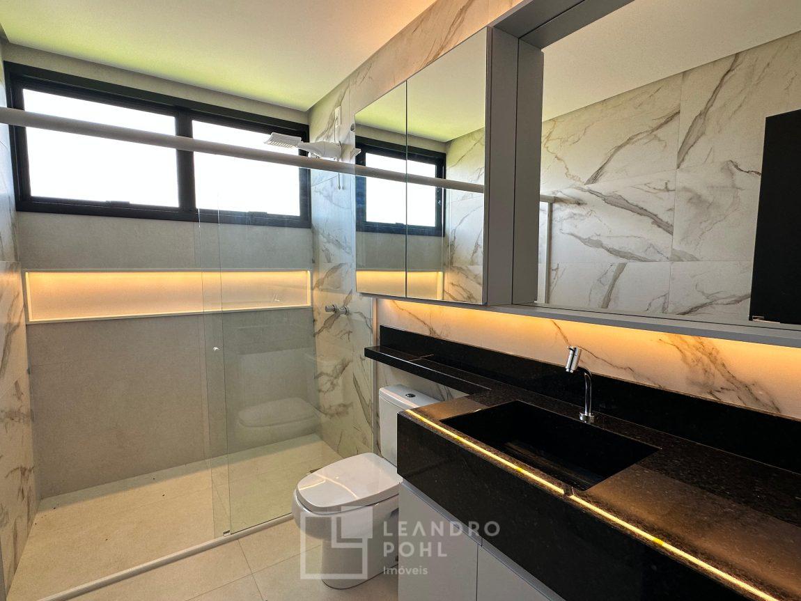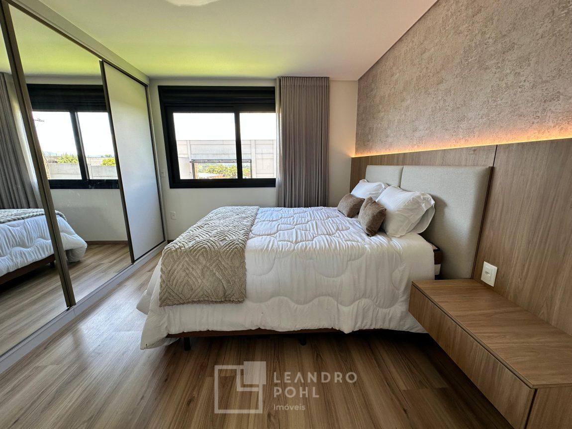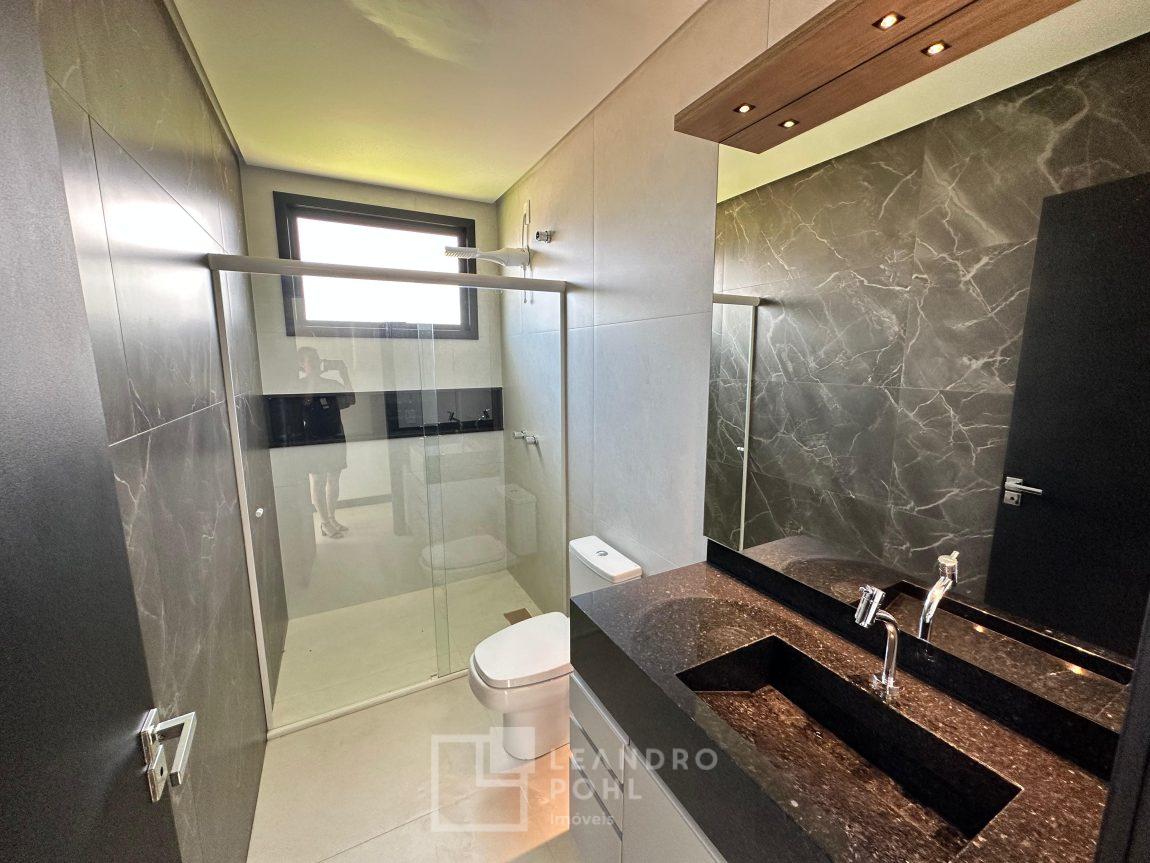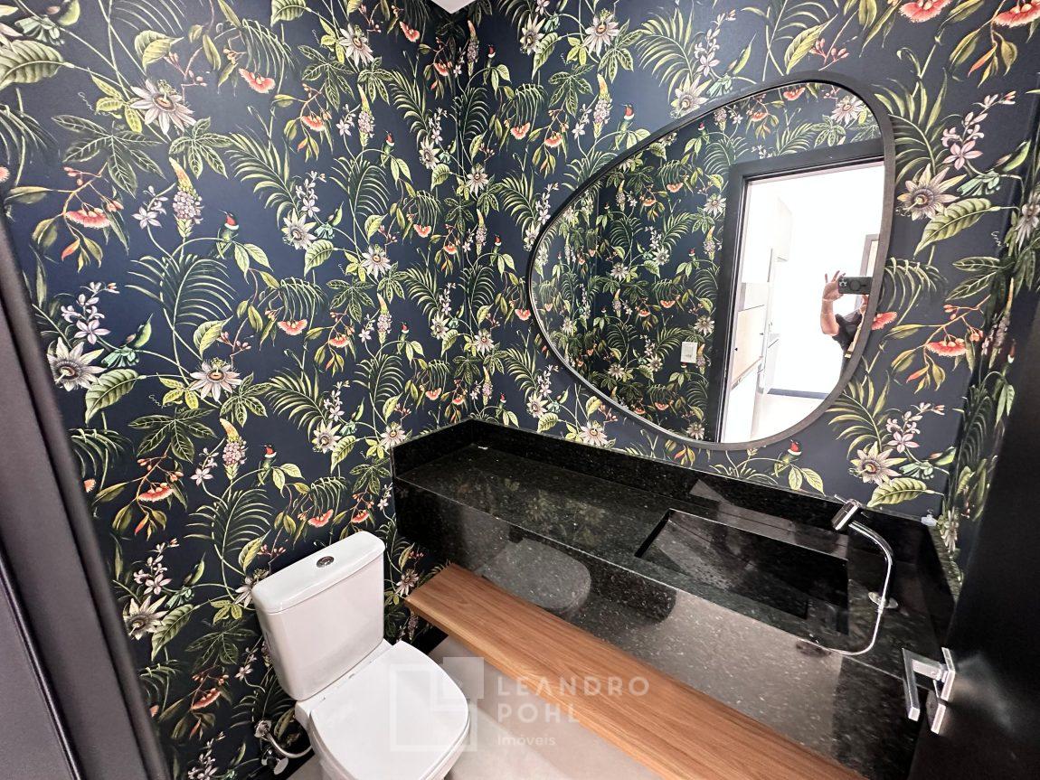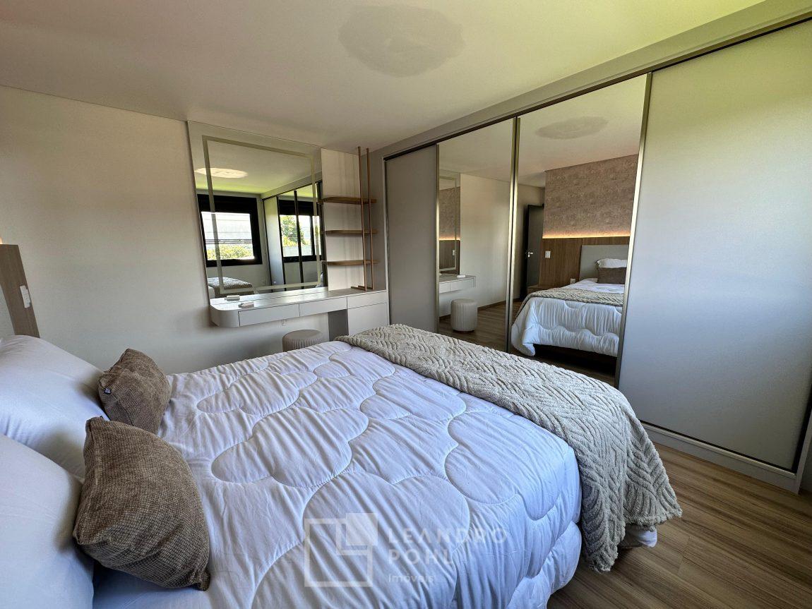 Casa plana, com 3 dormitórios sendo 1 suíte, sala com pé direito alto e ampla lareira, lavabo, cozinha e sala conjugadas, área de serviço separada, SEMIMOBILIADA, varanda, piscina, gesso, suíte, pátio com piscina, permanece mobiliada conforme imagens, persianas automatizadas, gás central, espera para split, fechadura eletronica, garagem para dois carros, estuda trocas sob análise, casa em condomínio fechado com infraestrutura e segurança.