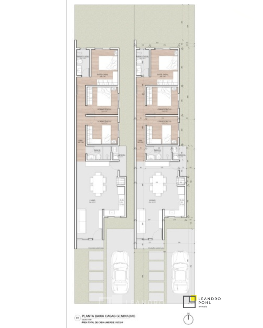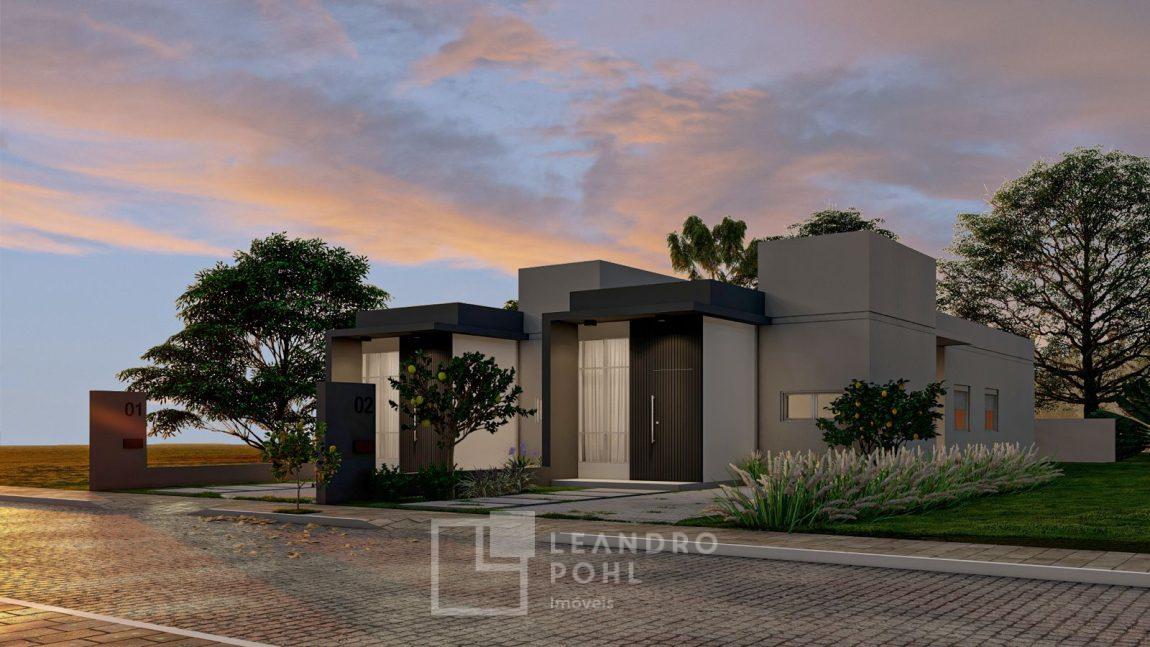 Casa 3 dormitórios com suíte, plana, espera para ar condicionado, aberturas de alumínio, rebaixo em gesso, laminado e porcelanato.