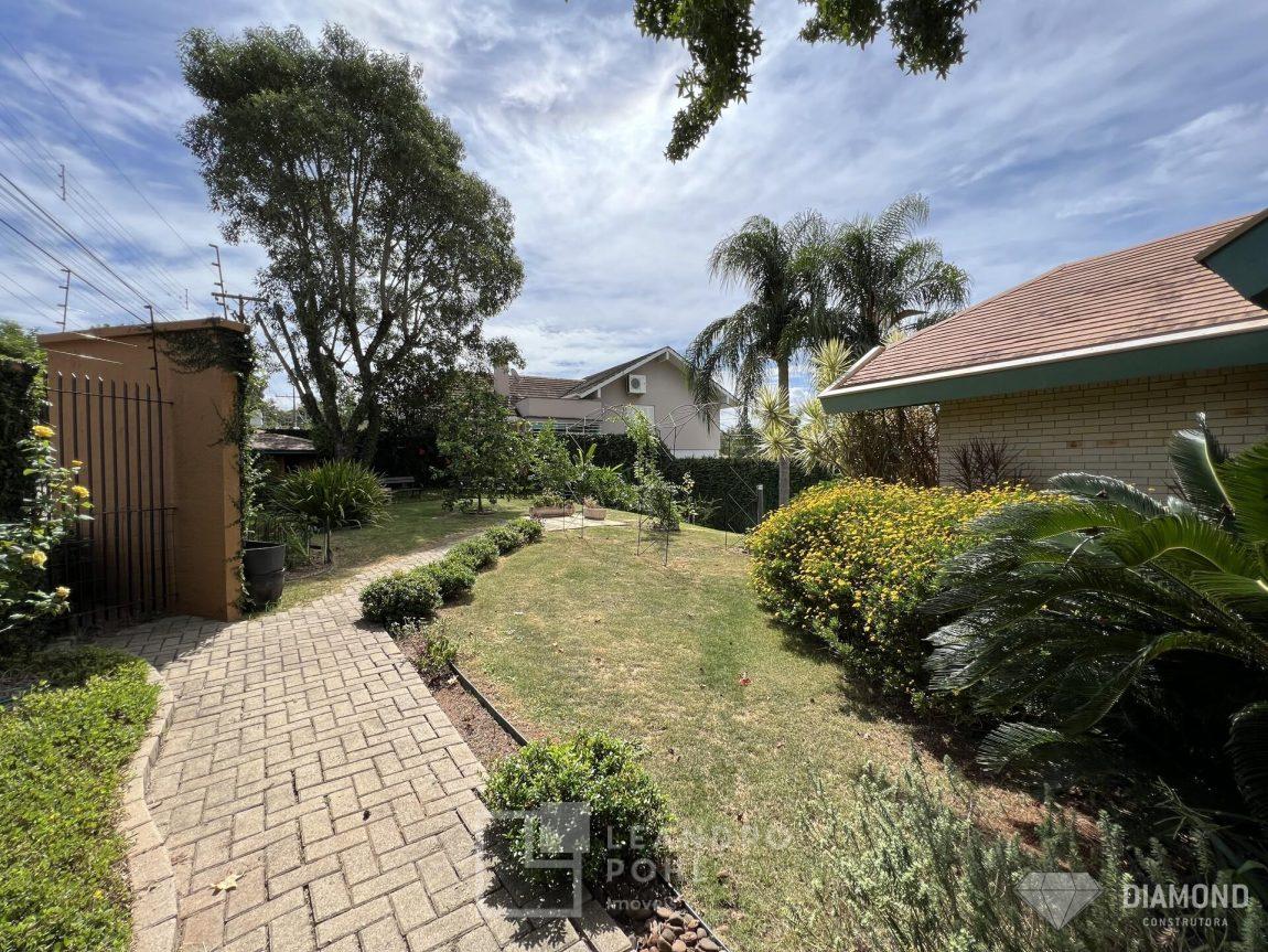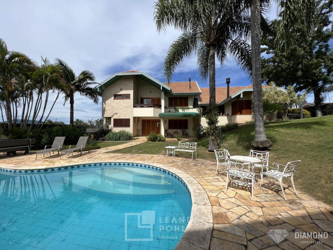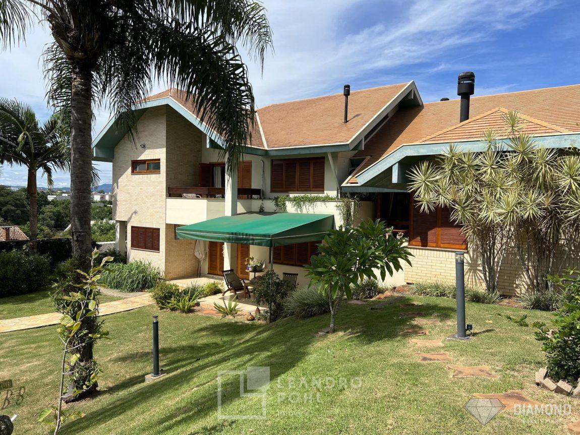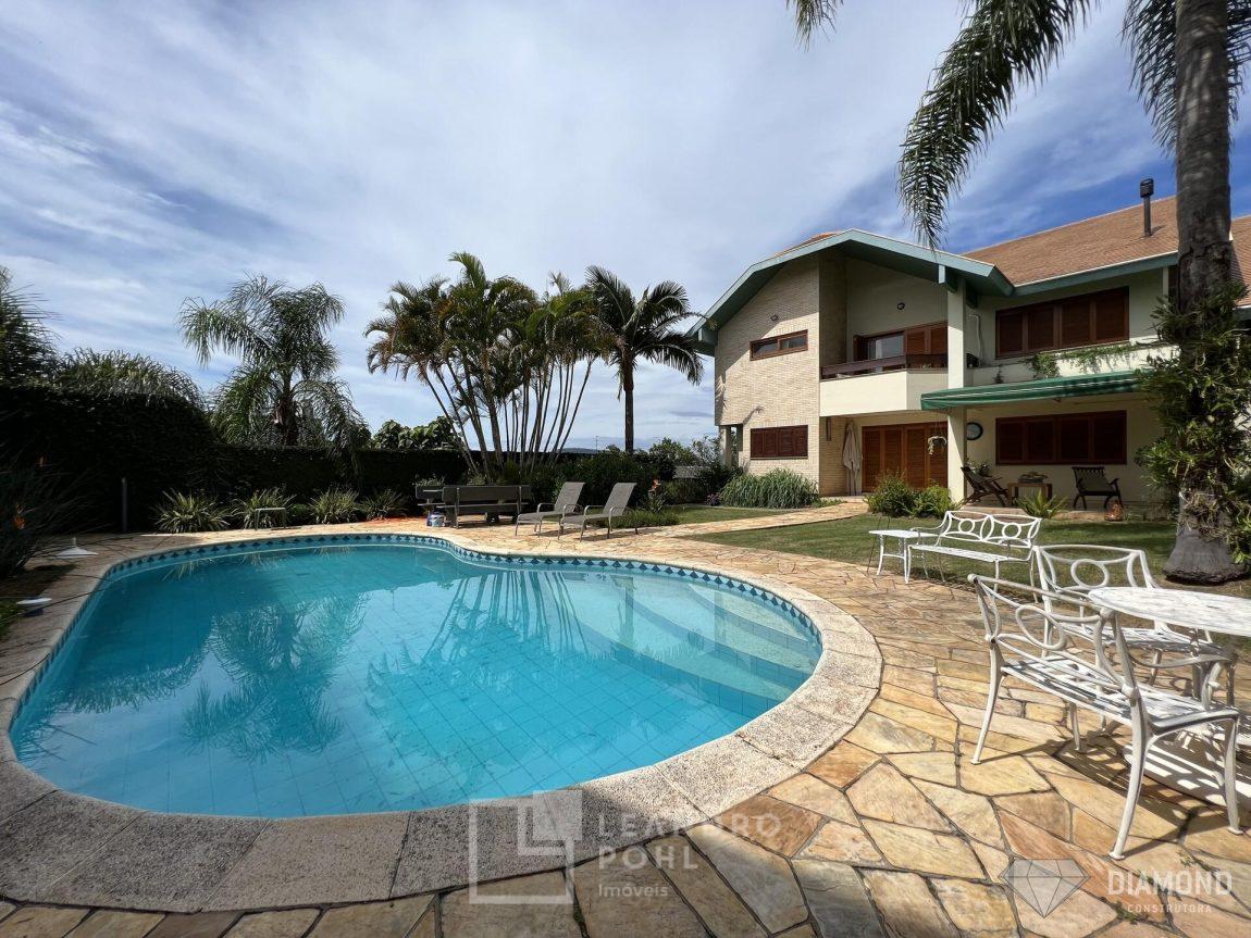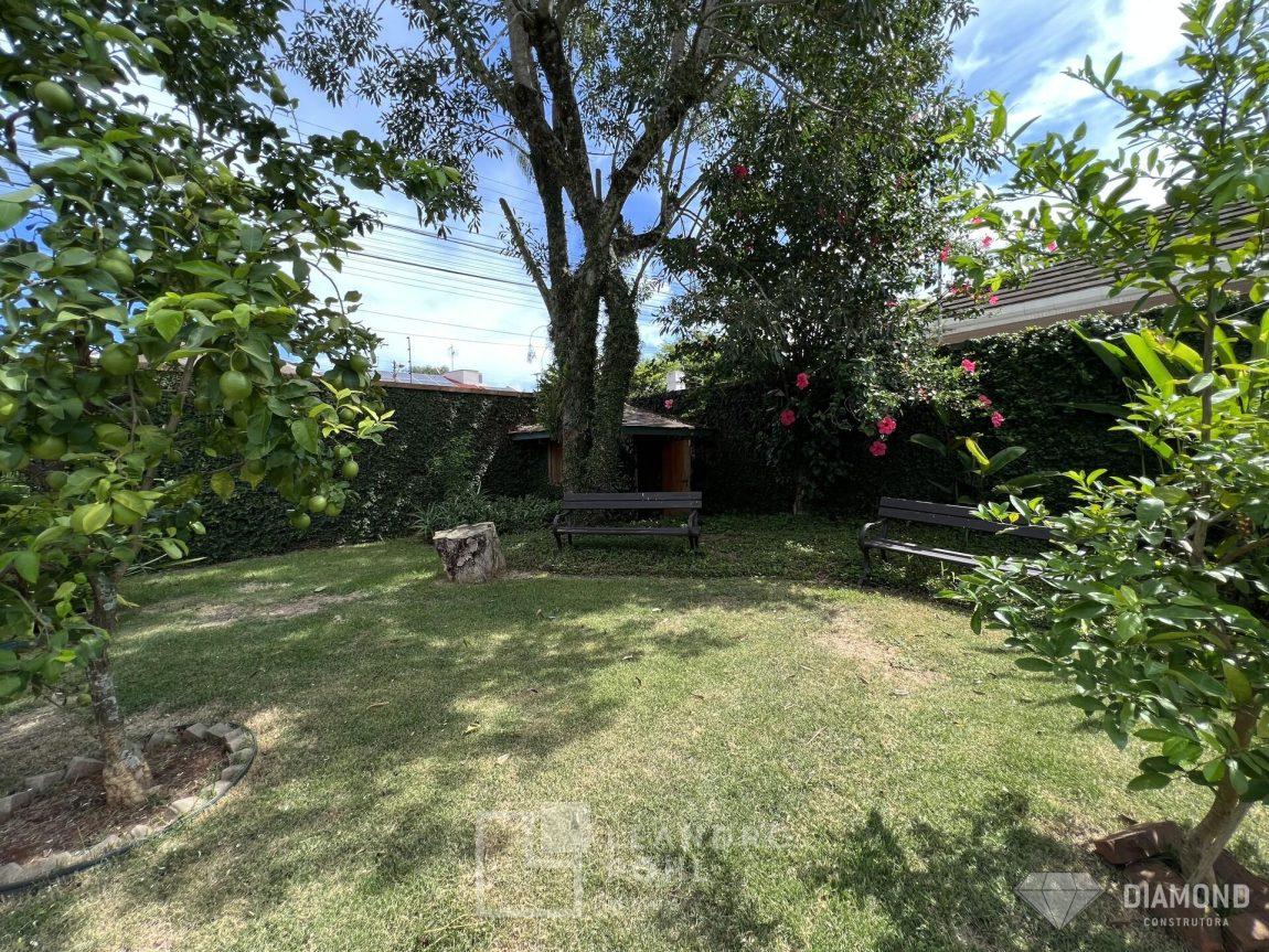Casa de alvenaria com dois pavimentos; 3 dormitórios, sendo 3 suítes, 4 vagas de garagem, Churrasqueira, adega, lareira, aquecimento solar, piscina, terreno com 1.080m², amplo pátio com árvores frutíferas;