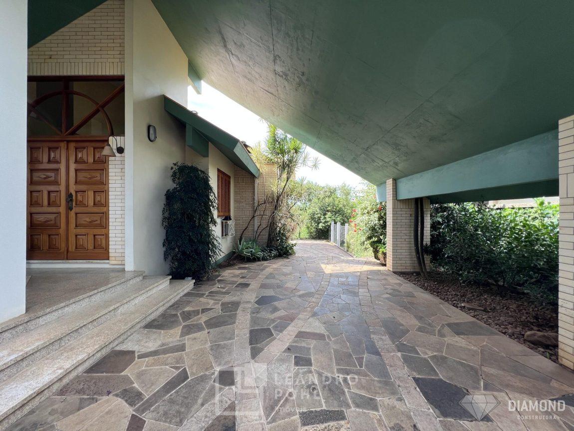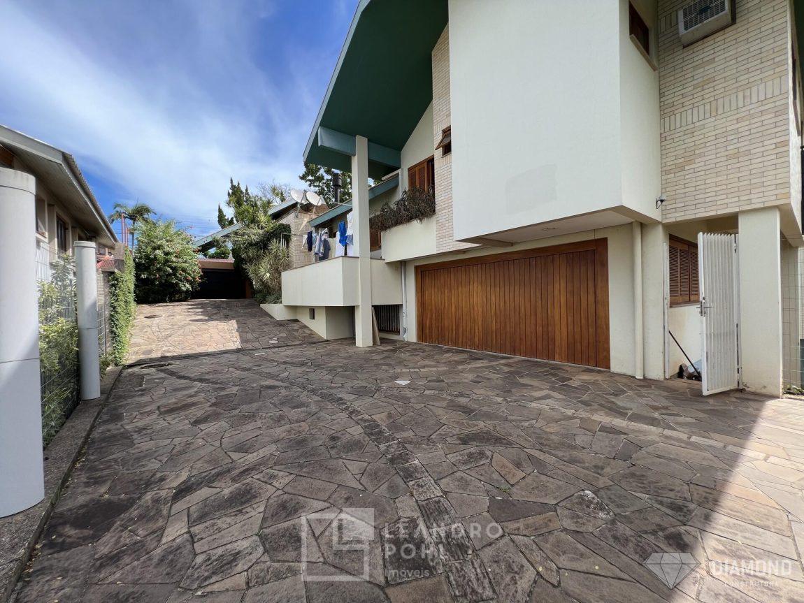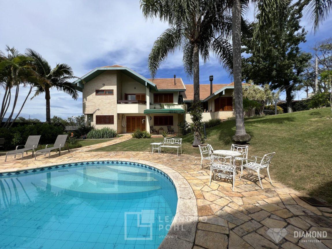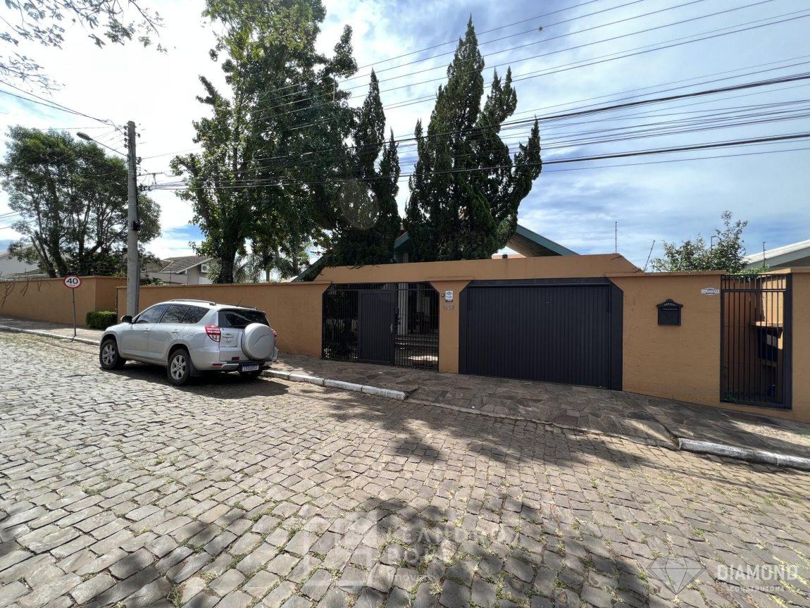 Casa de alvenaria com dois pavimentos; 3 dormitórios, sendo 3 suítes, 4 vagas de garagem, Churrasqueira, adega, lareira, aquecimento solar, piscina, terreno com 1.080m², amplo pátio com árvores frutíferas;