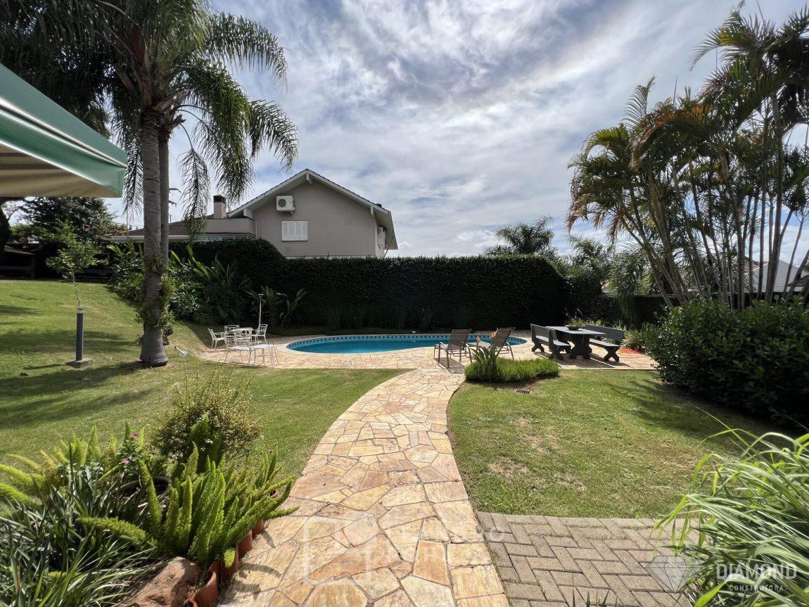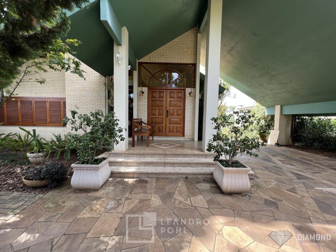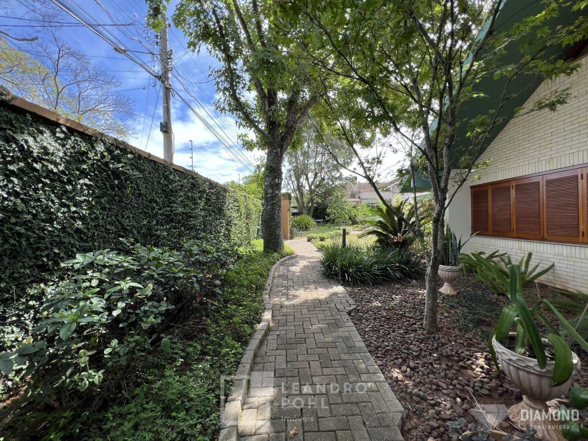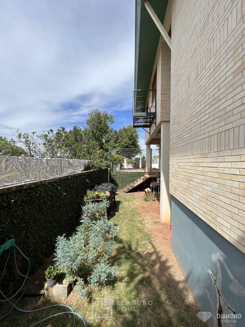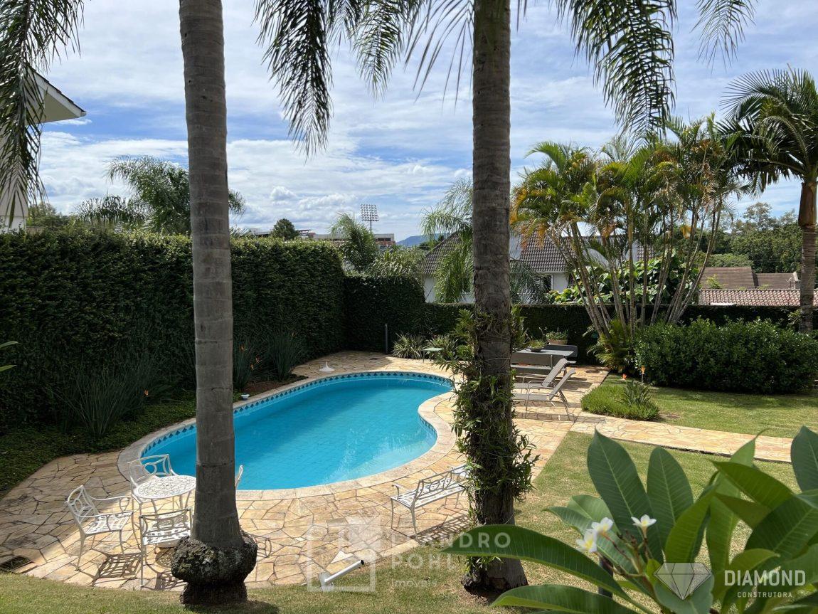 Casa de alvenaria com dois pavimentos; 3 dormitórios, sendo 3 suítes, 4 vagas de garagem, Churrasqueira, adega, lareira, aquecimento solar, piscina, terreno com 1.080m², amplo pátio com árvores frutíferas;