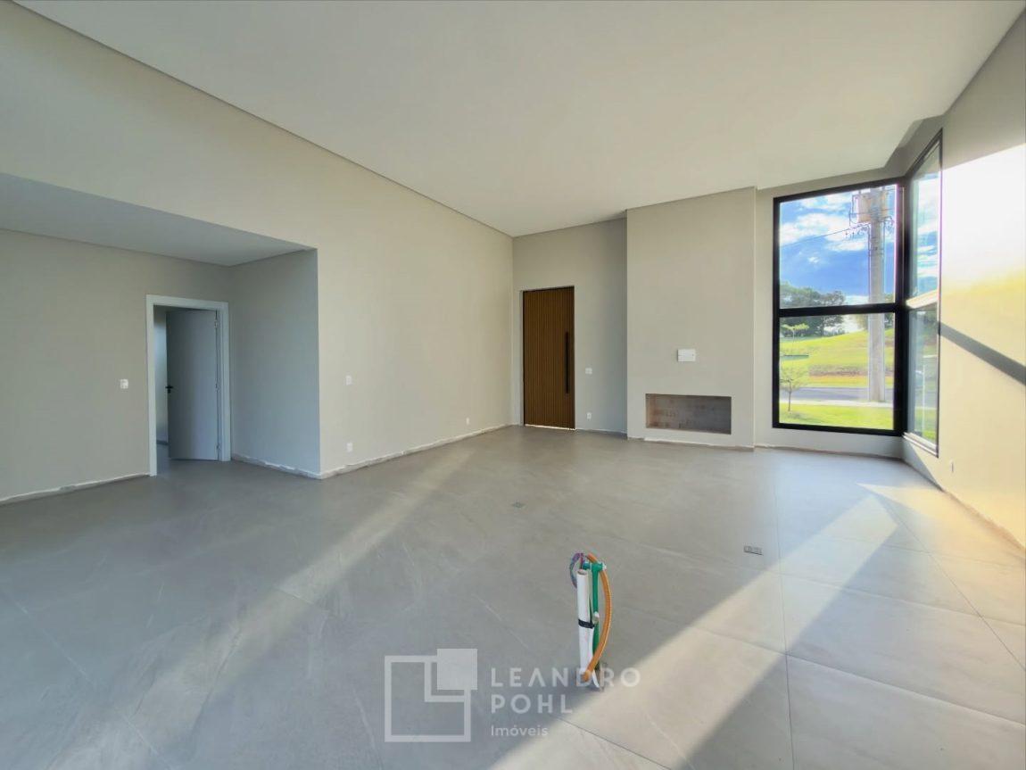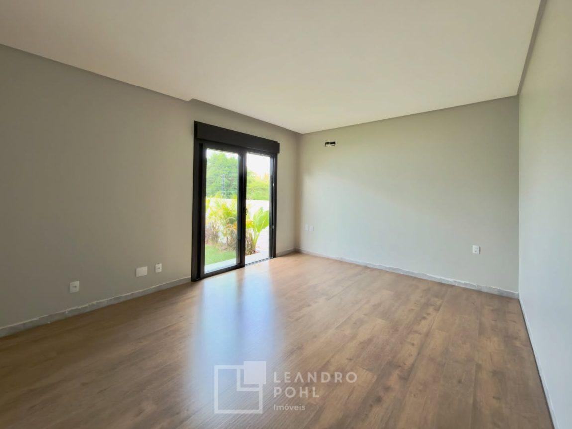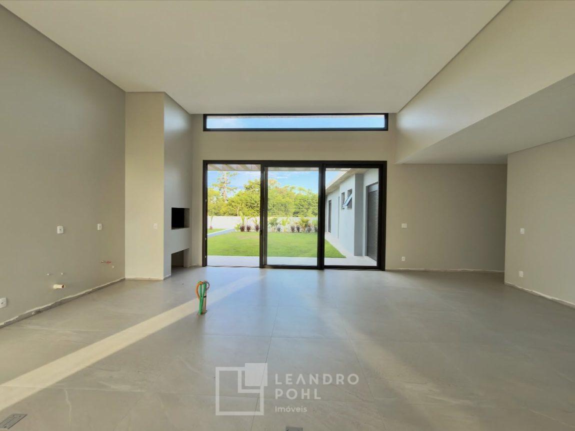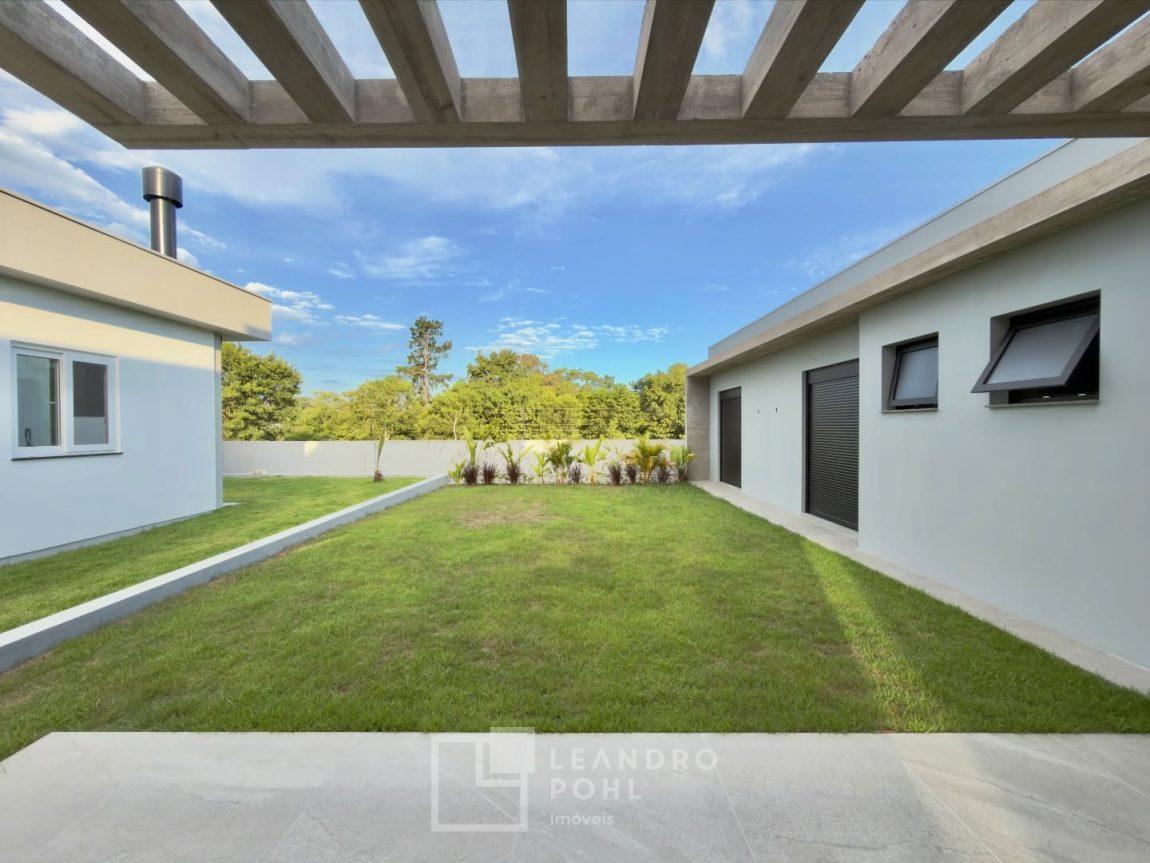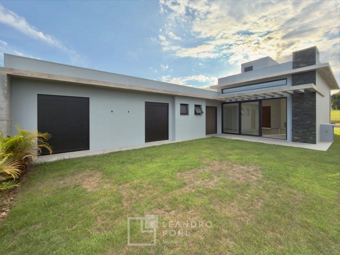 Casa com 3 suítes, pé direito duplo na área social, planta no formato em L, possibilitando pátio interno e fachada dos quartos voltada para sol da manhã, sistema de aquecimento solar de água, espera para piscina, pisos Portinari em formatos grandes e laminado nos quartos.
