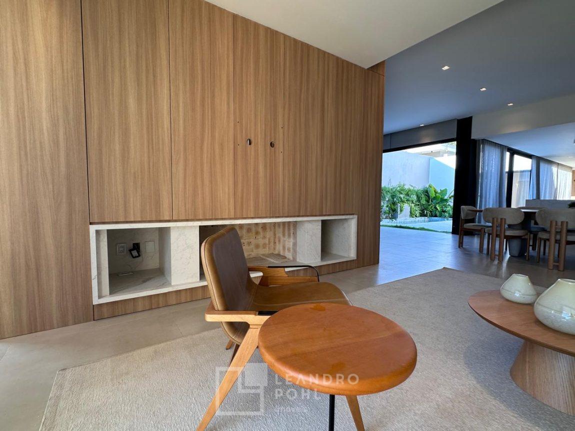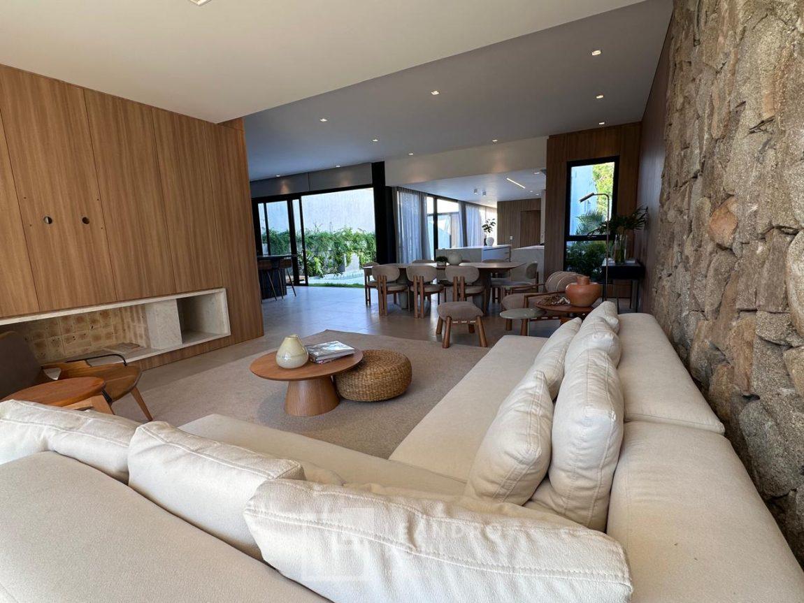 Casa com 3 suítes, plana, 4 banheiros, plana e semi-mobiliada, piscina de alvenaria, pé direito alto, espera para automação, gás central, espera para split, persianas motorizadas nas suítes, rouparia, área de serviço separada, fechadura eletrônica, um lar perfeito para a vida em família e receber bem os amigos, localizada em área nobre no Bairro Carneiros.