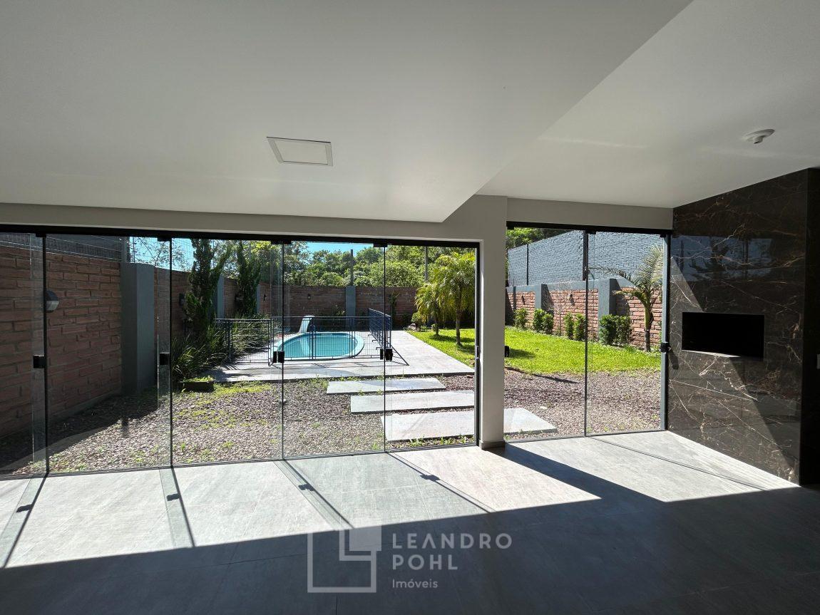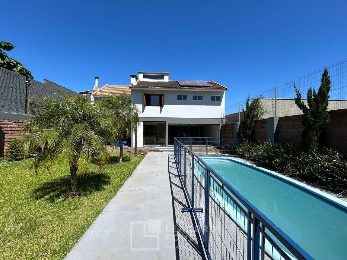 Casa com 3 dormitórios, sendo 2 suítes, banheiro social e lavabo, piscina com aquecimento, energia fotovoltaica, semi-mobiliada, com área construída de 179,64 m2, em terreno de 457, 76 m2.