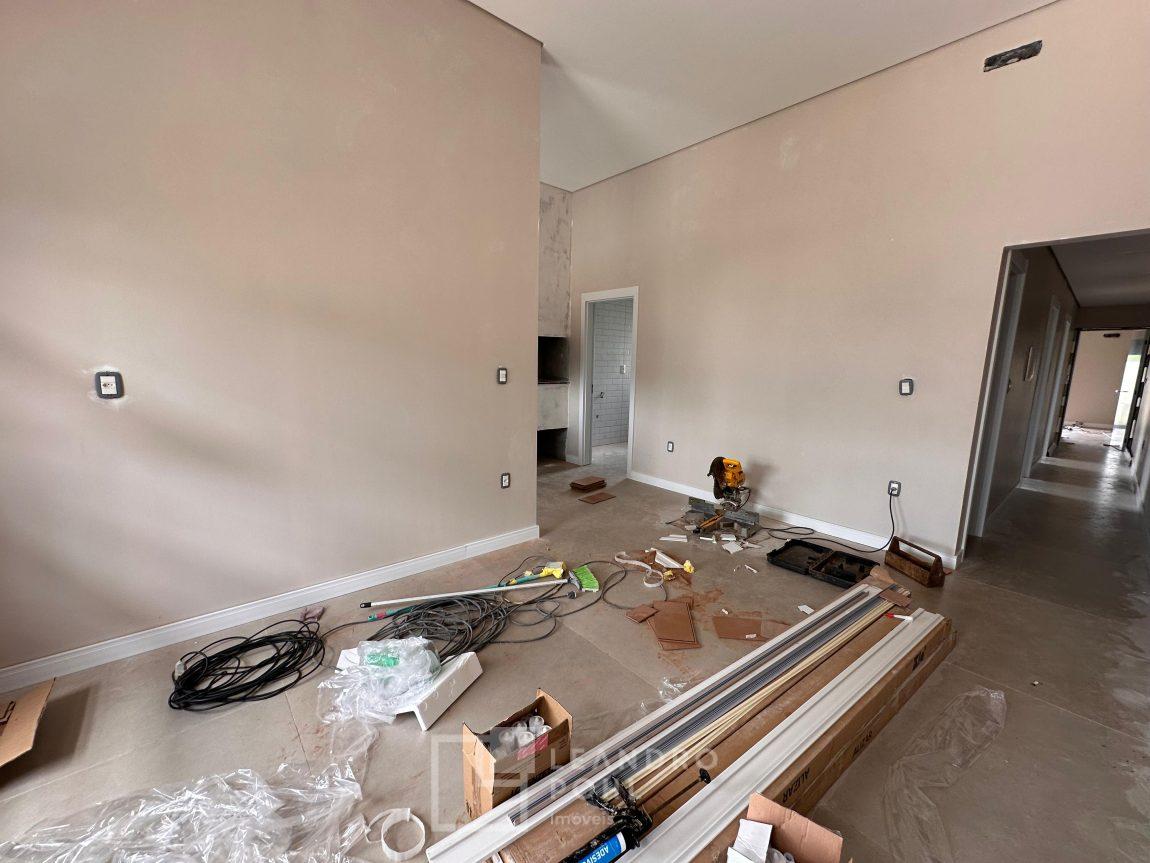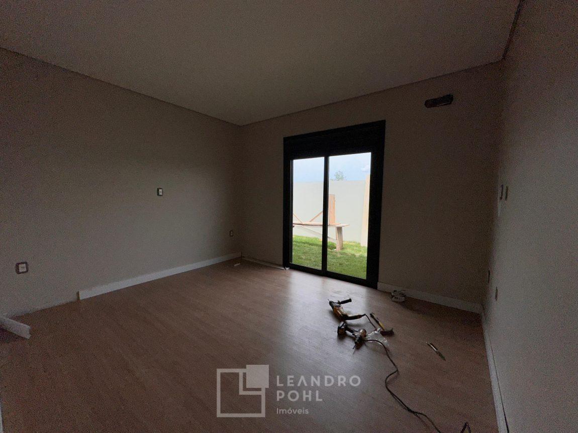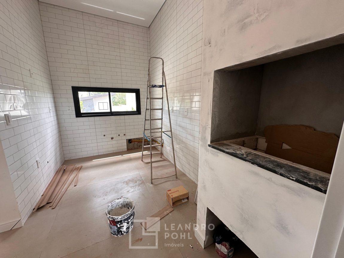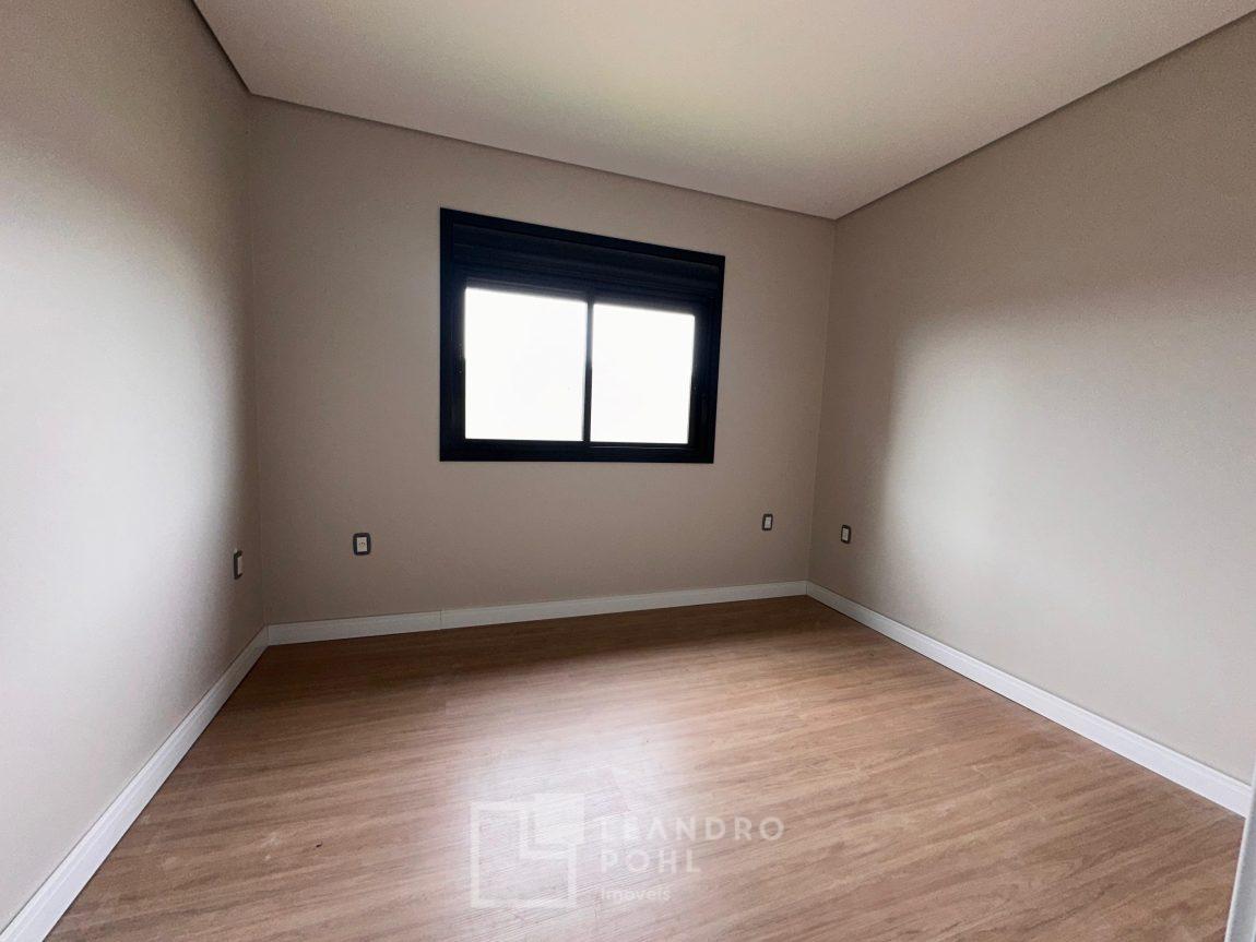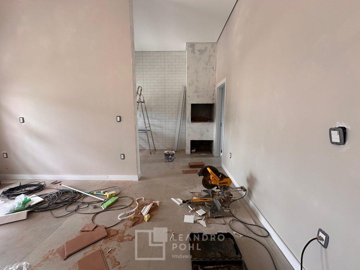 Casa geminada plana, com 3 dormitórios, sendo 1 suíte , banheiro social, sala de estar e jantar integradas com pé direito alto, além de uma cozinha moderna, lavanderia separada, churrasqueira, pátio na frente e nos fundos, vaga de garagem para 2 carros e pergolado descoberto,