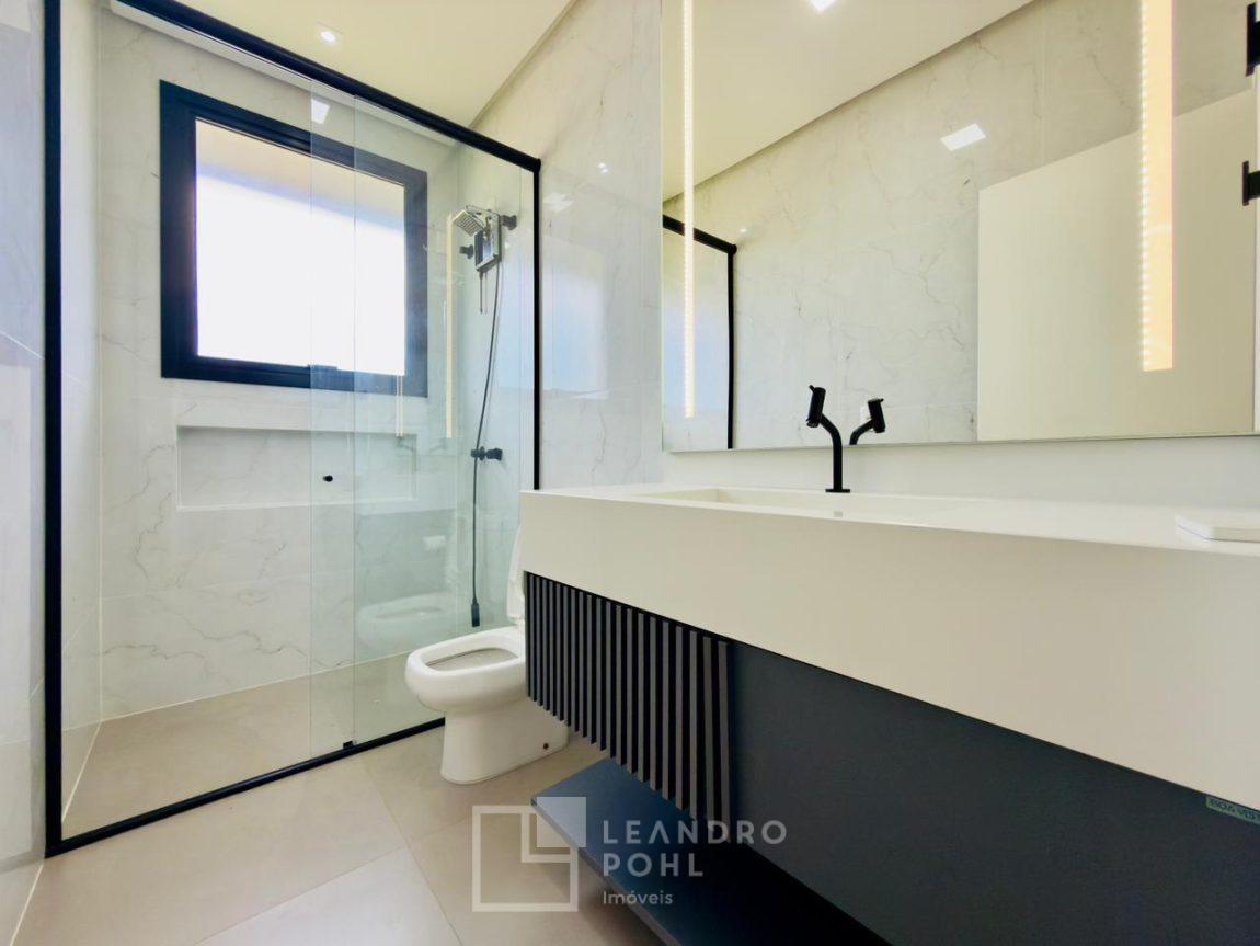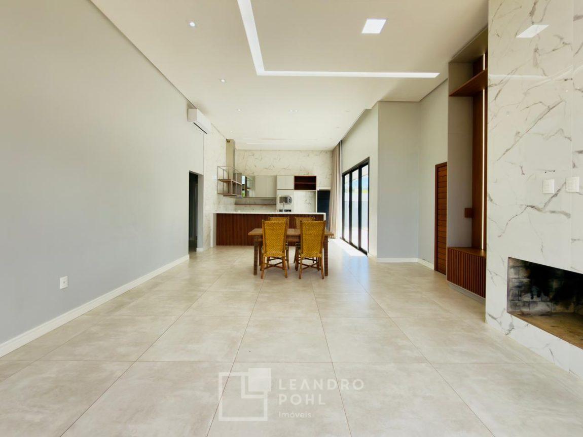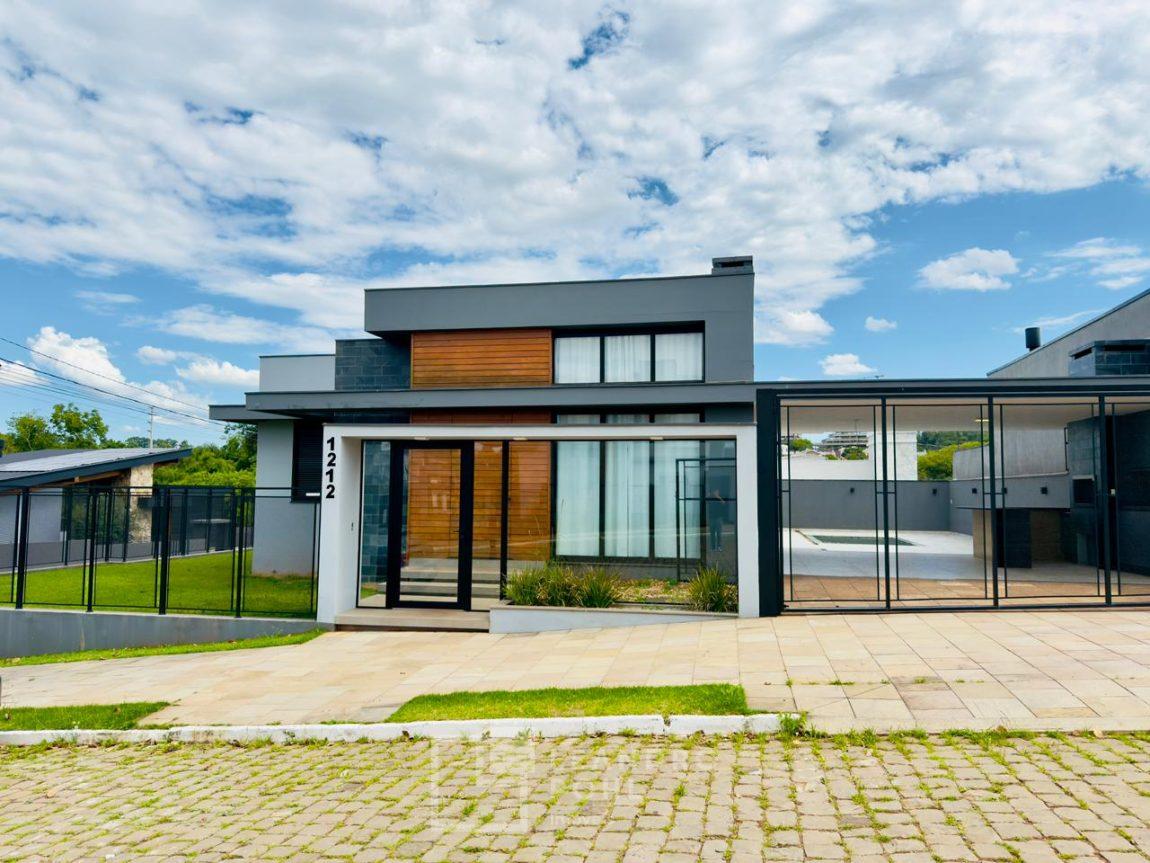 Casa plana, semi-mobiliada, com 3 dormitórios, sendo 1 suíte, lareira, cozinha ampla, área de serviço, closet, lavabo, 2 vagas de garagem, portão eletrônico, piscina, churrasqueira, casa de esquina com pé direito alto, permanecem nela; ar condicionado, iluminação/luminárias e móveis planejados.