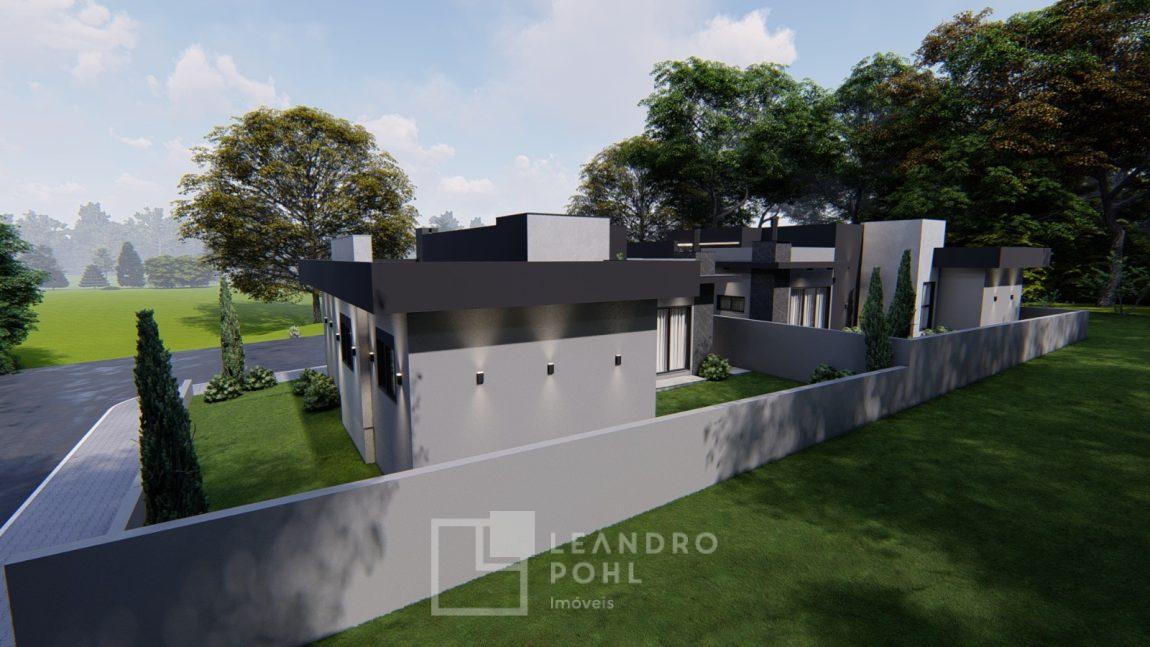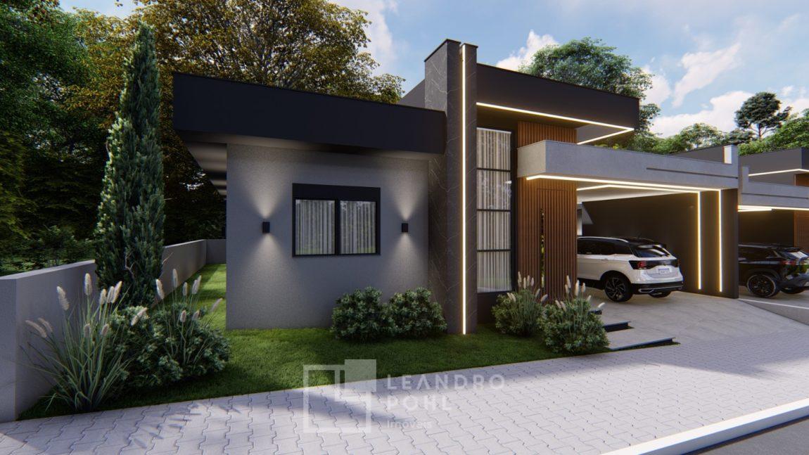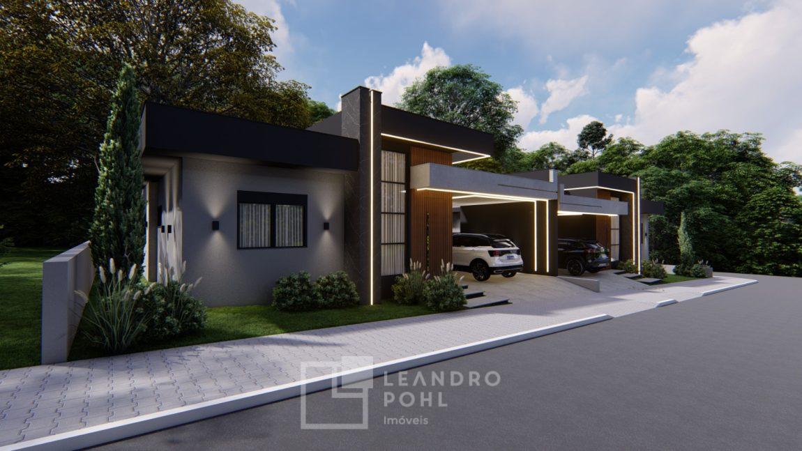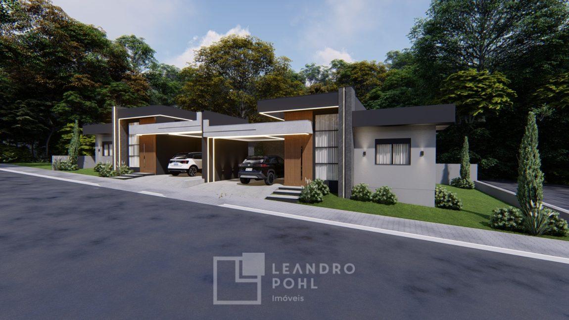 Apenas 2 casas contendo 3 dormitórios, casa individual com garagem, Sala de estar, Sala de jantar, Churrasqueira (interna), Cozinha, Lavanderia (interna), 1 banheiro social, 02 vaga de garagem lado a lado, Pé direito alto, Amplo pátio, Espera para água quente, Esperas de ar condicionado, Esperas de Gás, Teto com gesso liso, Piso: Porcelanato em tons neutros., Laminado nos quartos., azulejo Aplicado no banheiro, cozinha e lavanderia, Portas: Internas Branca de Madeira, Banheiro com nicho no box e louças brancas (vaso sanitário), esquadrias: Alumínio, conforme imagem em projeto.