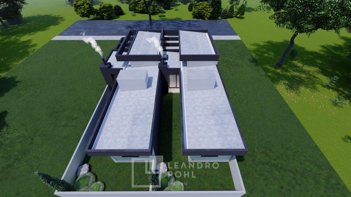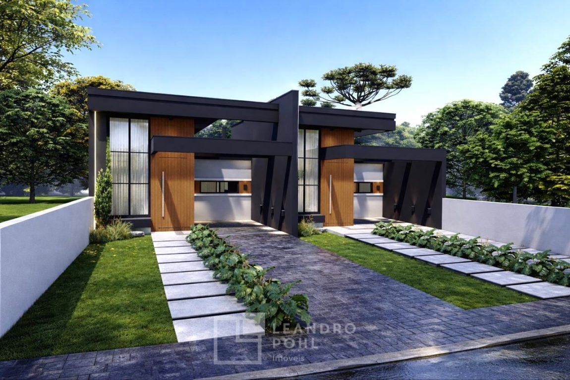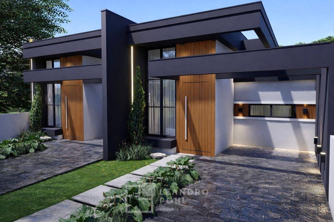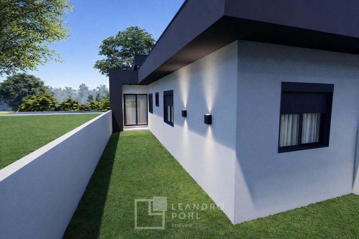Casa geminada com 70 m², composta por 3 dormitórios, Sala de estar, Sala de jantar, Churrasqueira externa, Cozinha, Lavanderia, 1 banheiro social, Garagem (possibilidade de 02 veículos um atrás do outro), Pé direito alto, Amplo pátio, divisas: Mureta na frente e fundos muro 1,6m, Frente: Gramado., Fundo: Coberto com brita., Trilhos: Concreto na rampa para o carro e pisantes até a entrada