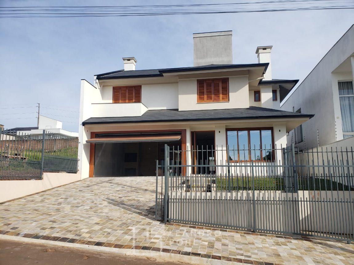 * Linda residencia com 3 suítes, sendo uma suíte com closet e sacada, acabamentos de alto padrão, toda cercada e murada, amplo pátio nos fundos, telhas shingle, aberturas em madeira natural, espera para lareira, parte inferior toda rebaixada em gesso,