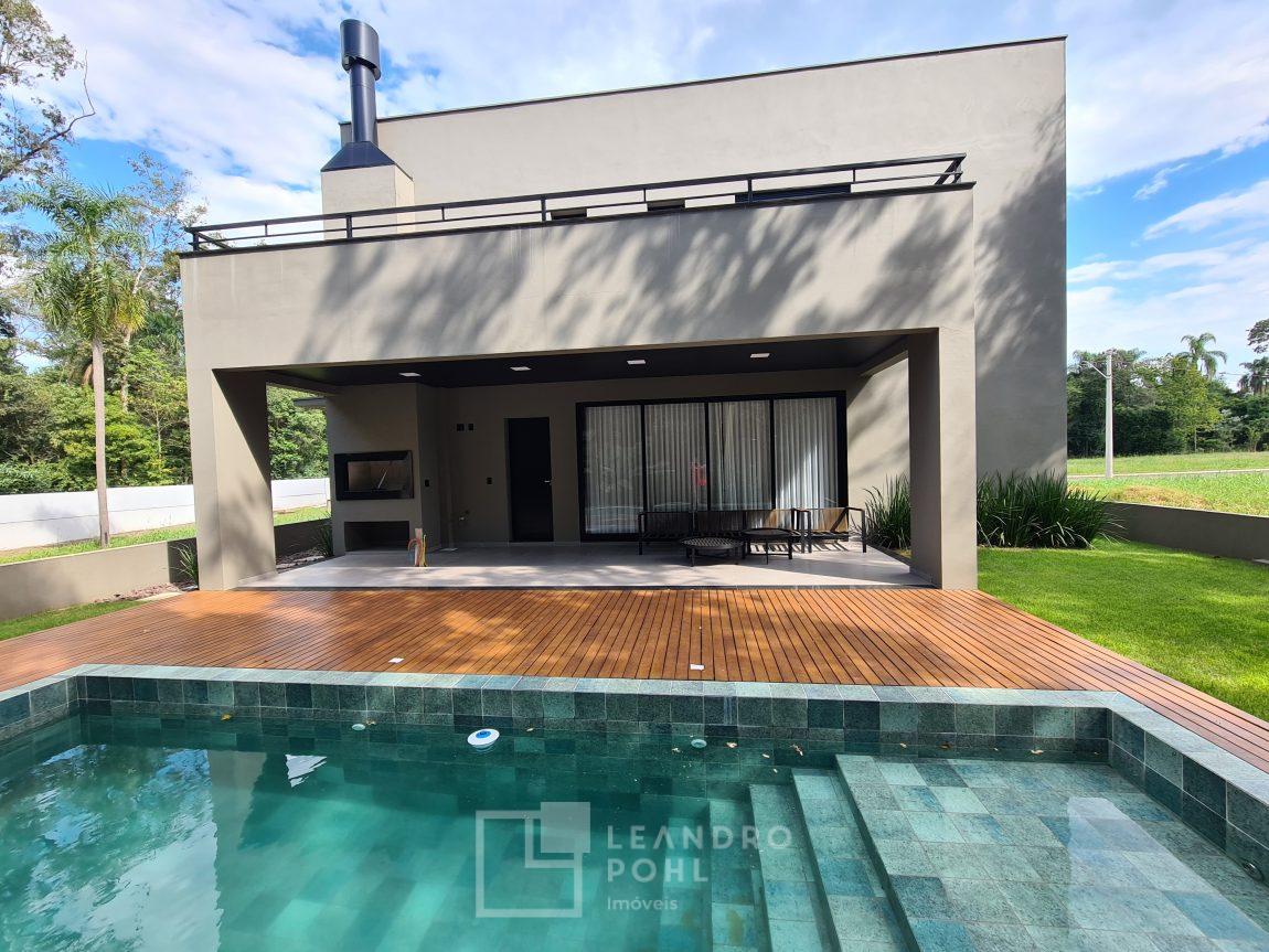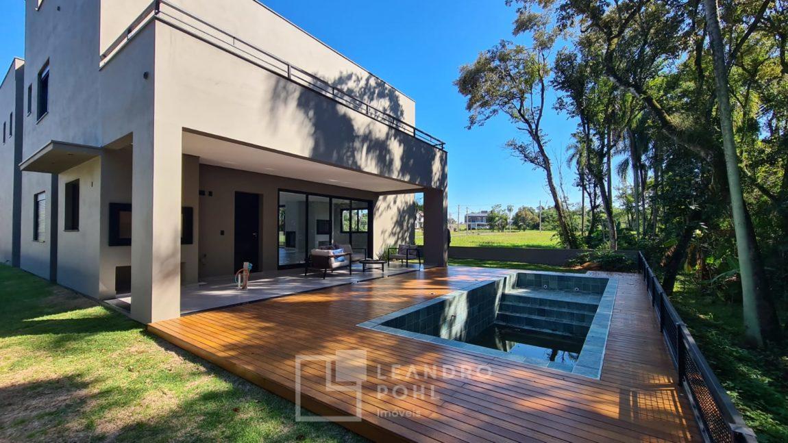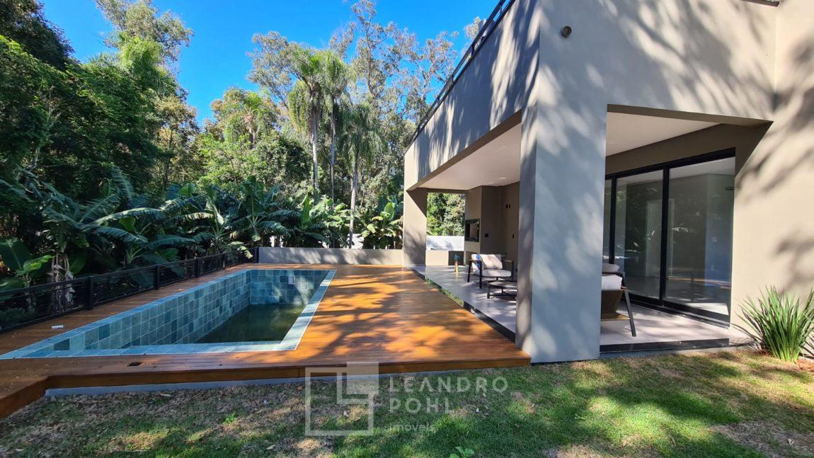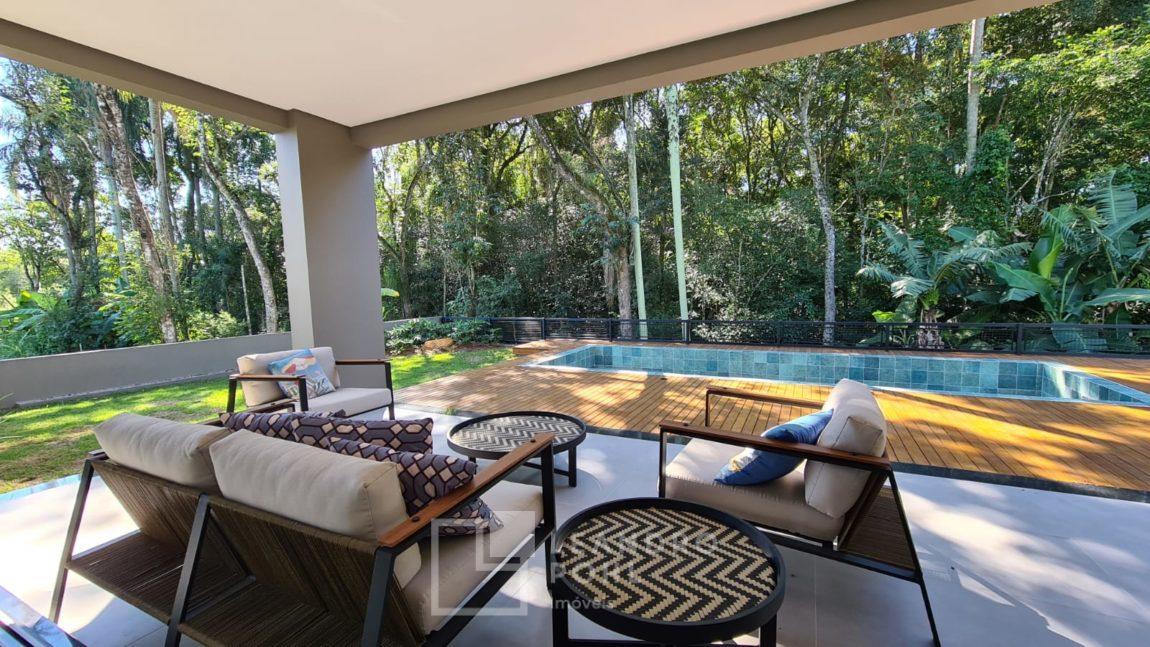 Linda casa com 4 suítes, todas com closet, sendo uma suíte térrea, linda área gourmet junto a piscina e a beira de uma área verde maravilhosa,