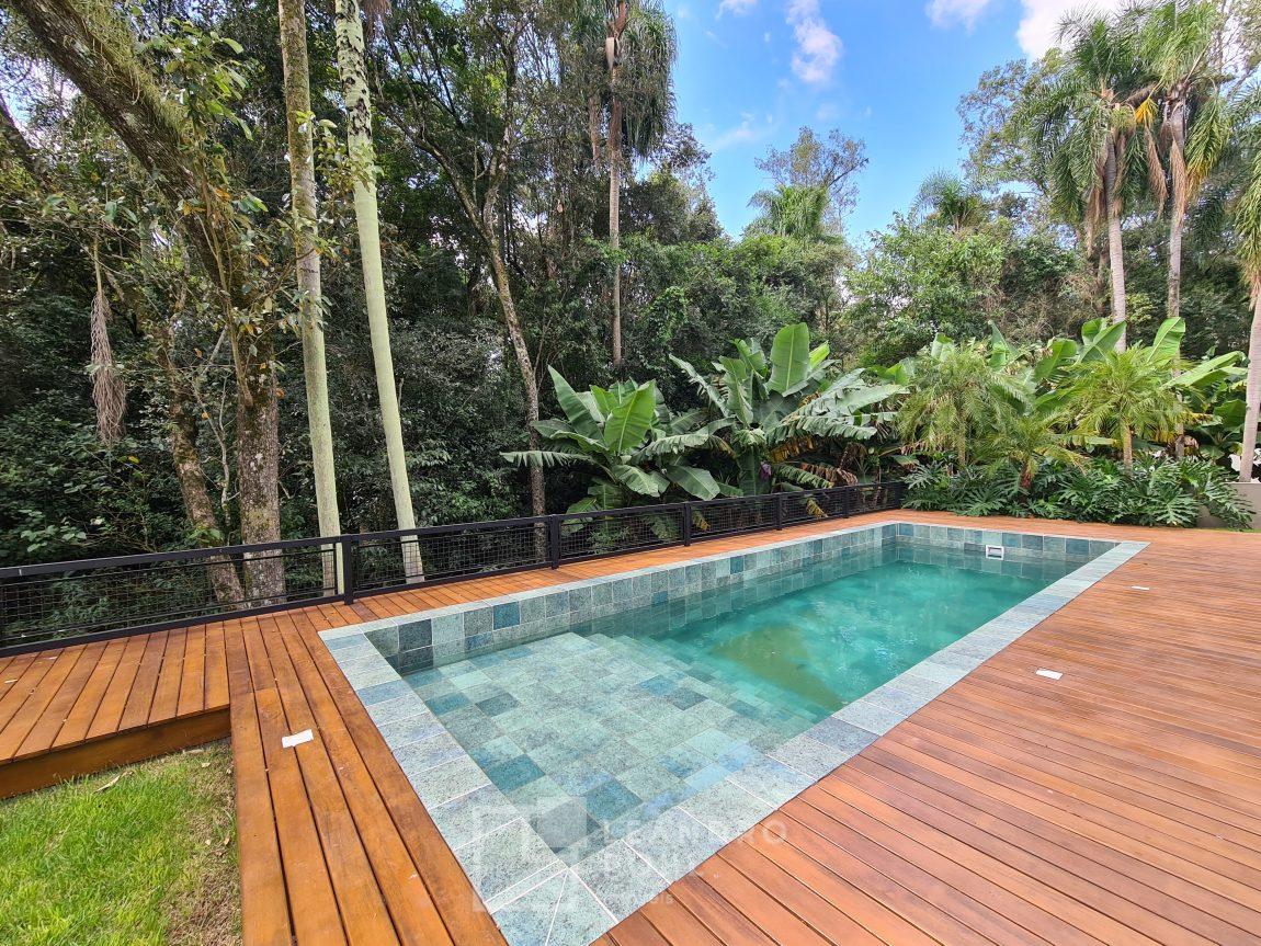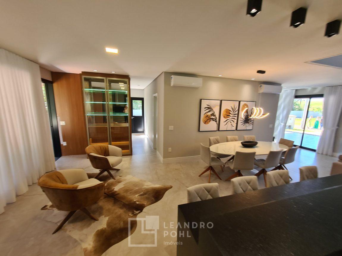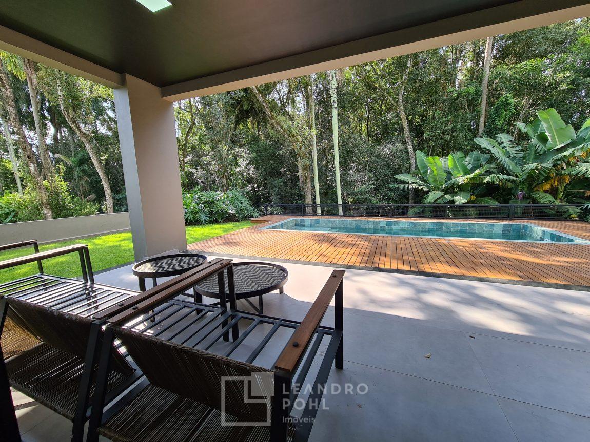 Linda casa com 4 suítes, todas com closet, sendo uma suíte térrea, linda área gourmet junto a piscina e a beira de uma área verde maravilhosa,