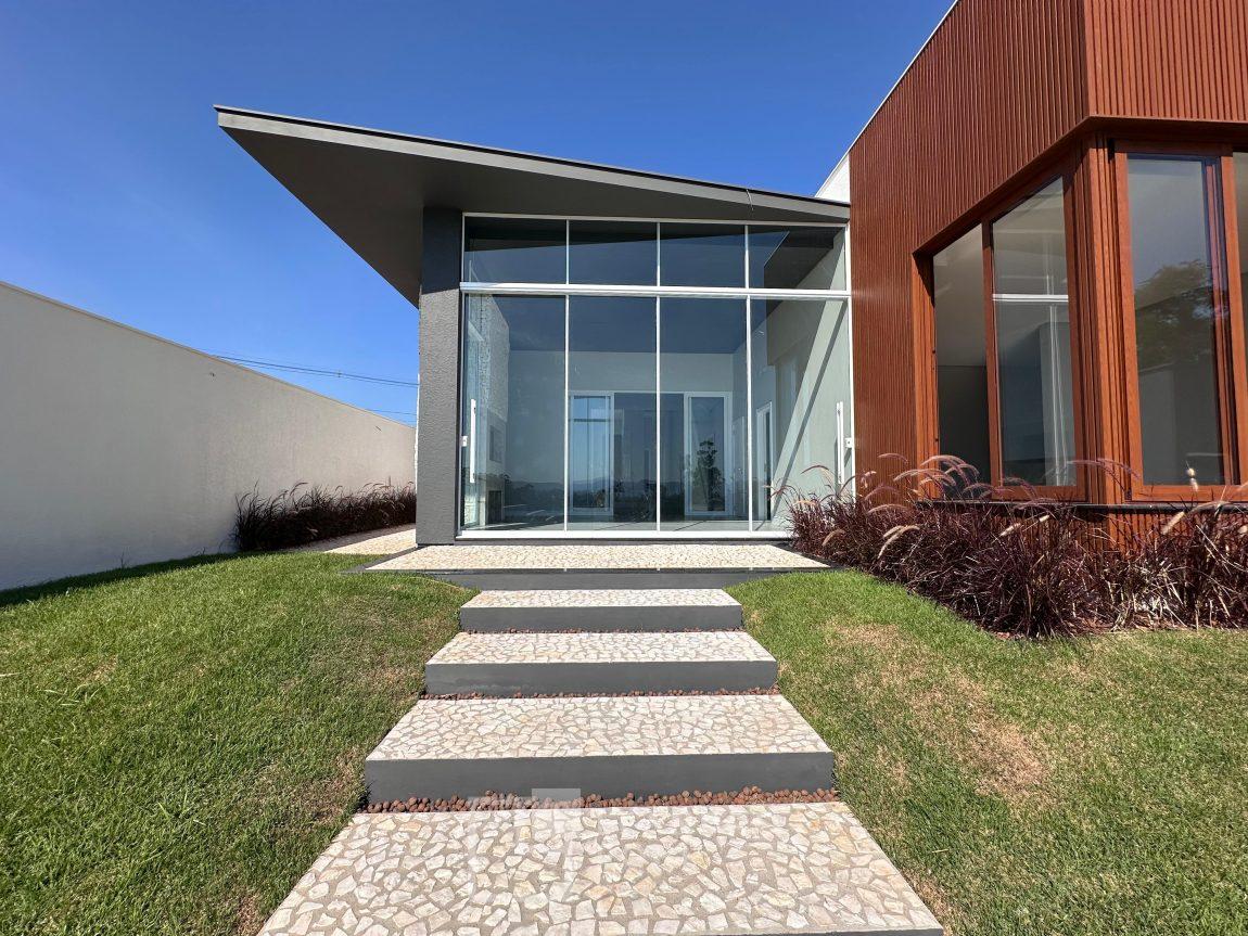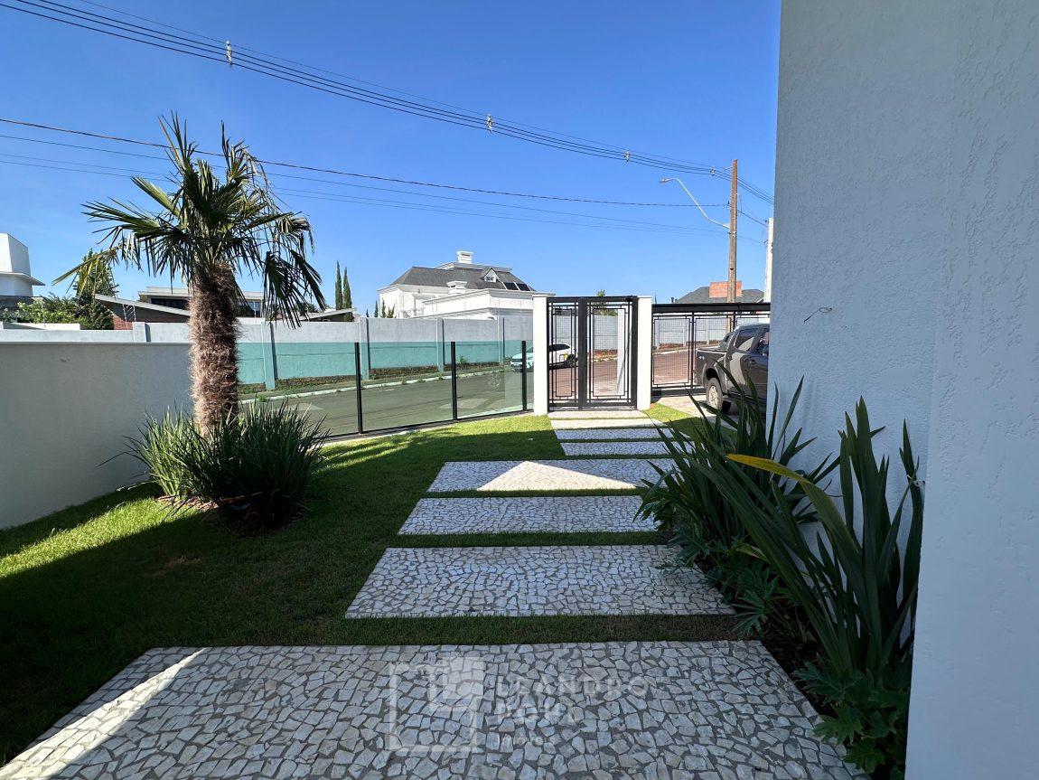 Um verdadeiro espetáculo de casa, plana, funcional e de alto padrão, com uma energia impar, em terreno de 1.116,23m2 com uma vista espetacular,300m2, despensa, 2 depositos, jardinagem completa conforme projeto, aberturas em alumínio linho gold, murada nas laterais e no fundo, cercada na frente, louças marca Deca, pisos e revestimentos grandes formatos, rebaixo em gesso, parcelamento direto com a construtora, feita toda em tijolo maciço, proporcionando um melhor isolamento térmico e acústico, Espera para água quente, energia fotovoltaica, aquecimento solar, automação, área para quadra de esportes privativa