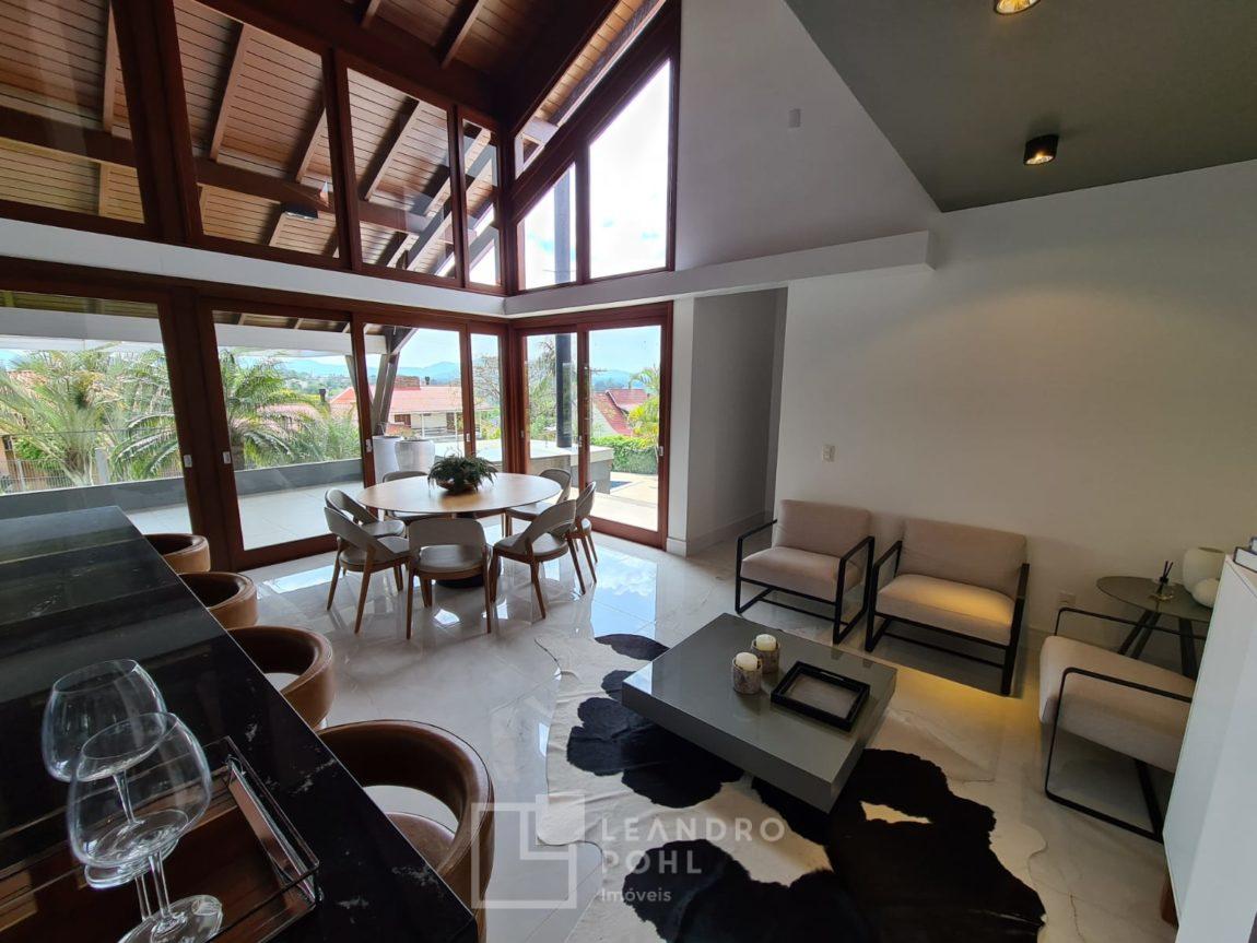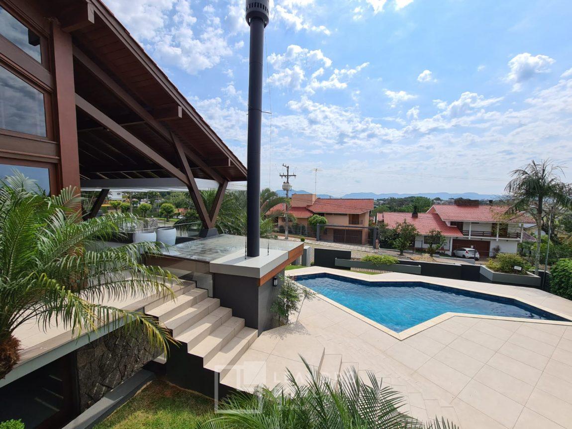 Casa diferenciada, alto padrão, semi mobiliada, muitos detalhes em madeira, com pé direito duplo, vidraças amplas, piso de taboão, lindo espaço gourmet com acesso a sacada, área de jogos ou um PUB particular com acesso a piscina, jardim de inverno com bastante luminosidade, salas amplas em ambiente integrado , com pé direito alto e acabamento em madeira, um charme acima do esperado, muita luz natural, parte externa com lindo jardim e piscina, espaço gourmet que encantam e proporcionam a família e amigos uma experiência única!!!!