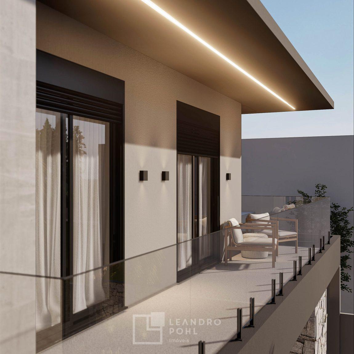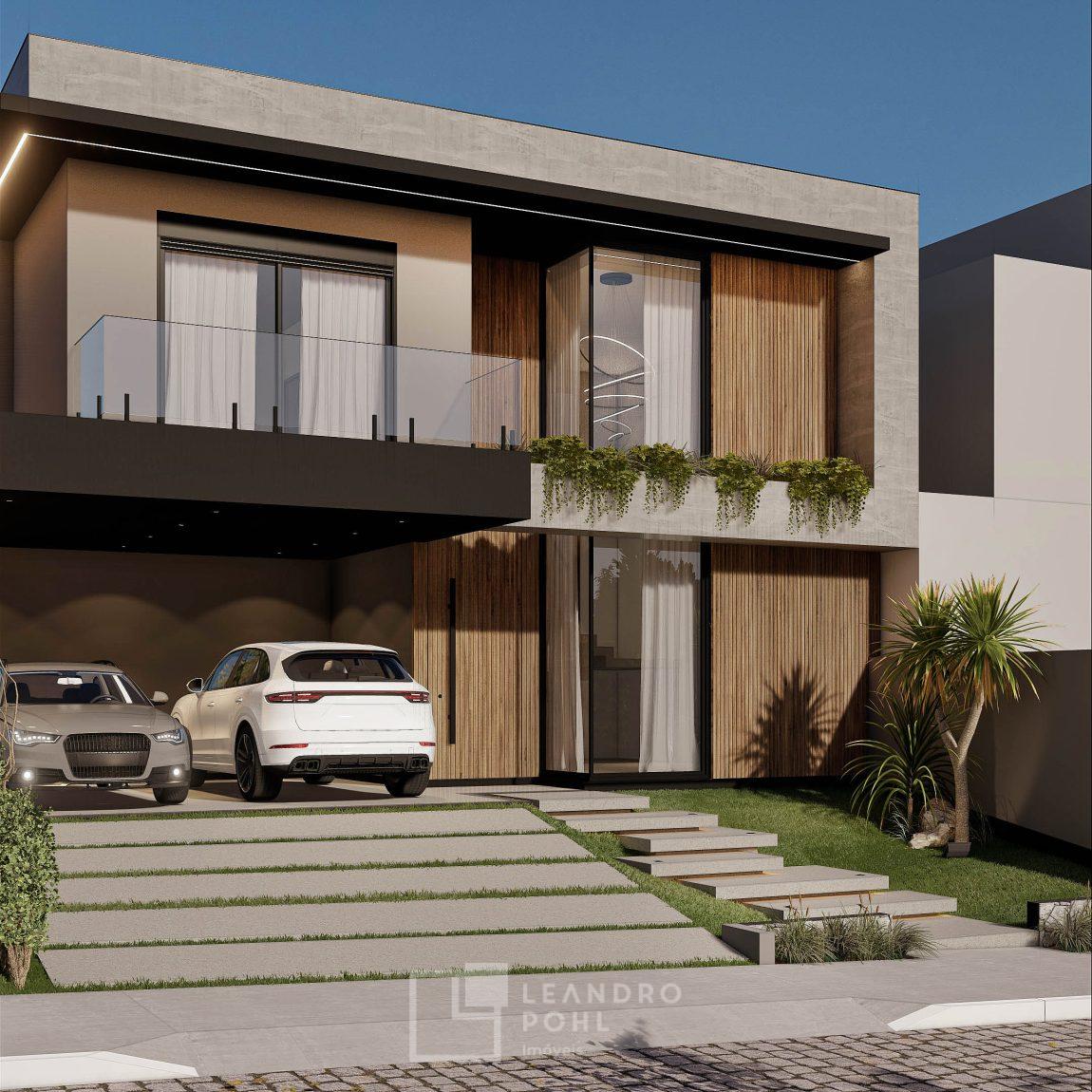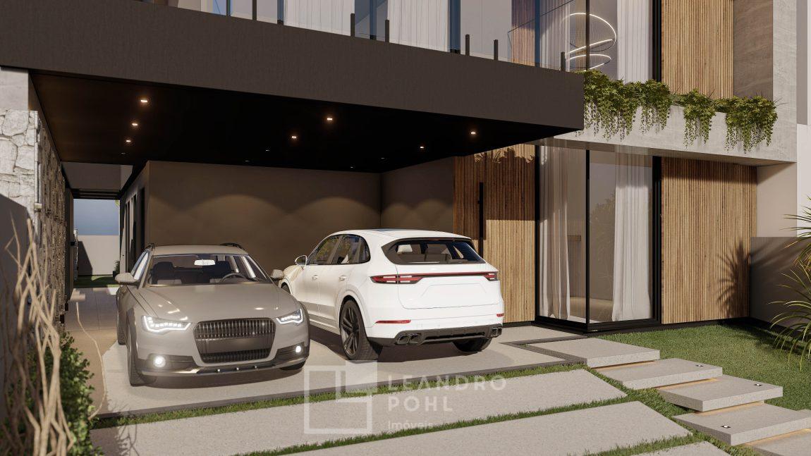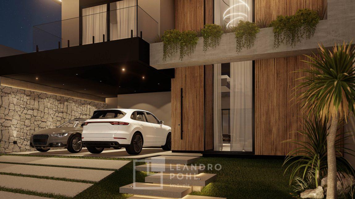 Com 04 suítes no pavimento superior, e 01 dormitório/office no térreo, espaço para home office, sala de estar com lareira, escada plissada, sala de jantar e cozinha integradas, ampla área gourmet com abertura para os fundos, lavanderia, depósito, espaço para armazenamento do gás de cozinha, banheiro social, lavabo, garagem aberta para 02 veículos com saída para os fundos, piscina em concreto com dimensões de 7,20x2,50m, pé direito duplo na sala de estar, dormitórios dos fundos com sacada. Revestimento em porcelanato e azulejos em tons neutros, laminado nos dormitórios do pavimento superior, esquadrias externas em alumínio preto, portas internas laqueadas, muros e cercas, acessos e rampa de garagem, massa corrida nas paredes, fita led da fachada, forro em gesso, esperas para automação, esperas para aquecimento.