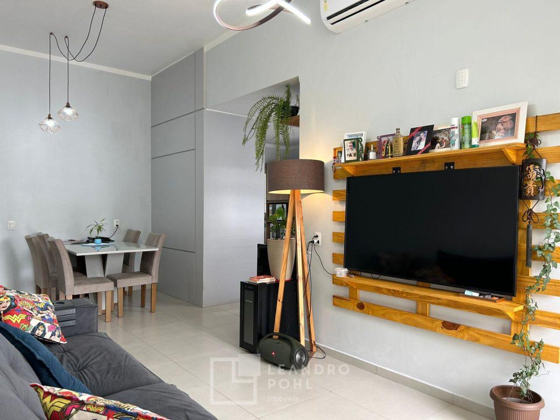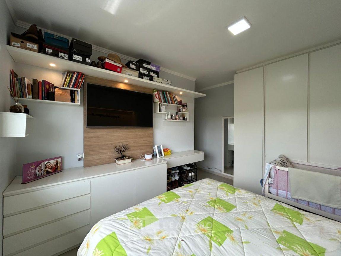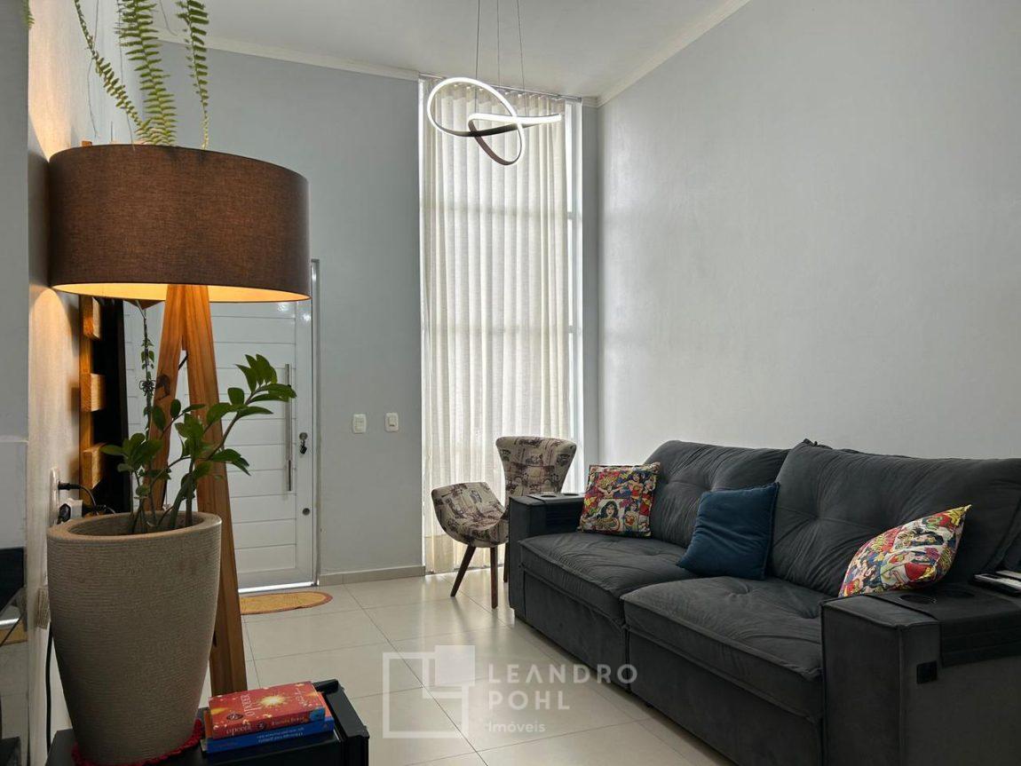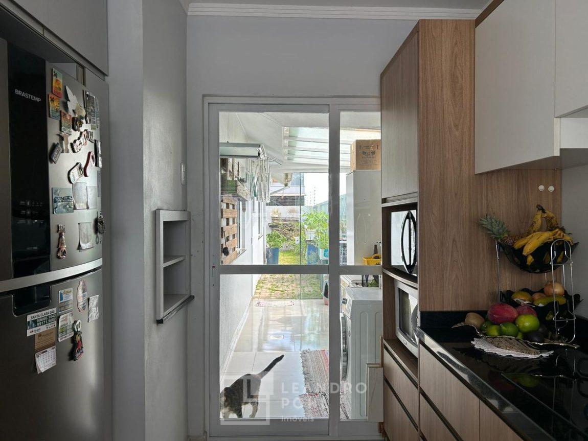 Geminada com 2 quartos com móveis sob medida, sendo 1 suite, banheiro social, sala, cozinha com móveis sob medida, lavanderia, pátio nos fundos de +- 45m², garagem fechada e não coberta pra 2 carros.