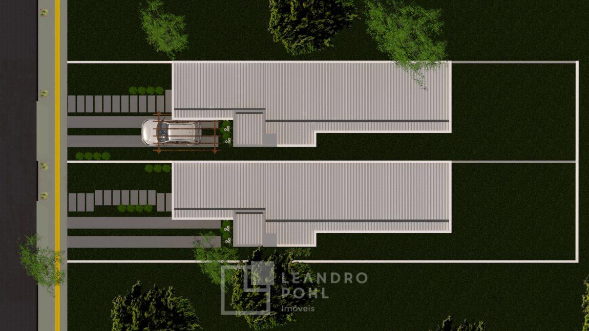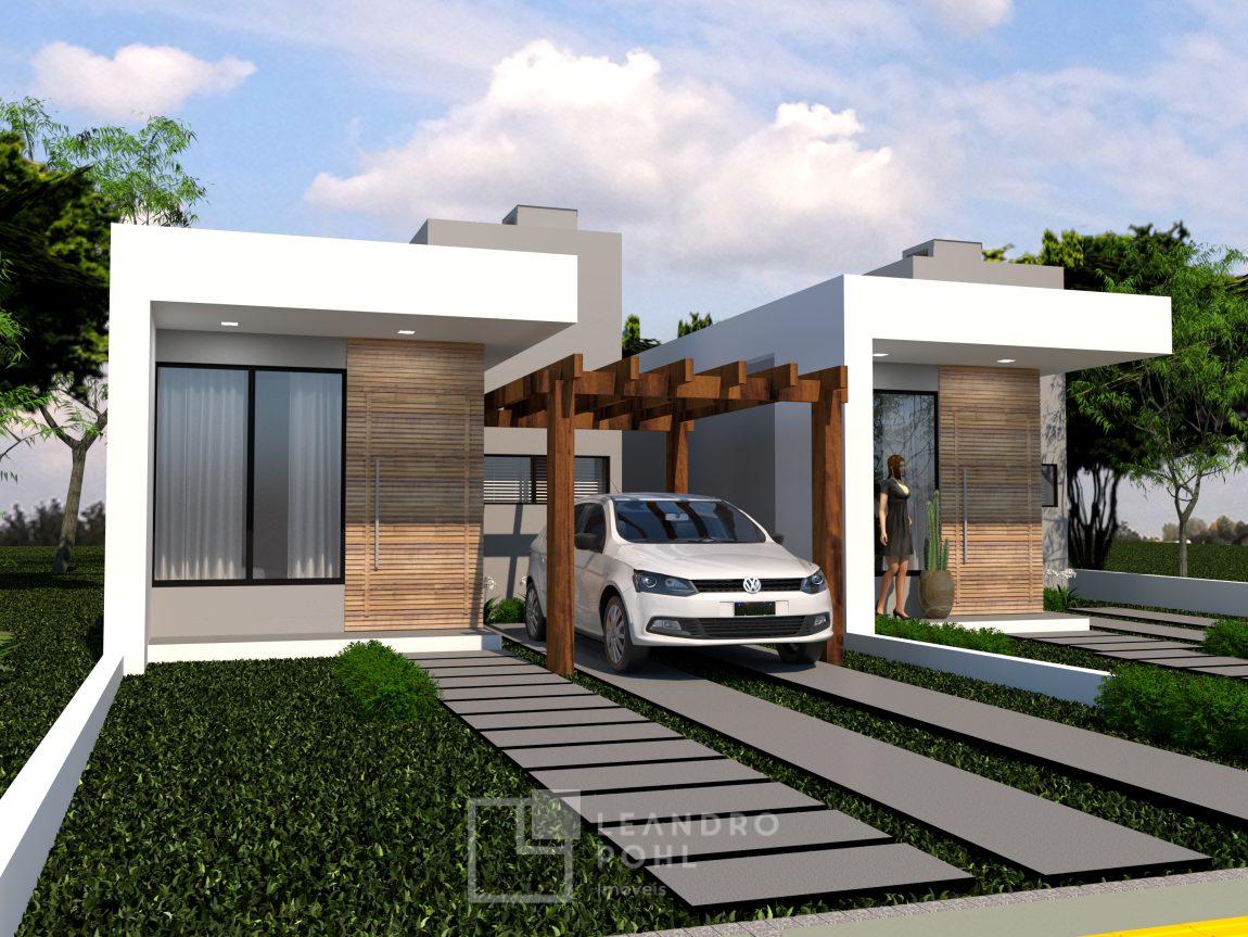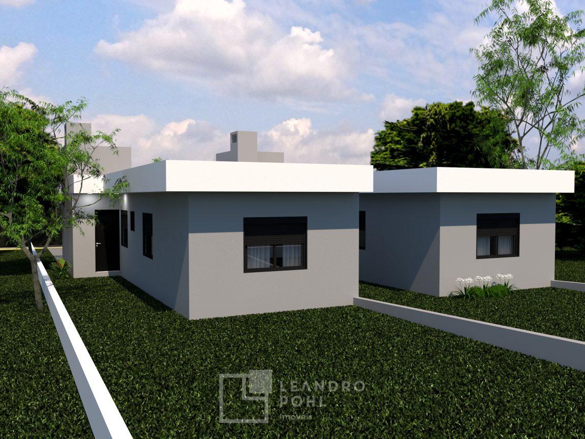 Duas casas geminadas, de 3 dormitórios, com churrasqueira interna, sala e cozinha, área de serviço interna, banheiro, piso porcelanato, vaga de estacionamento(possibilidade
