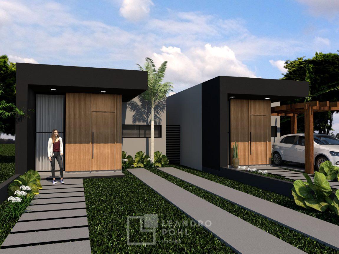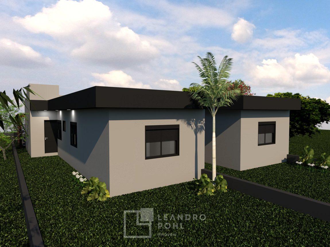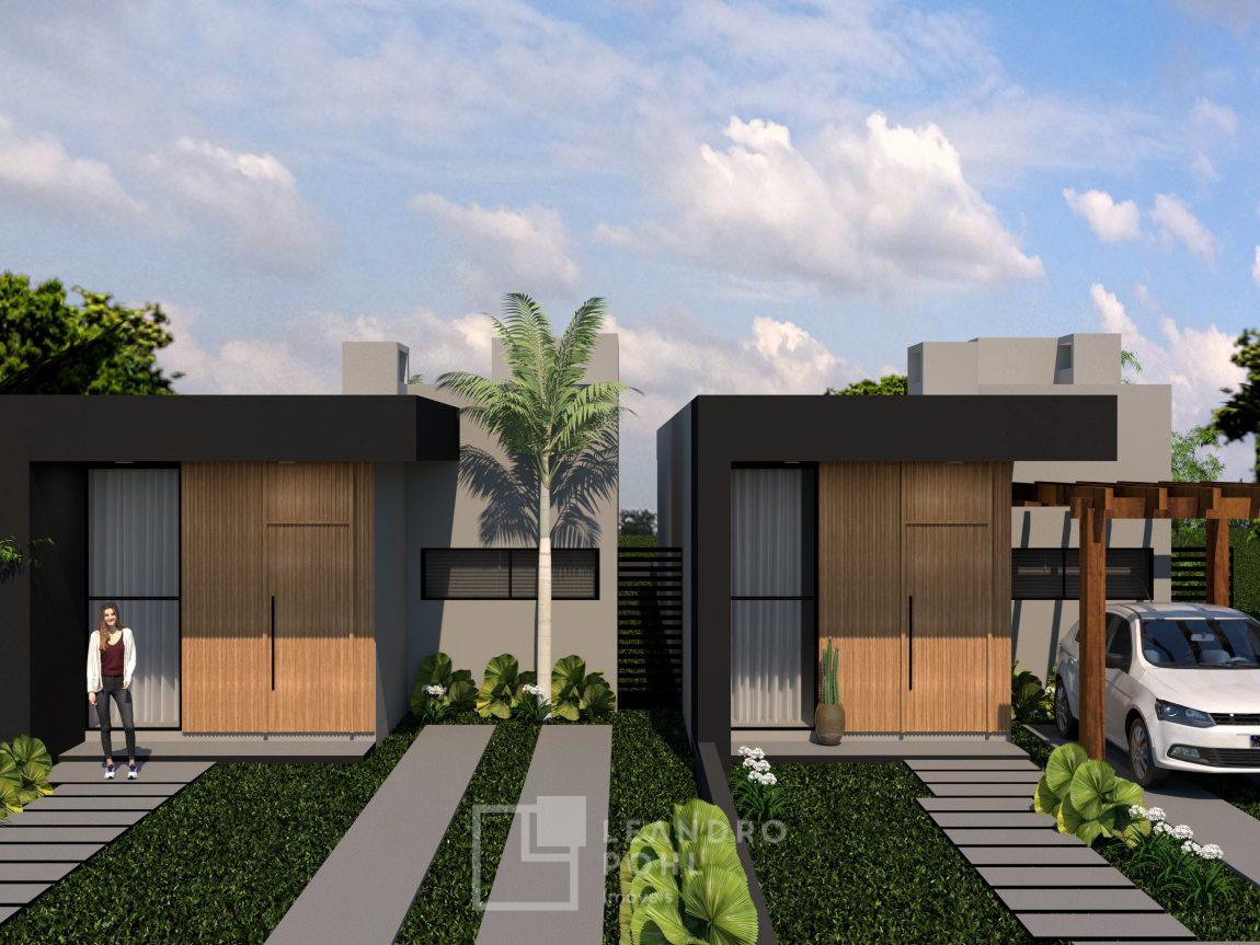 Duas casas geminadas, de 3 dormitórios, com churrasqueira interna, sala e cozinha, área de serviço interna, banheiro, piso porcelanato, vaga de estacionamento(possibilidade