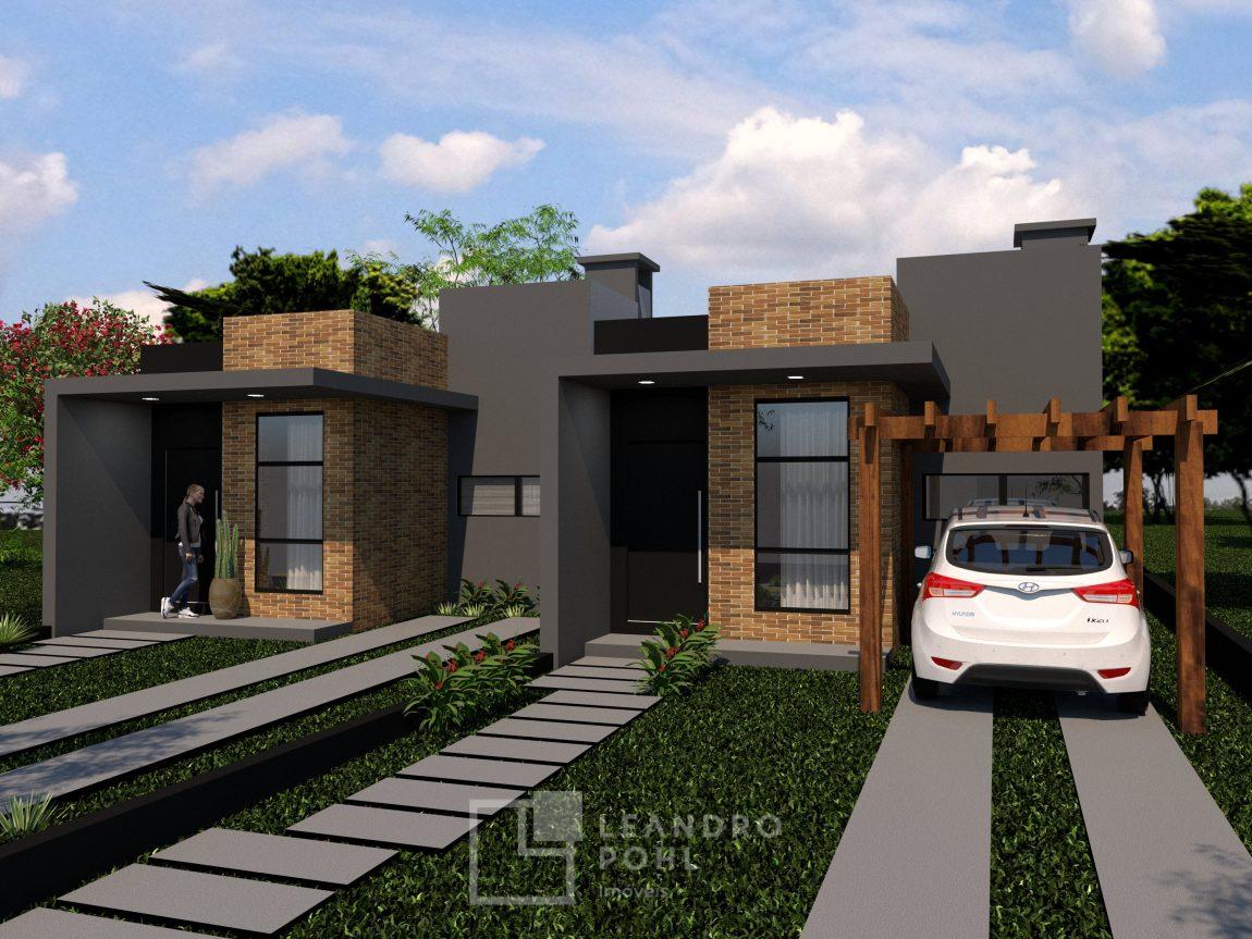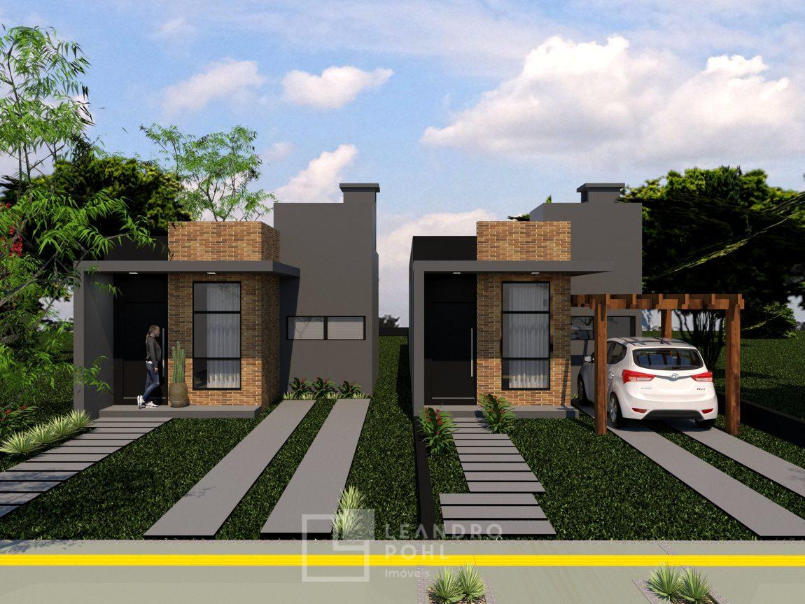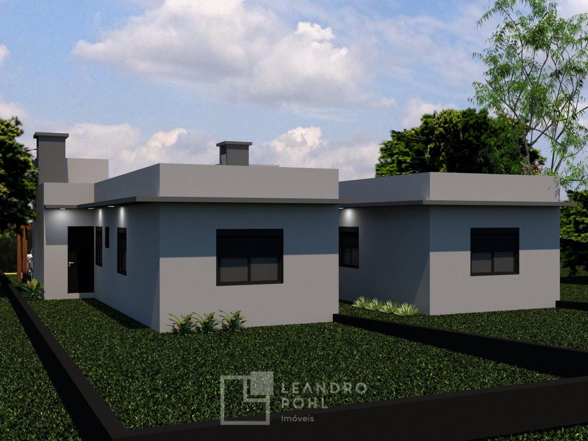 Duas casas geminadas, de 3 dormitórios, com churrasqueira interna, sala e cozinha, área de serviço interna, banheiro, piso porcelanato, vaga de estacionamento(possibilidade