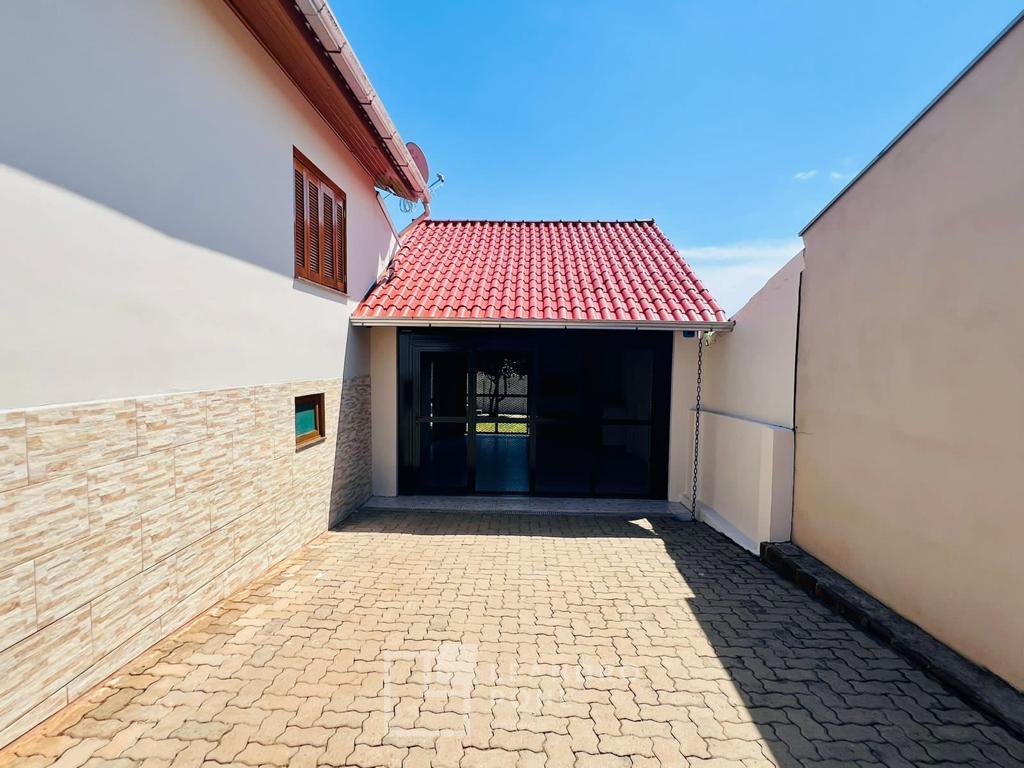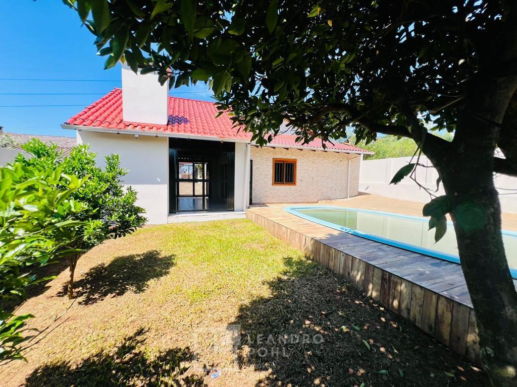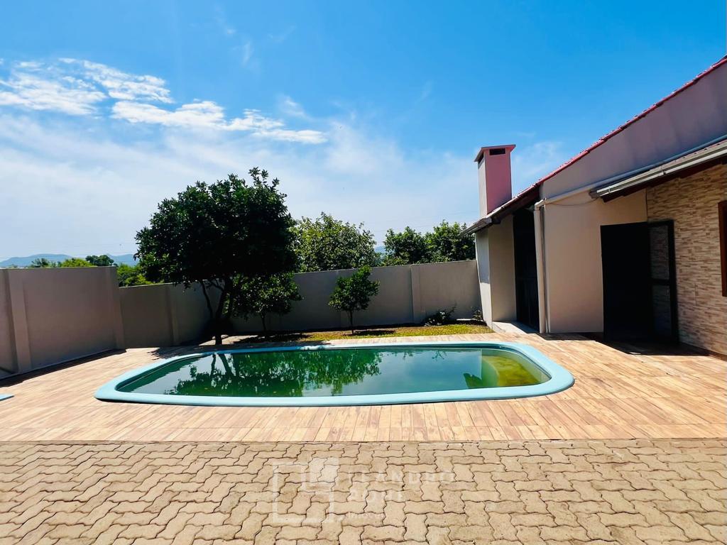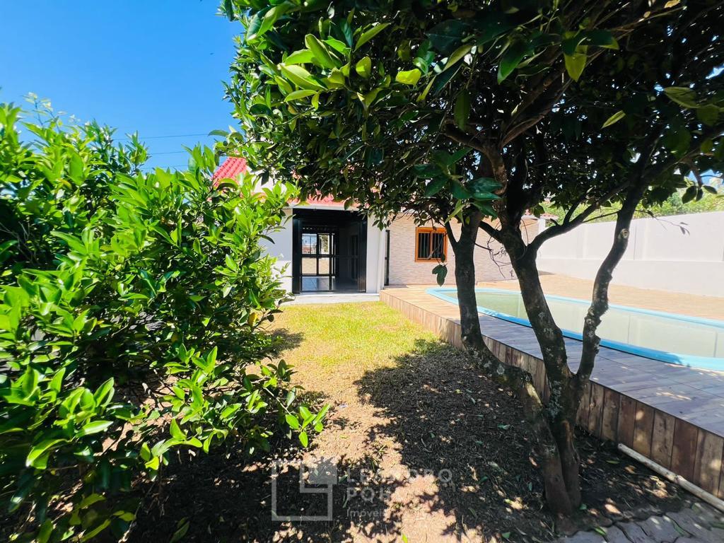 Casa com 3 dormitórios, churrasquiera, proximadamente 124,42 metros quadrados + 16,73 metros quadrados da piscina, cercada, murada com portão eletrônico.