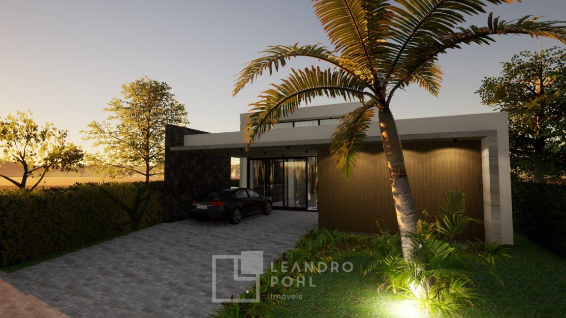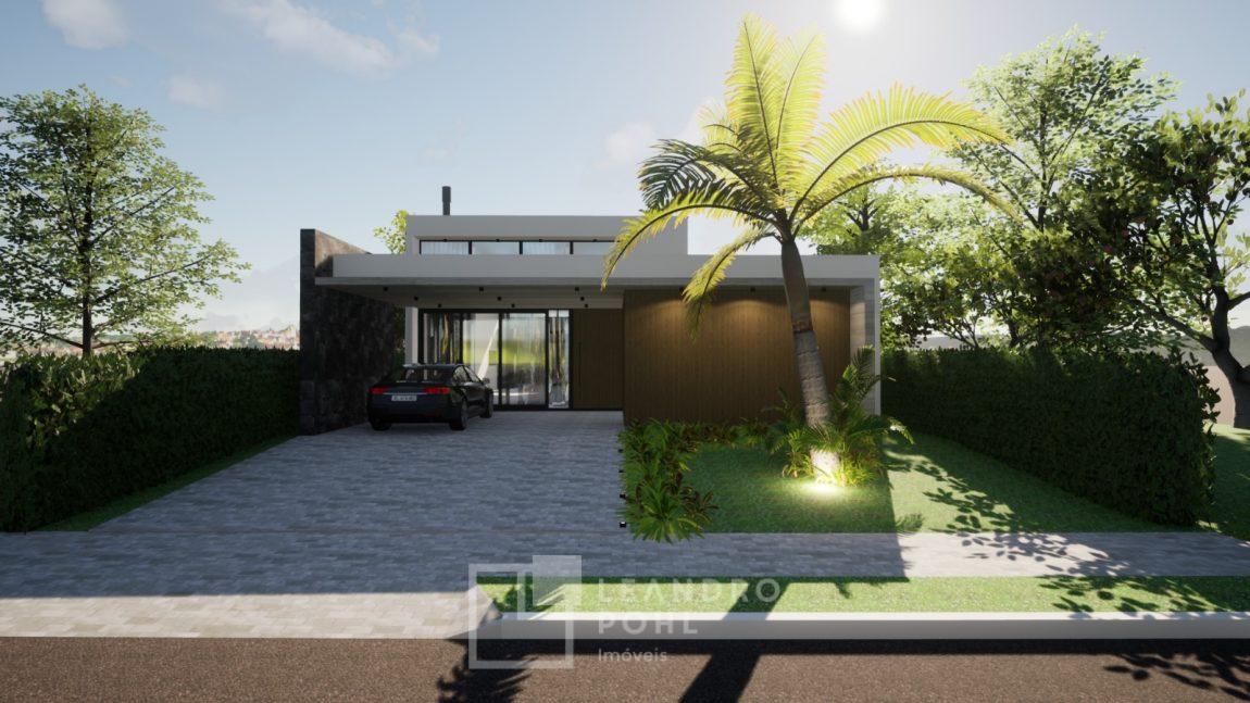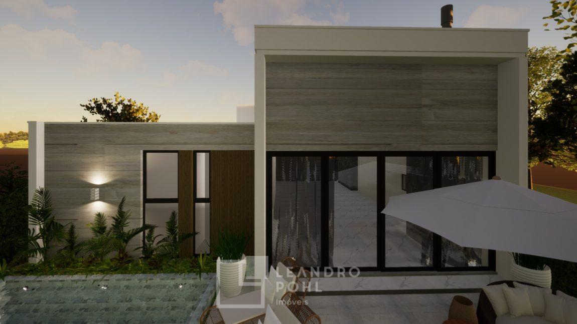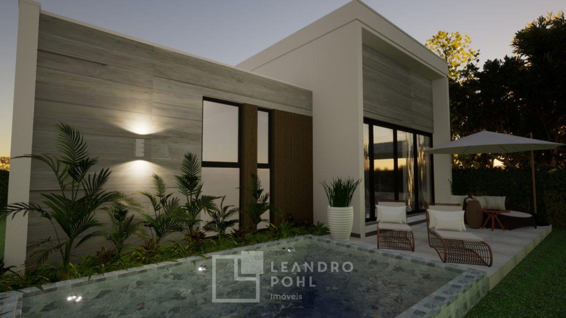 Casa plana com 3 dormitórios, suíte, sala de estar e jantar, piscina de alvenaria, em lote de 462,72 m².