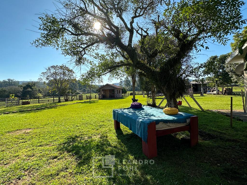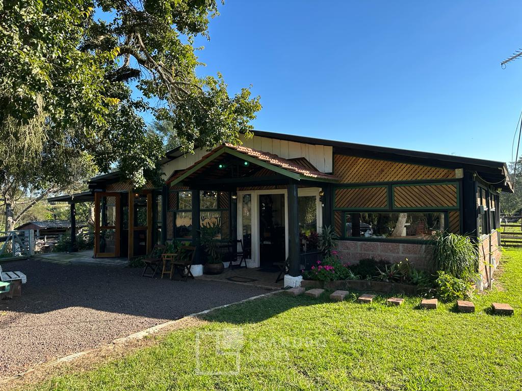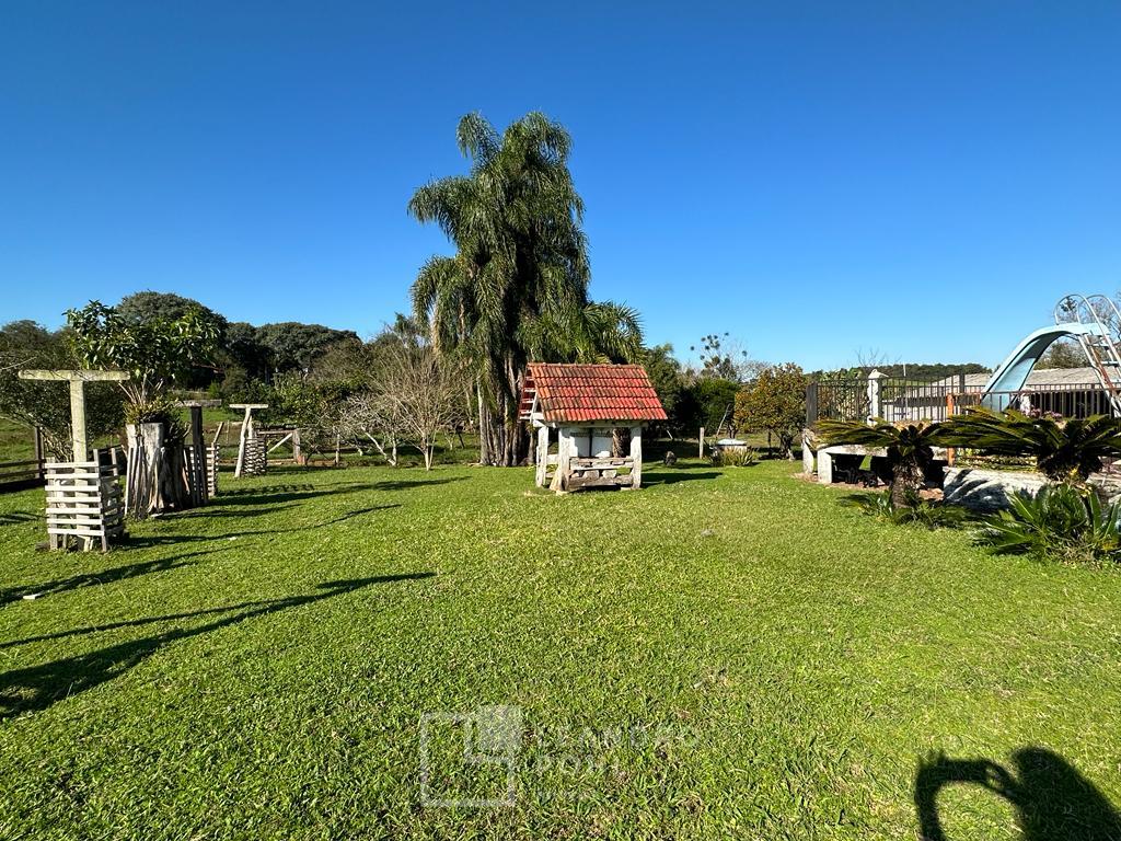 Área plana, excelente espaço para laser, casa de alvenaria de 150m² com dormitórios, sala, cozinha, banheiro, varanda e piscina, cabana de 30m² com quarto e banheiro, galpão de 180m², salão rustico para festas de 200m² com copa, cozinha, bancada, banheiros e decoração rustica, açudes, arvores frutíferas, cercada para carneiros.