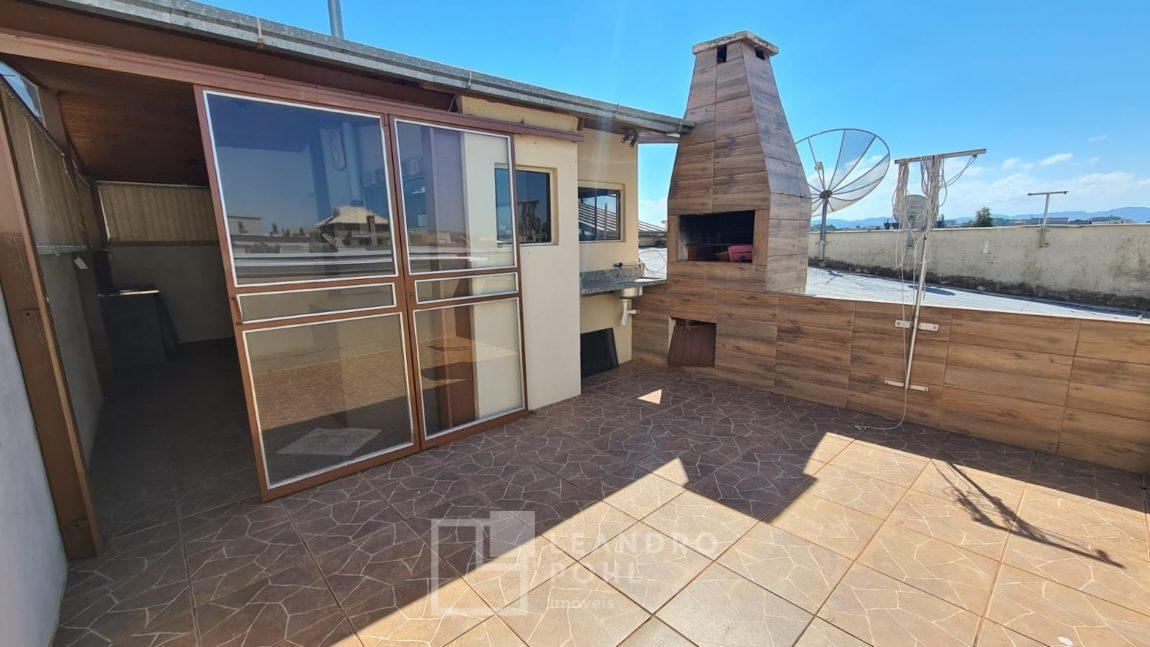 Cobertura duplex "alugada", 3 dormitórios, suíte, banheiro, terraço, churrasqueira, piso cerâmico, prédio sem elevador.