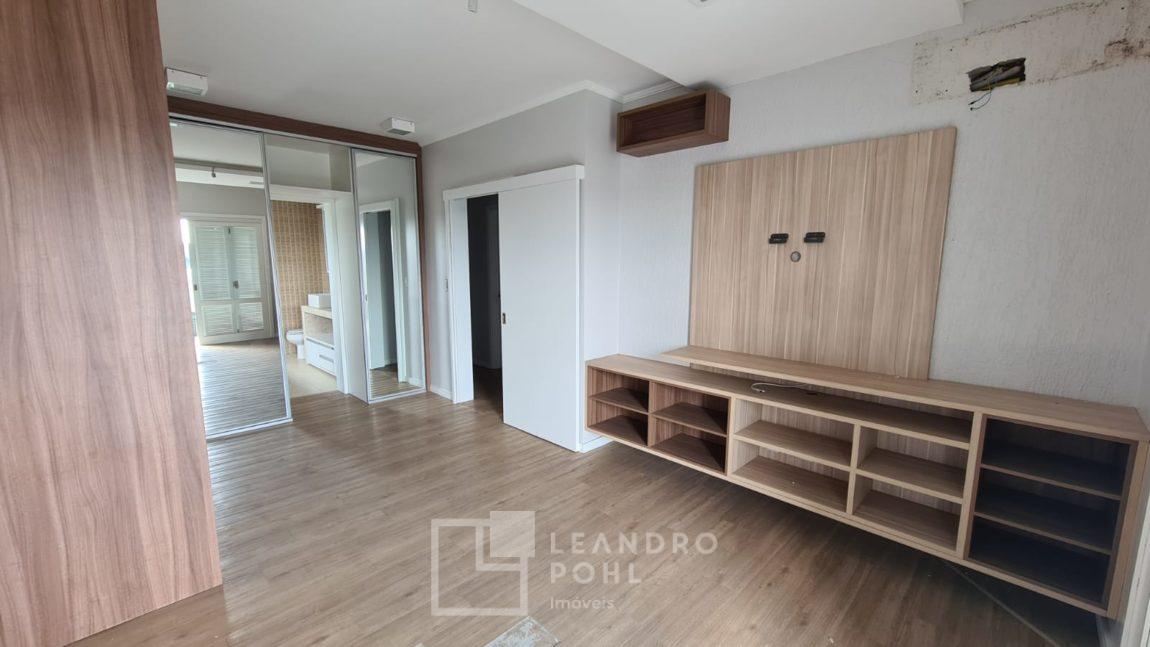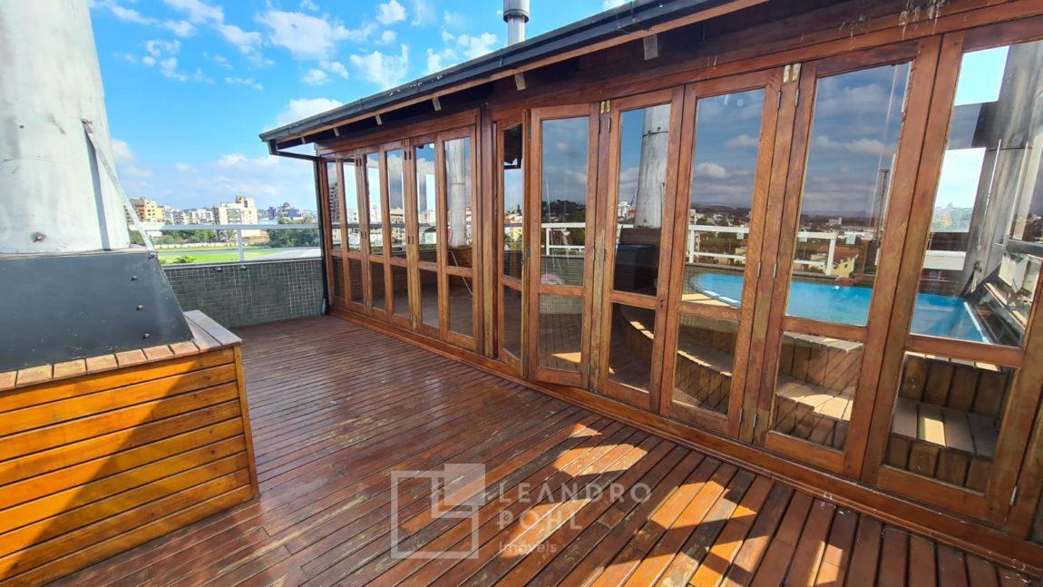 Cobertura plana, semi mobiliada, 03 dormitórios, sendo 01 suíte com banheira e closet, sala de estar, jantar, lareira, cozinha sob medida, lavabo, banheiro social, área gourmet, área de serviço separada, piso vinilico, box de estacionamento. Segundo piso conta com um deck e quiosque de madeira com jacuzzi e uma linda vista da cidade.