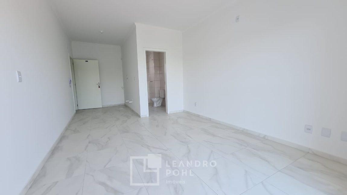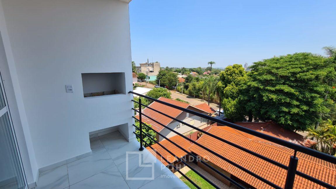 Apartamento JK novo, de fundos, com piso porcelanato, sacada com churrasqueira, medidores individuais de água e gás central, vaga de estacionamento para moto, prédio com elevador, excelente localização, pronto para morar.