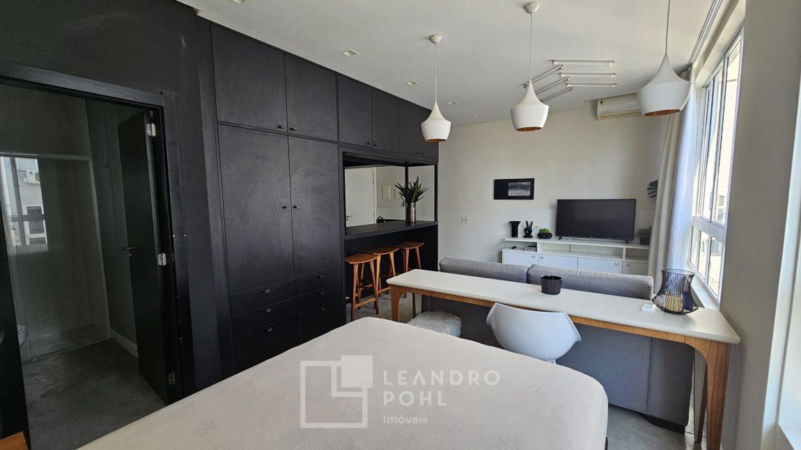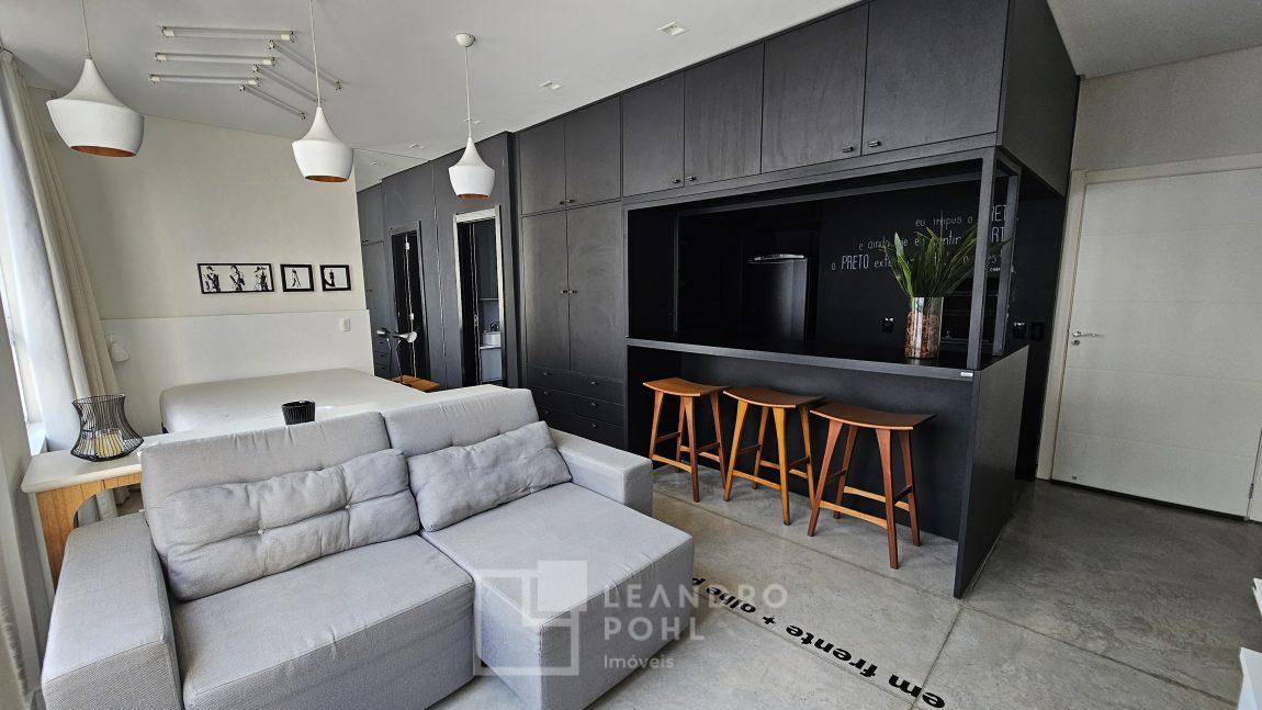 Apartamento LOFT, lateral, mobiliado, localizado ao ladinho da universidade, piso porcelanato, churrasqueira, prédio com elevador, gás central, agua individual.