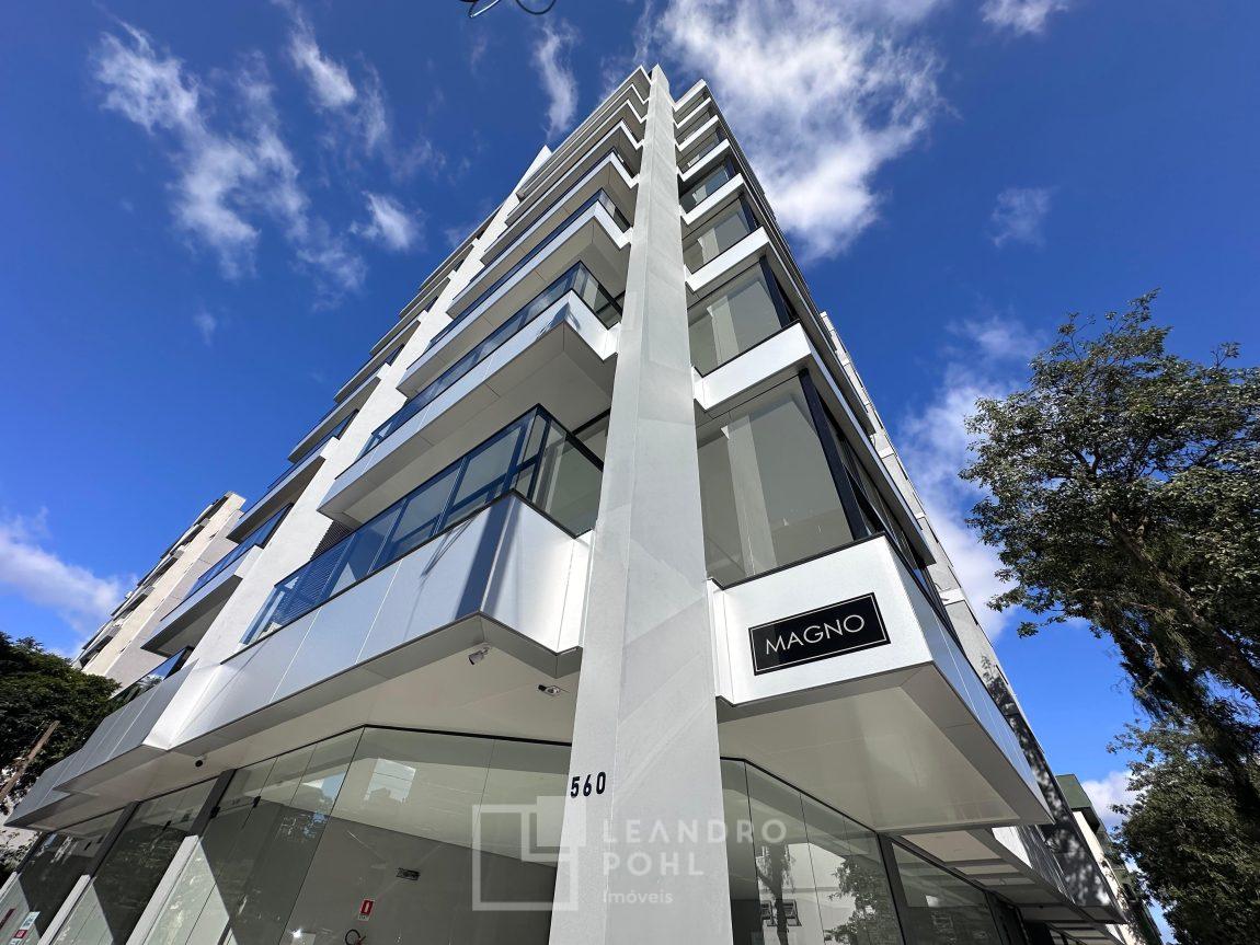 Magno está localizado na Rua Pedro Albino Muller, 560 (esquina com a Travessa da Rua Germano Berner), Americano em Lajeado, entregue em 2025 conta com lojas térreas, apartamentos e 2 coberturas. Hall de entrada revestido em pedra natural moledo, salão de festas e hall de entrada mobiliado e decorado, aptos com pé direito alto, vidros duplos com proteção termo-acústica, saída de ar condicionado em todo imóvel, pisos em porcelanato e laminado, elevadores de última geração com pé direito elevado, 2 coberturas com piscina de borda infinita.