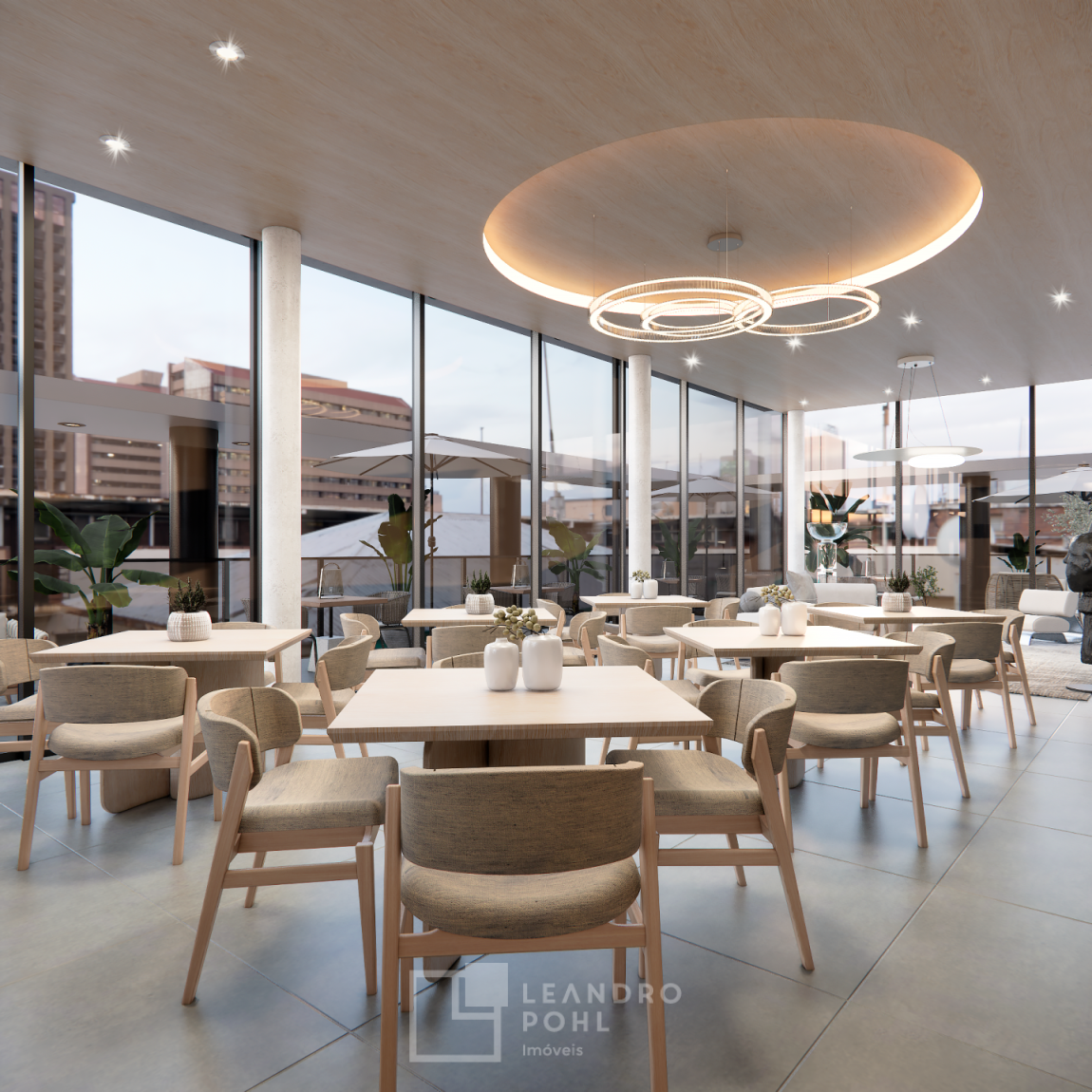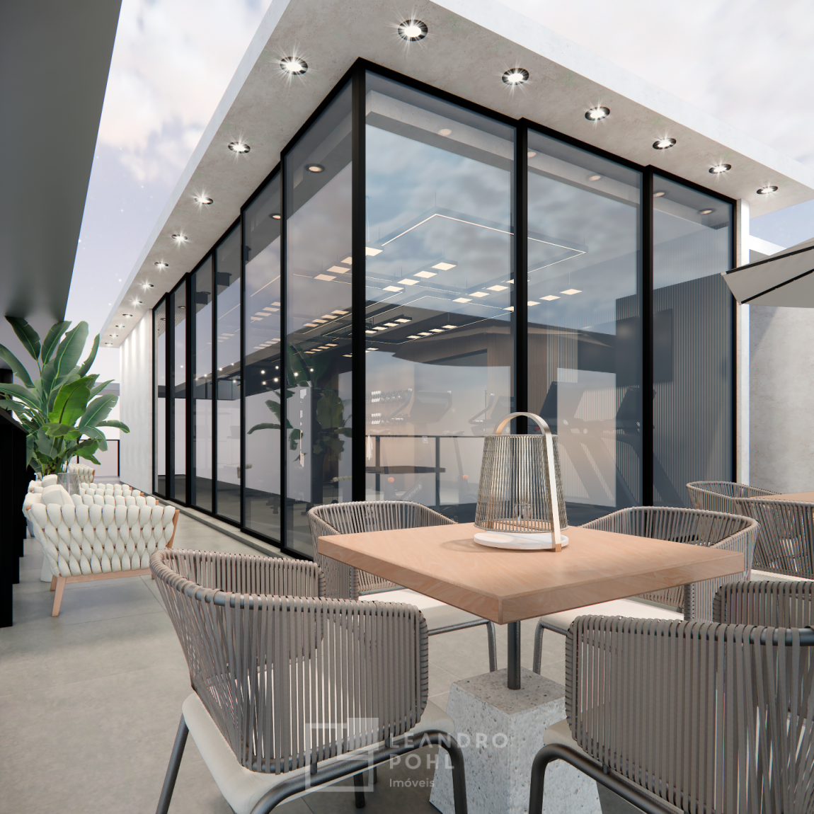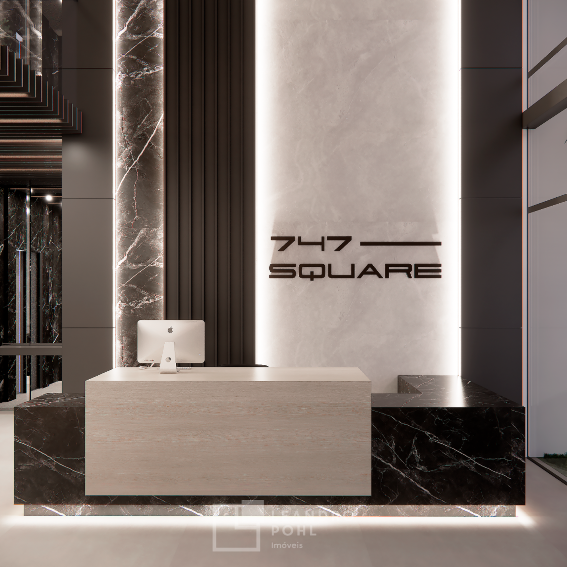 Salas comerciais de 18.87m² a 68.36m², piso porcelanato ou laminado, unidades com opção de sacada.