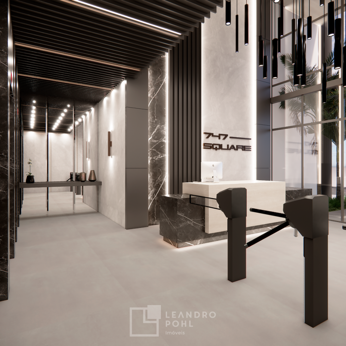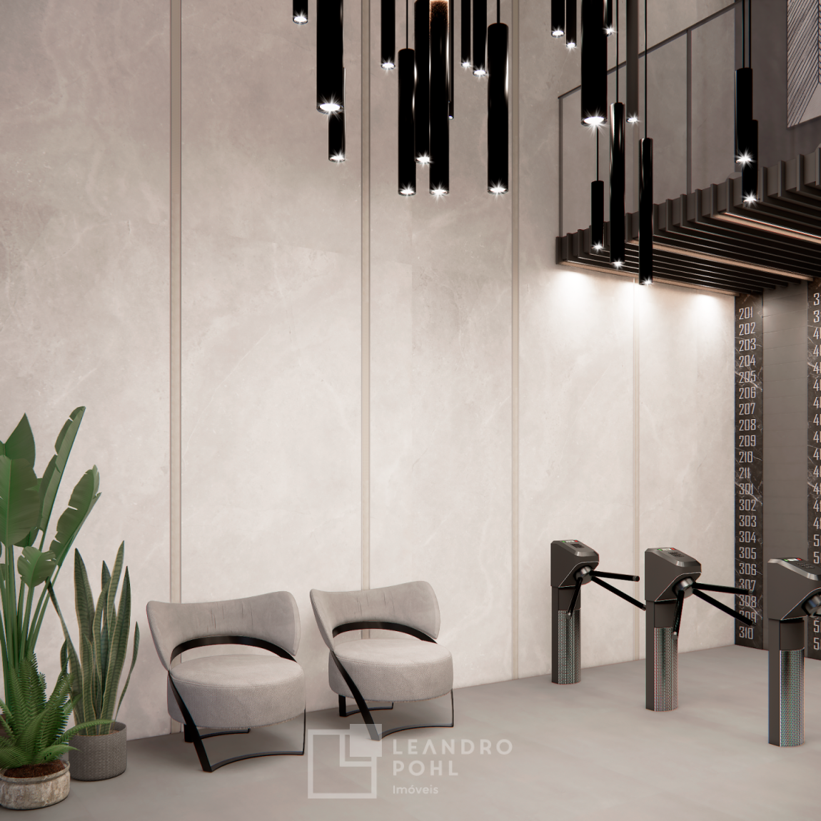 • Hall de entrada com pé direito alto, mobiliado e decorado